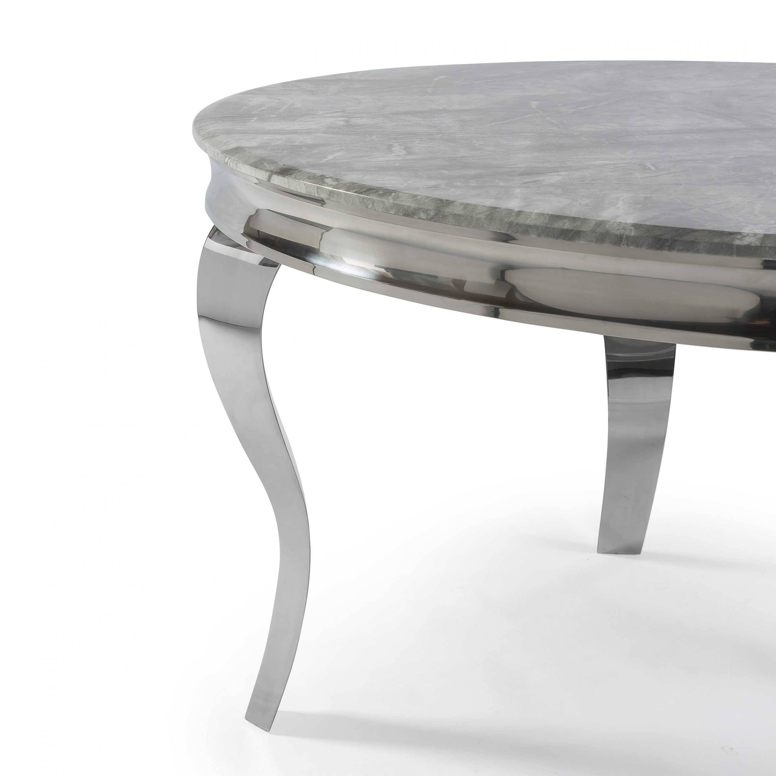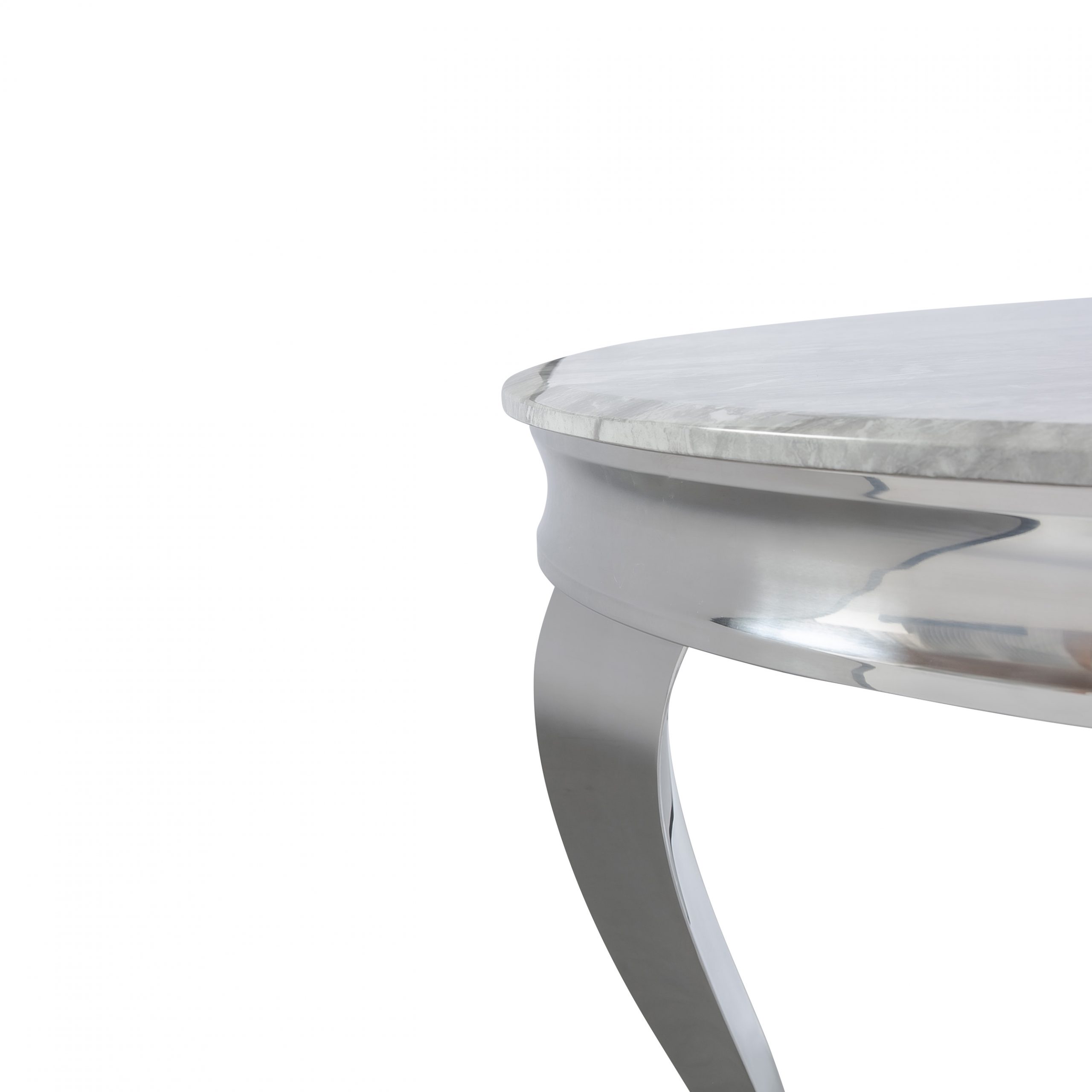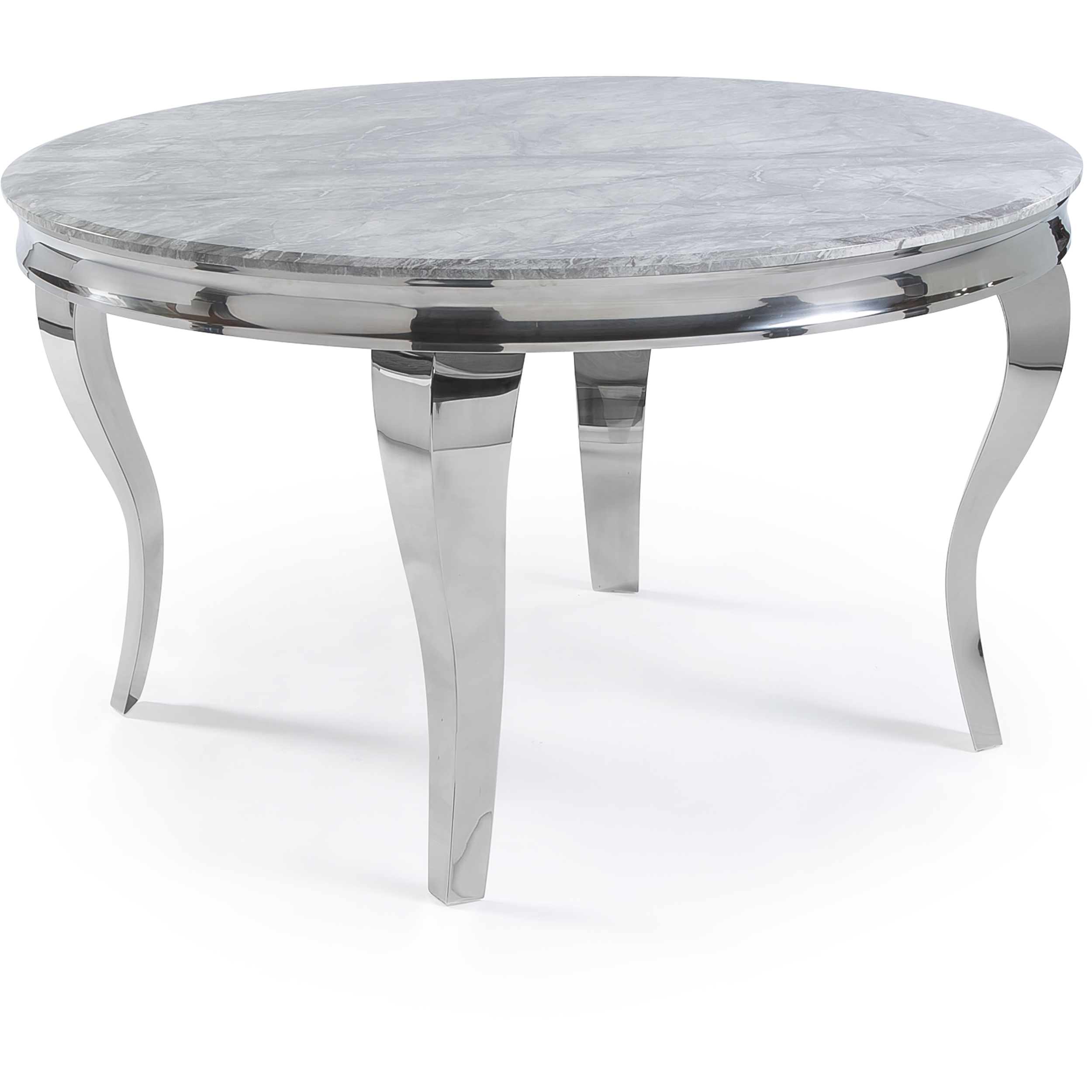 1.3m Louis Grey Round Marble Dining Table With Polished Circular Stainless Steel Legs