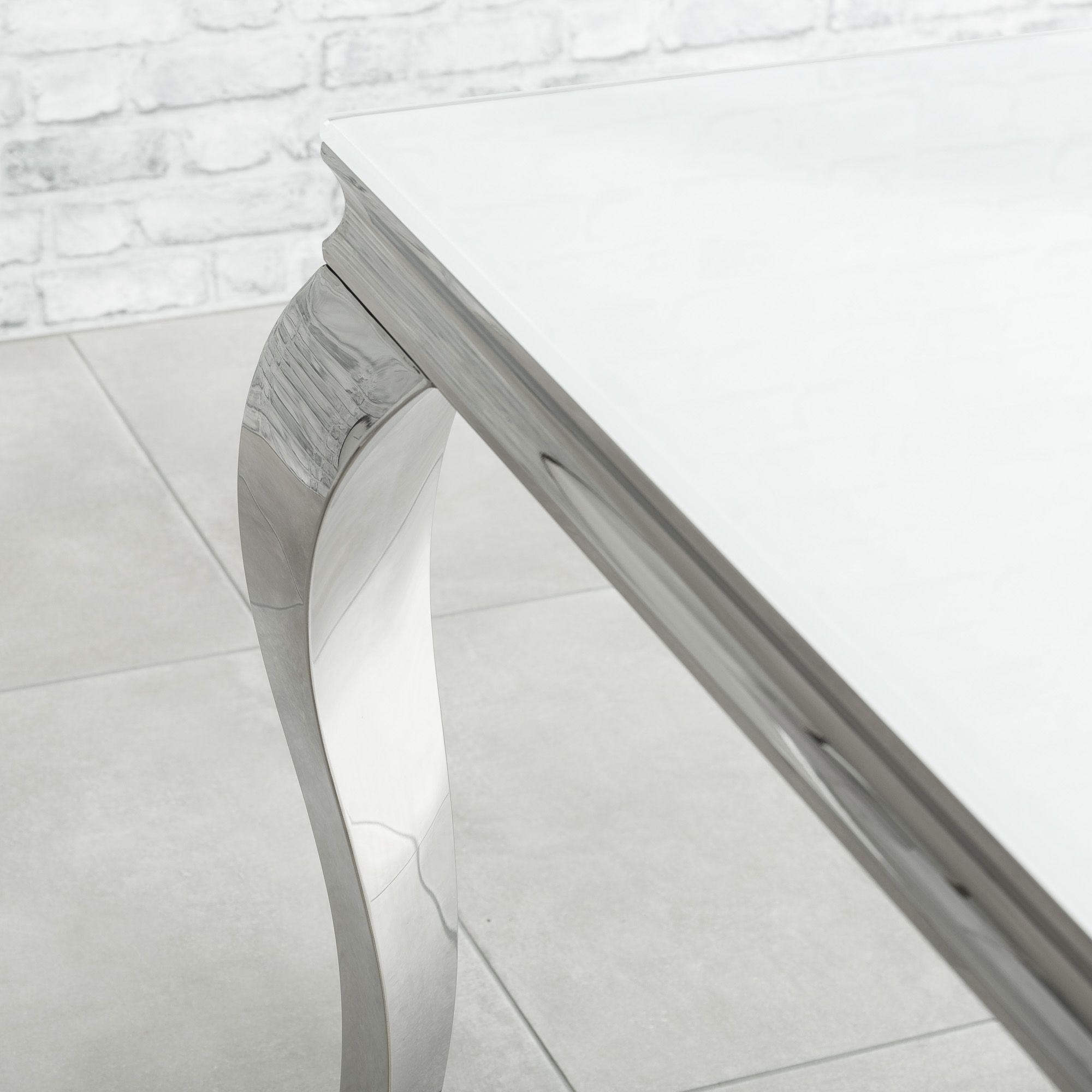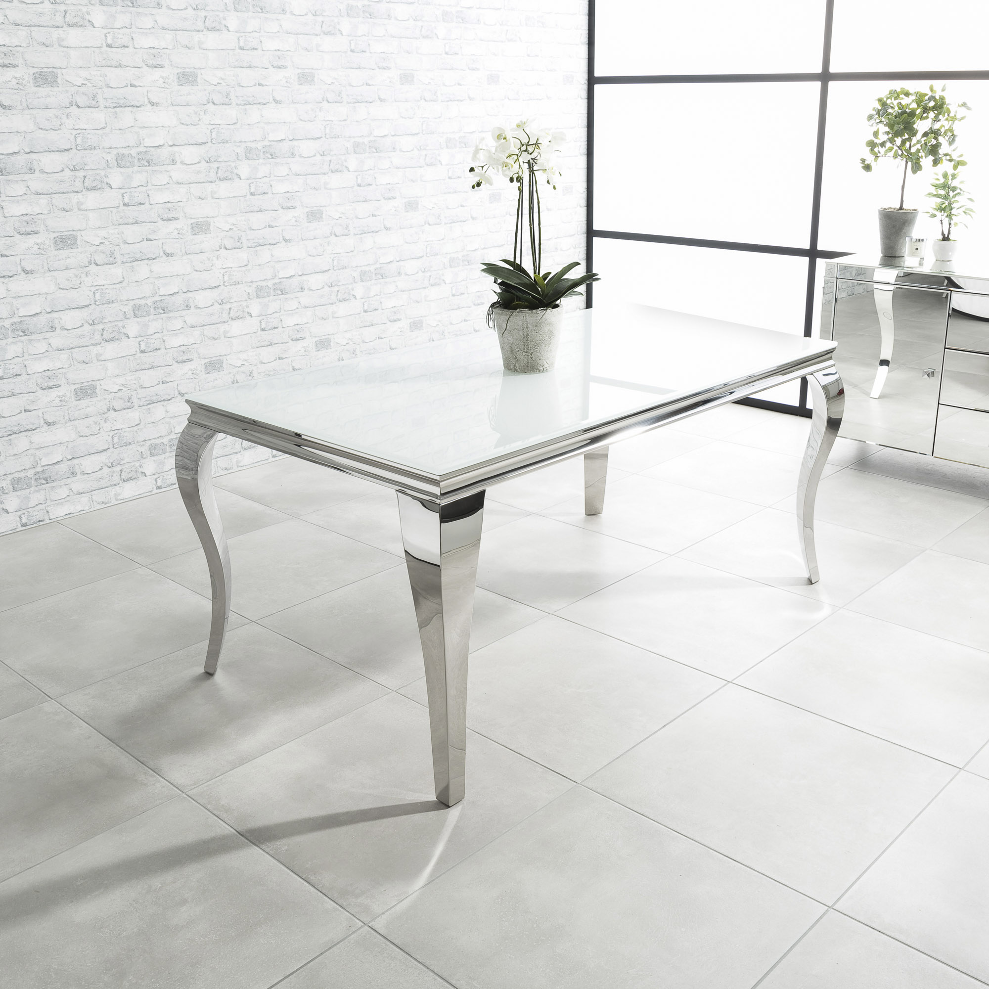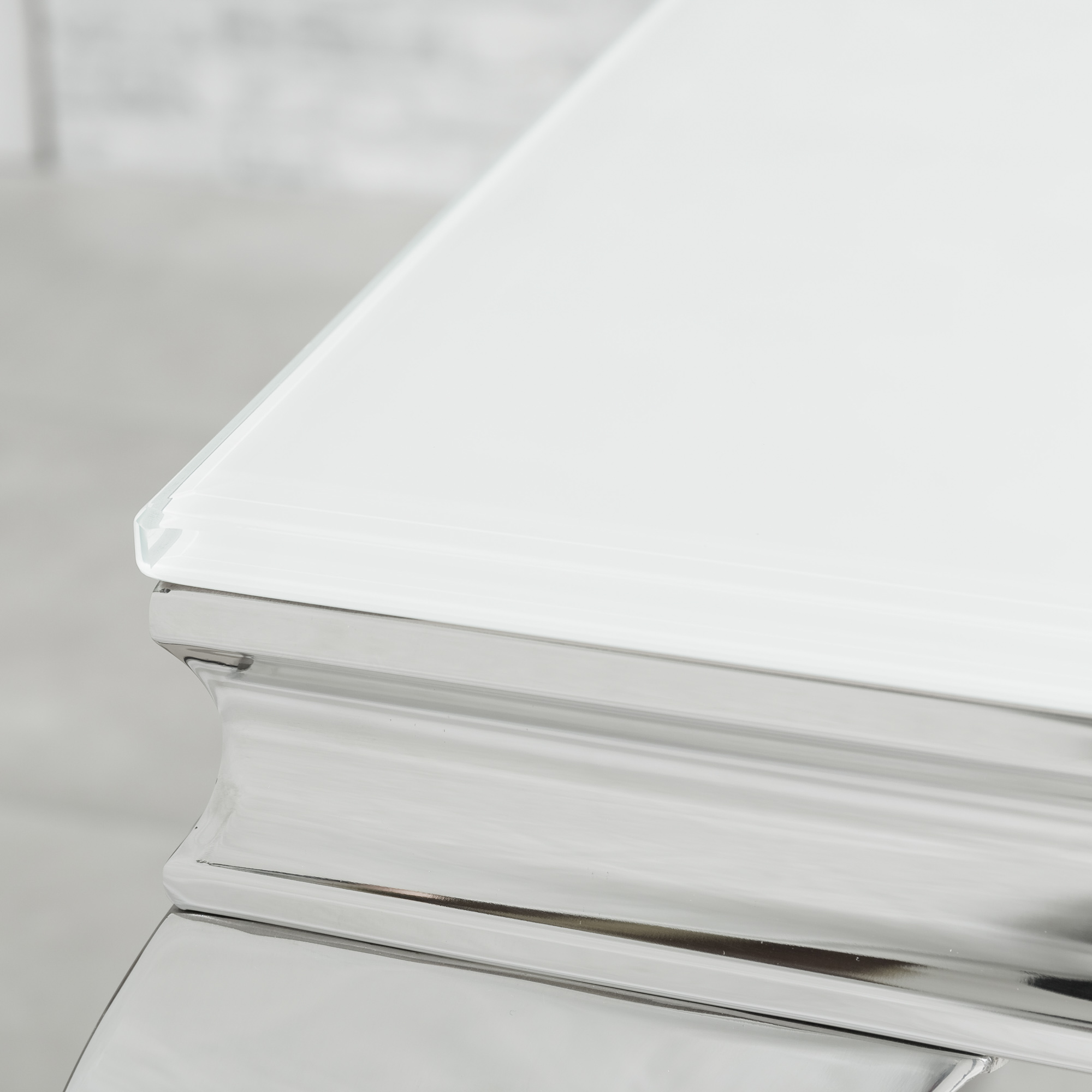1.6m Louis Polished Stainless Steel & White Glass Dining Table