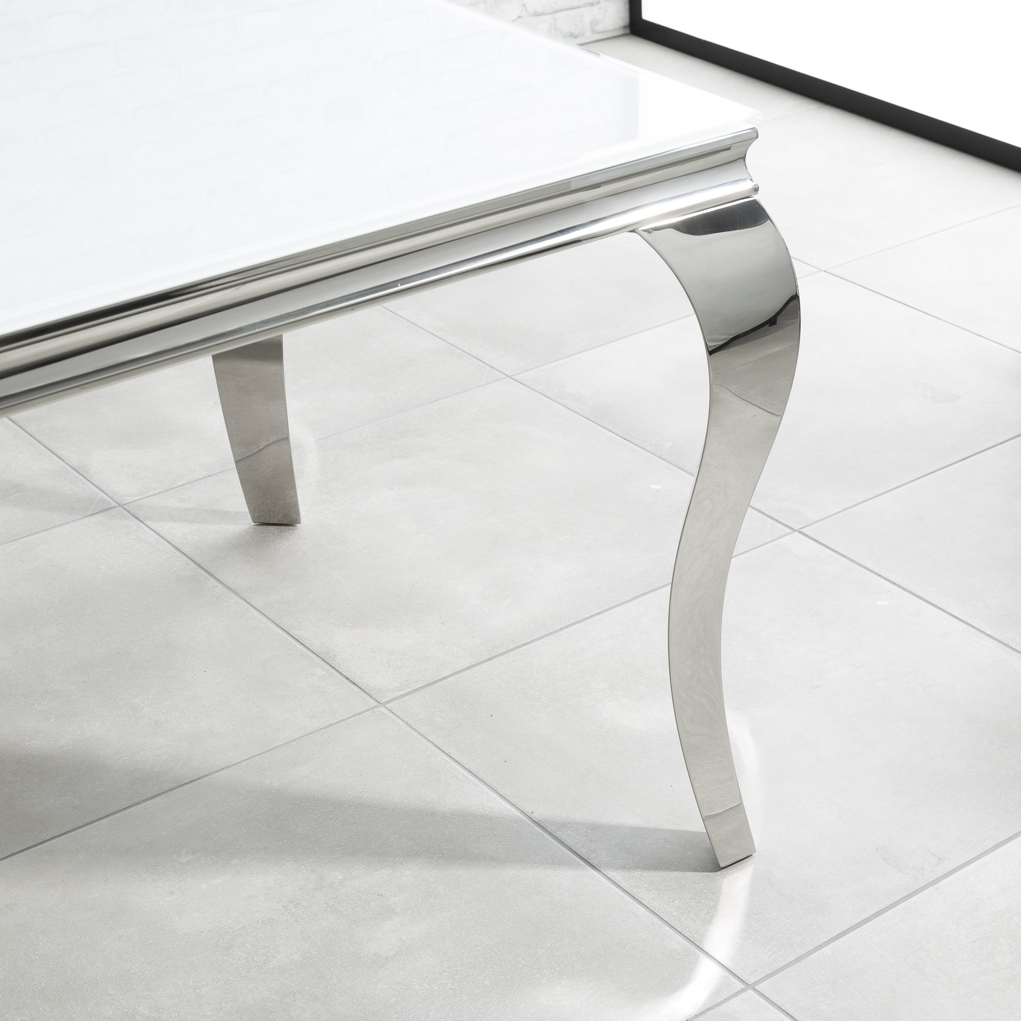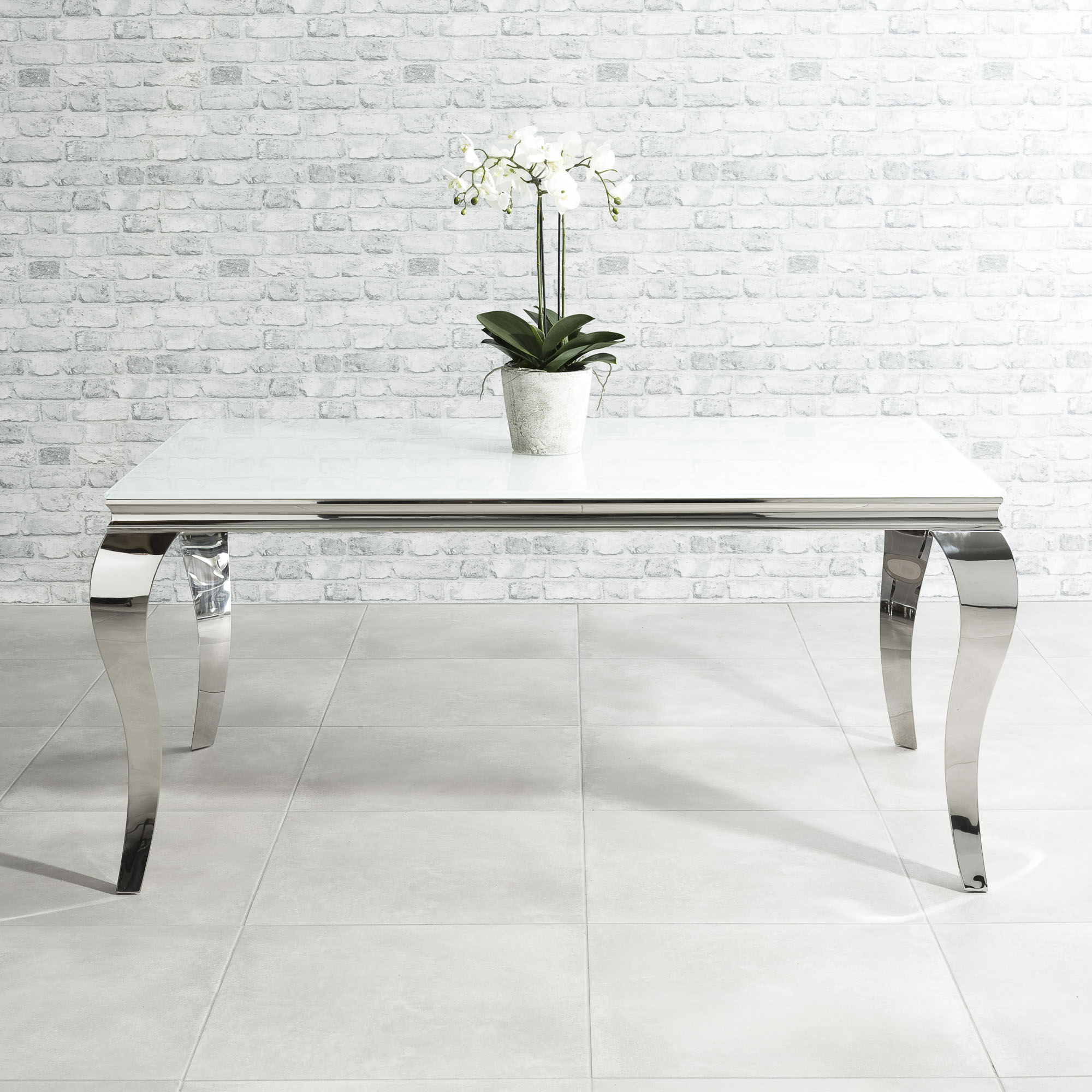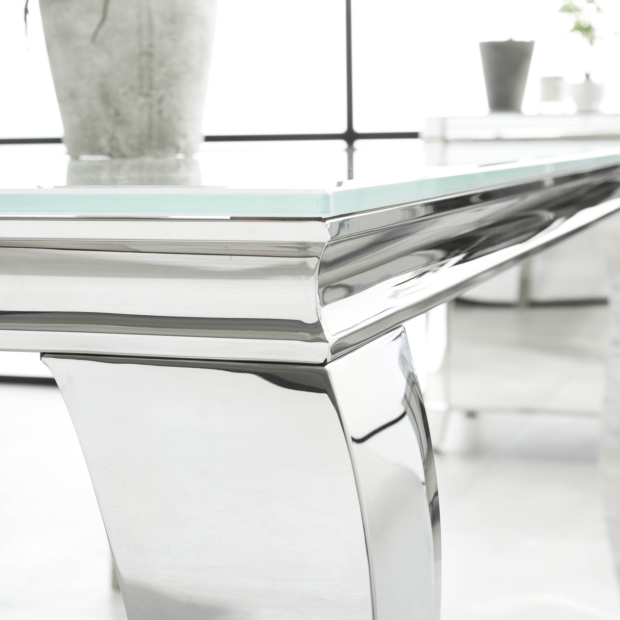 1.6m Louis Polished Stainless Steel & White Glass Dining Table