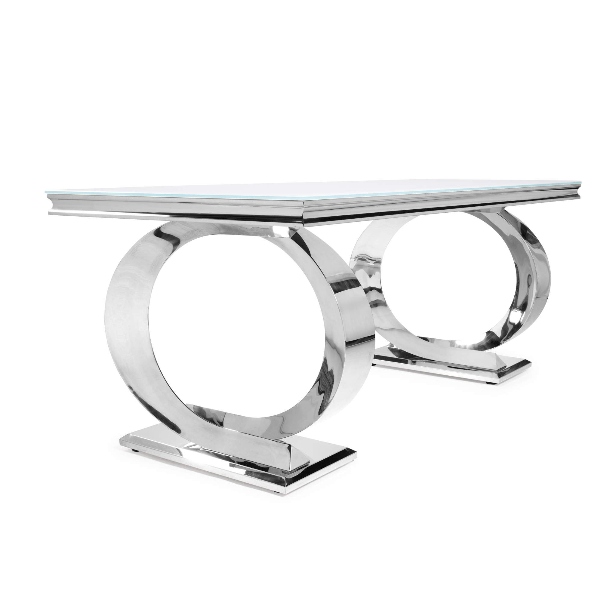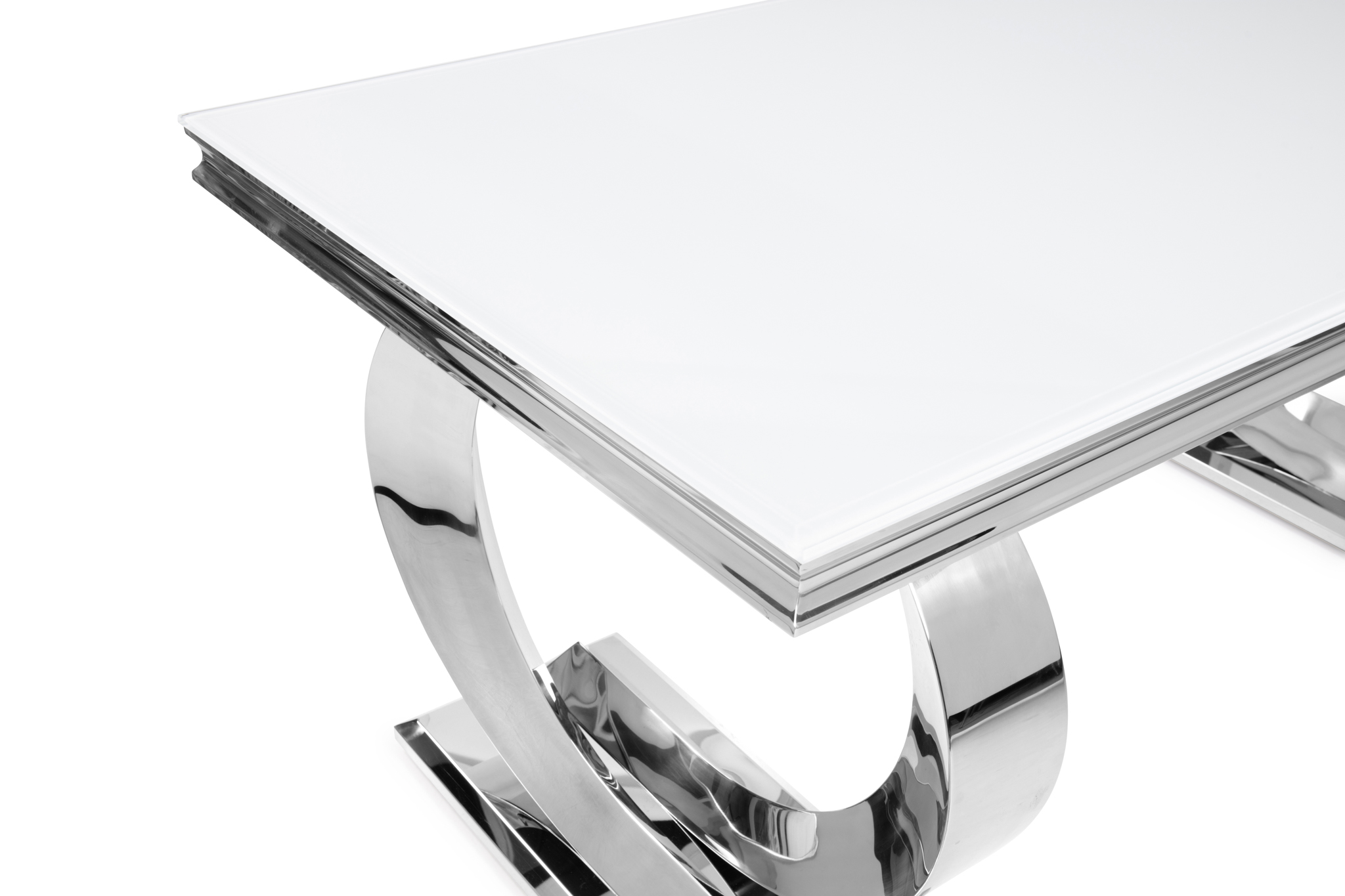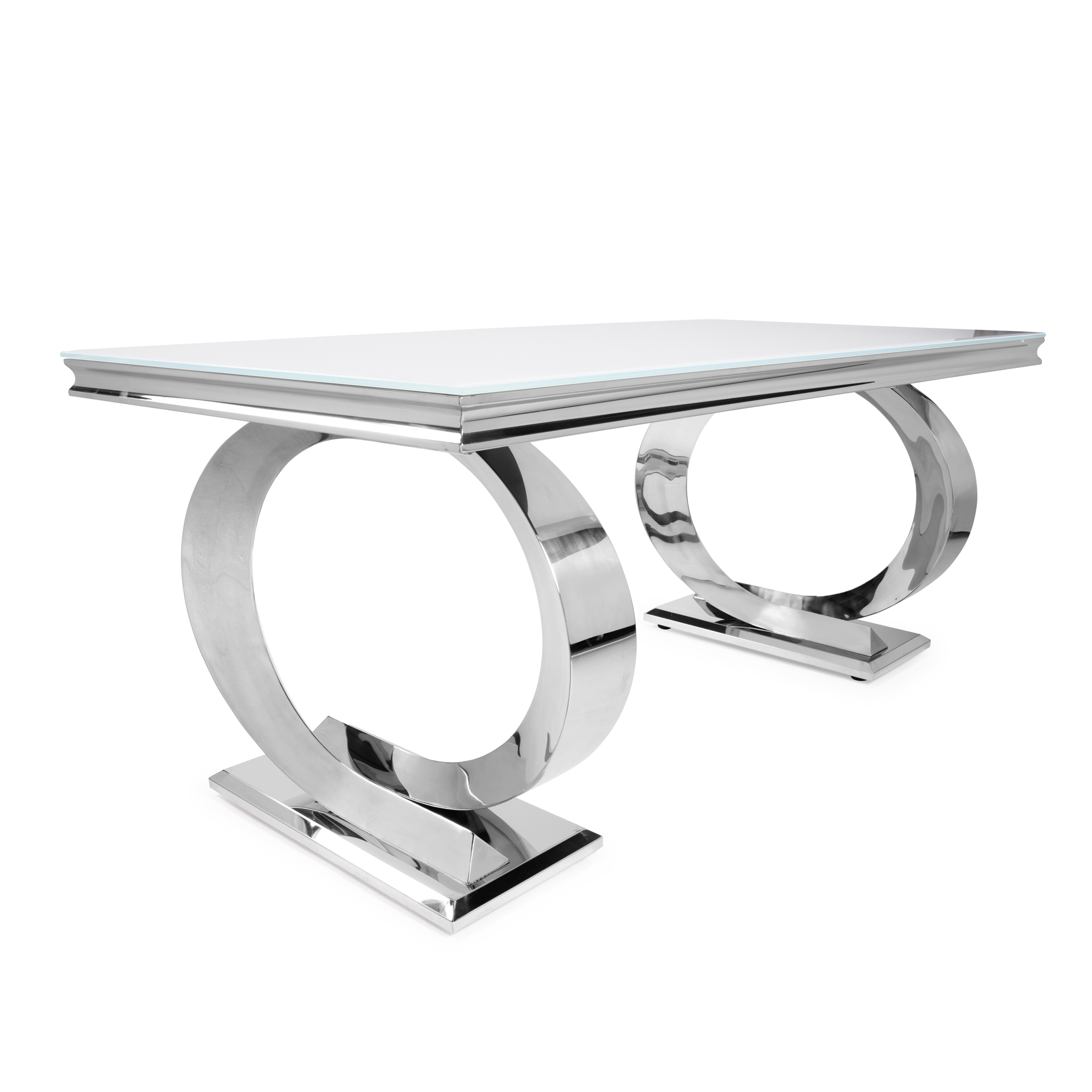 Tuscany is renowned for its beautiful architecture and our Pisa polished steel and white glass top dining table is yet another example of this. The sturdy white glass top sit on top of sweeping stainless steel legs which add an alluring finish for a dining table which is sure to become a long term presence in your home.