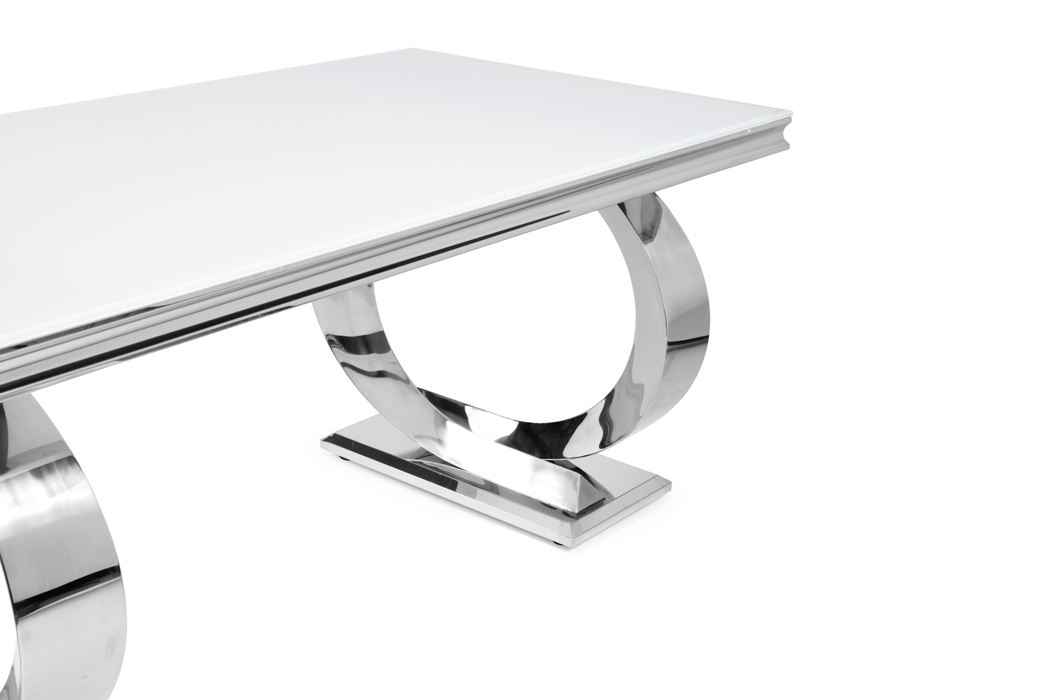 2 Metre Pisa White Glass Top & Steel Dining Table