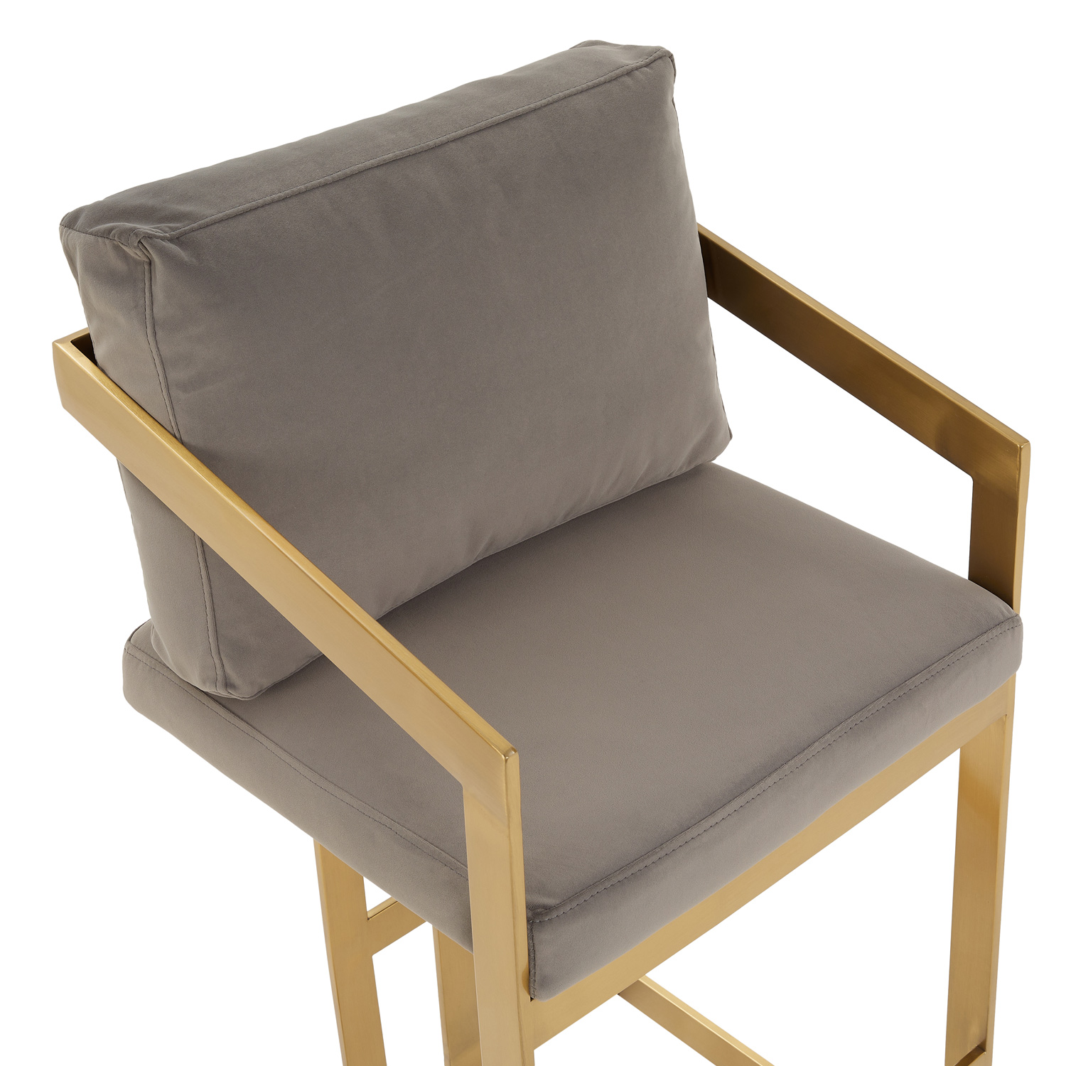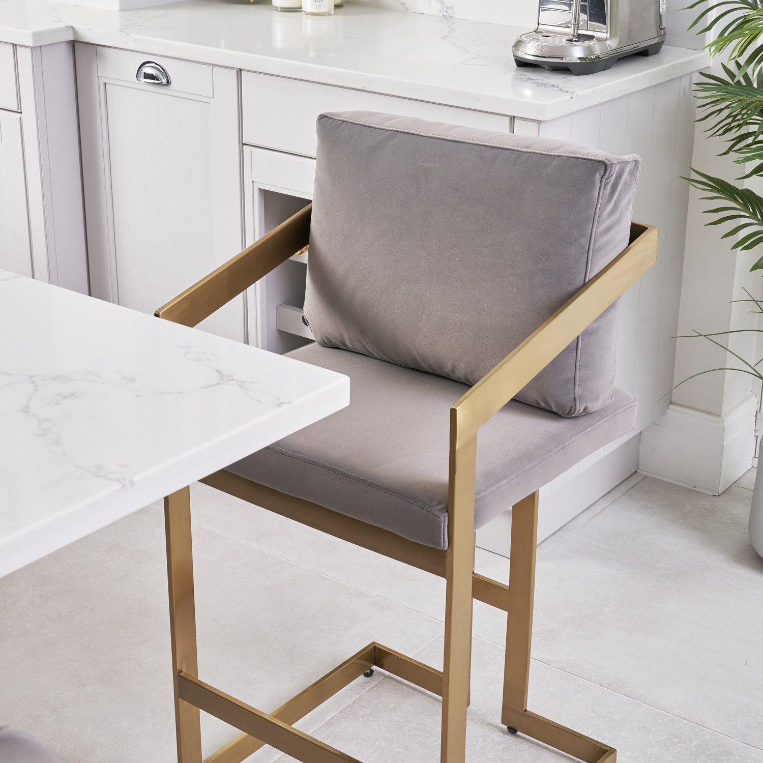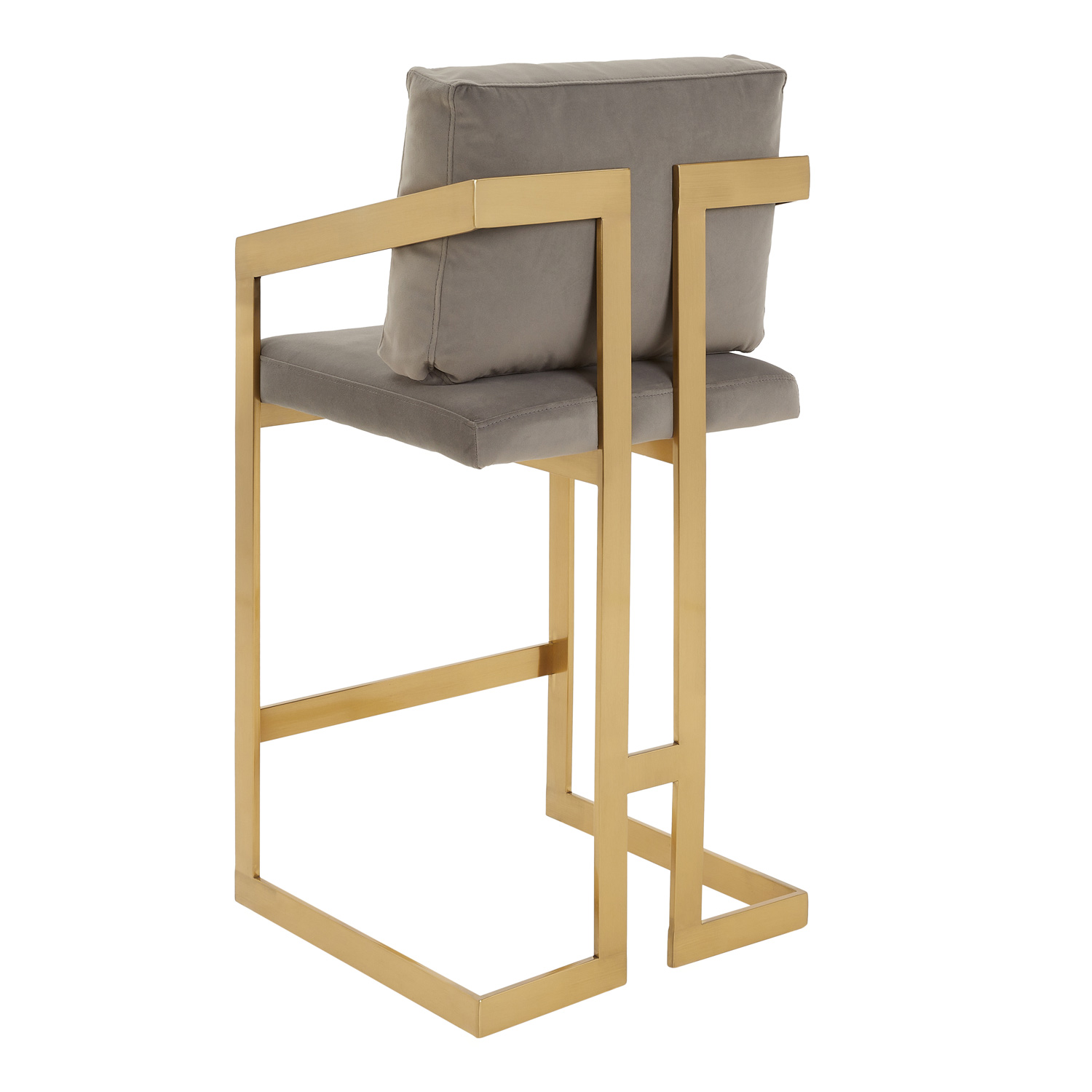 Alexandra Grey Velvet Kitchen Stool with a Gold Stainless Steel Frame