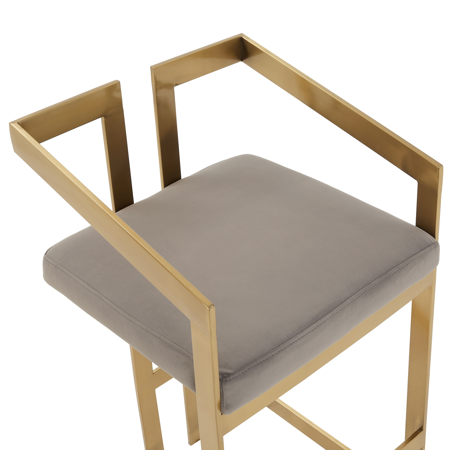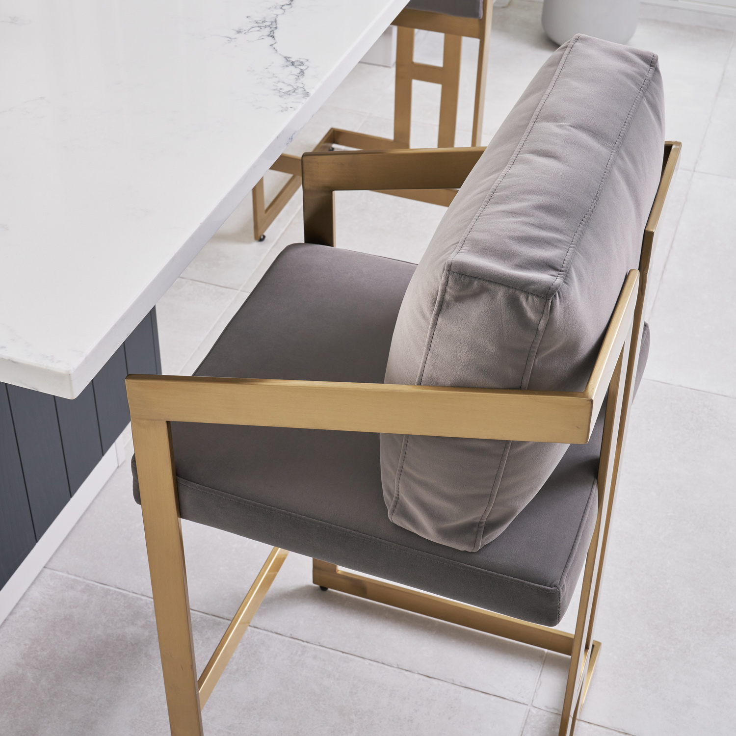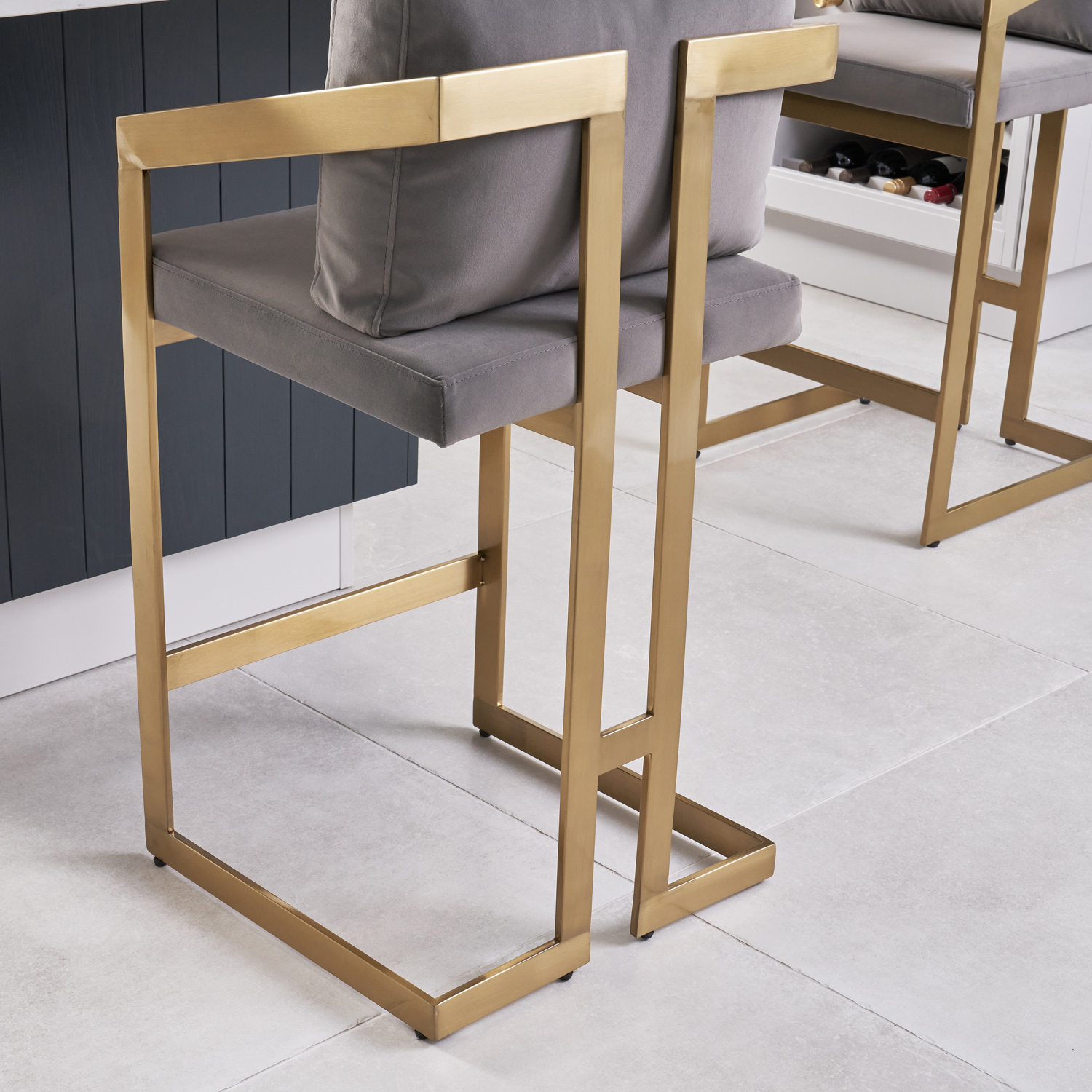 Alexandra Grey Velvet Kitchen Stool with a Gold Stainless Steel Frame