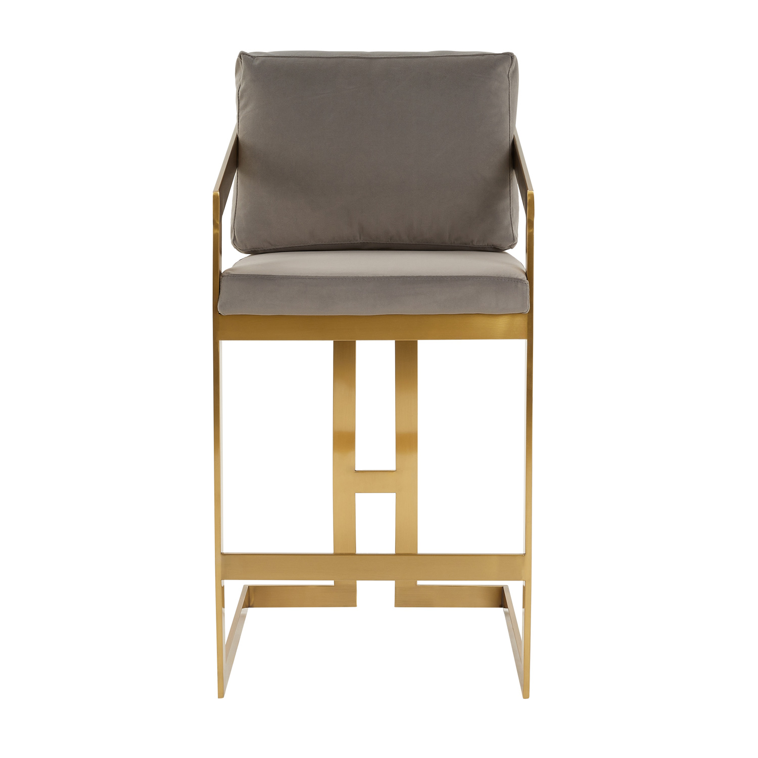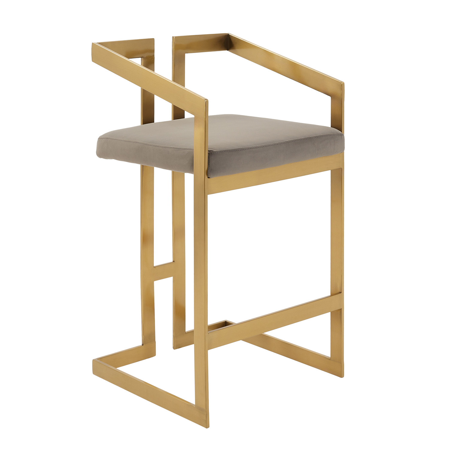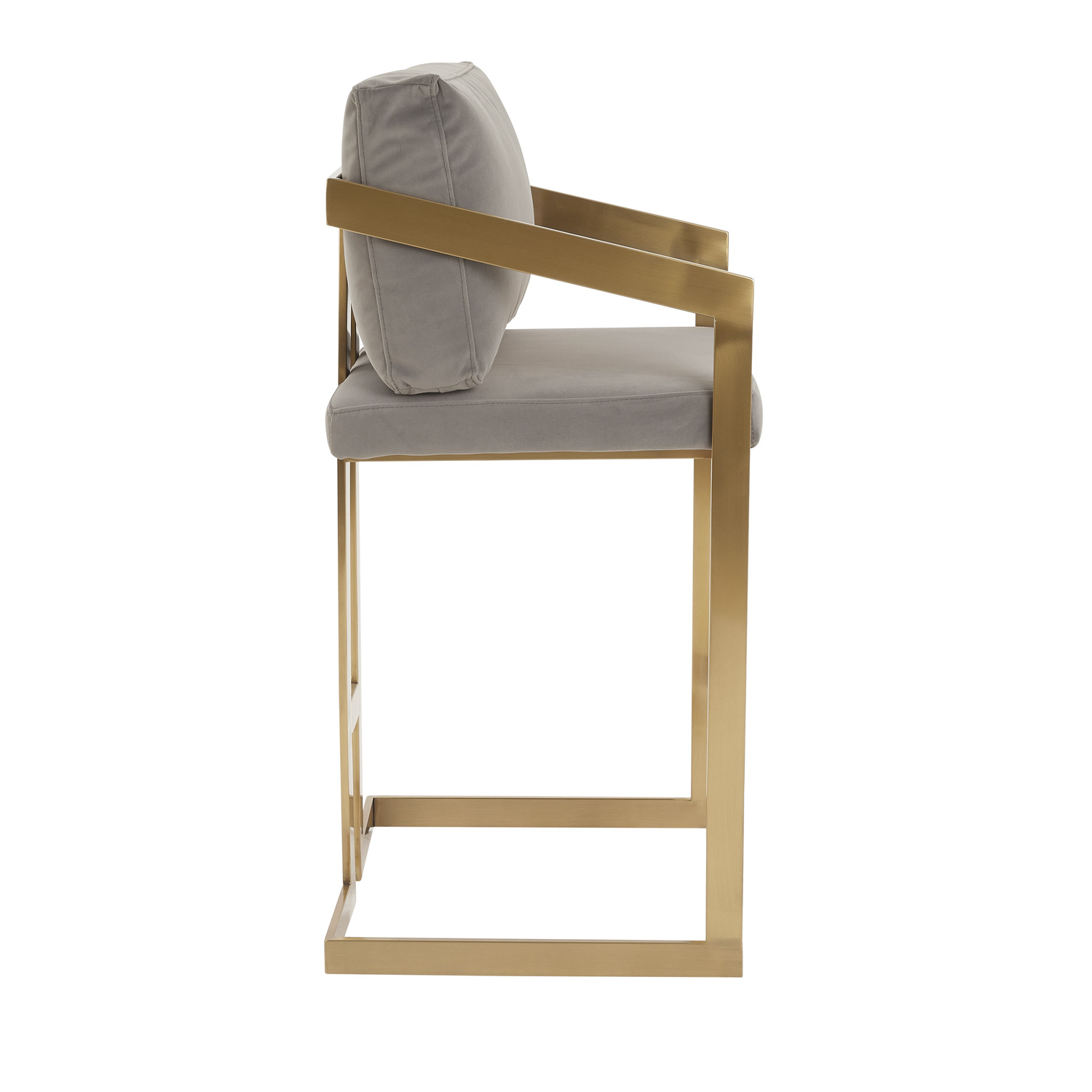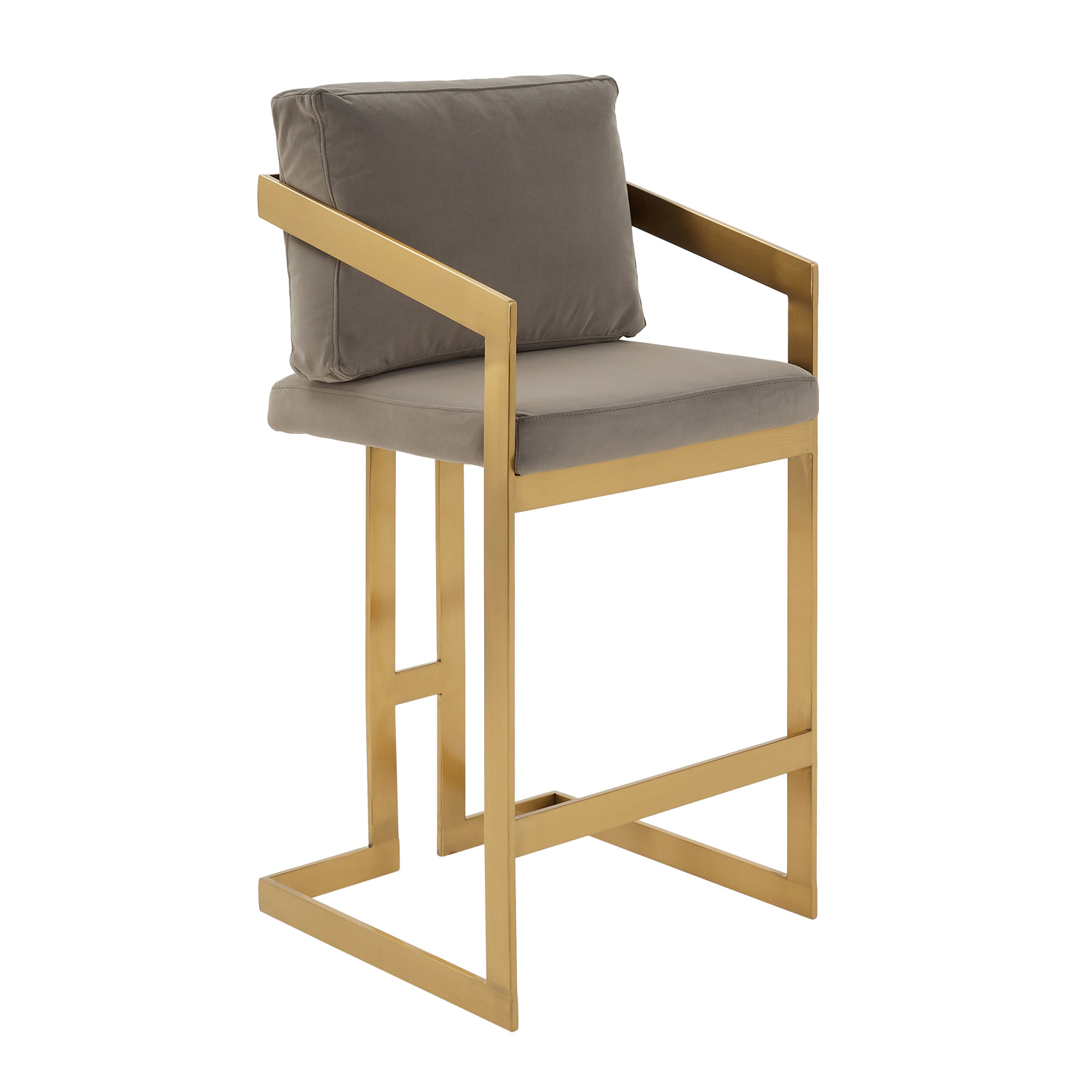Clara Grey Velvet Counter Stool with a Gold Stainless Steel Frame