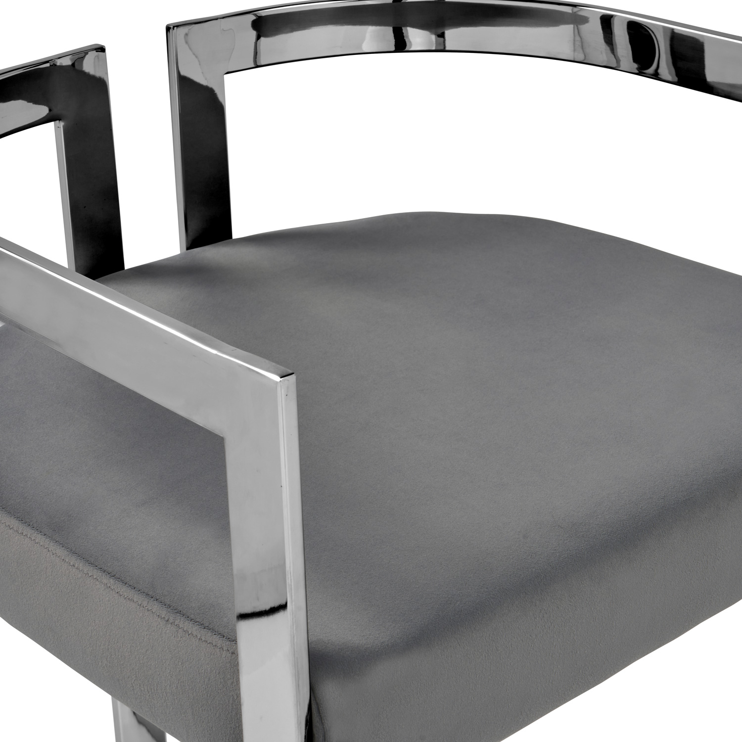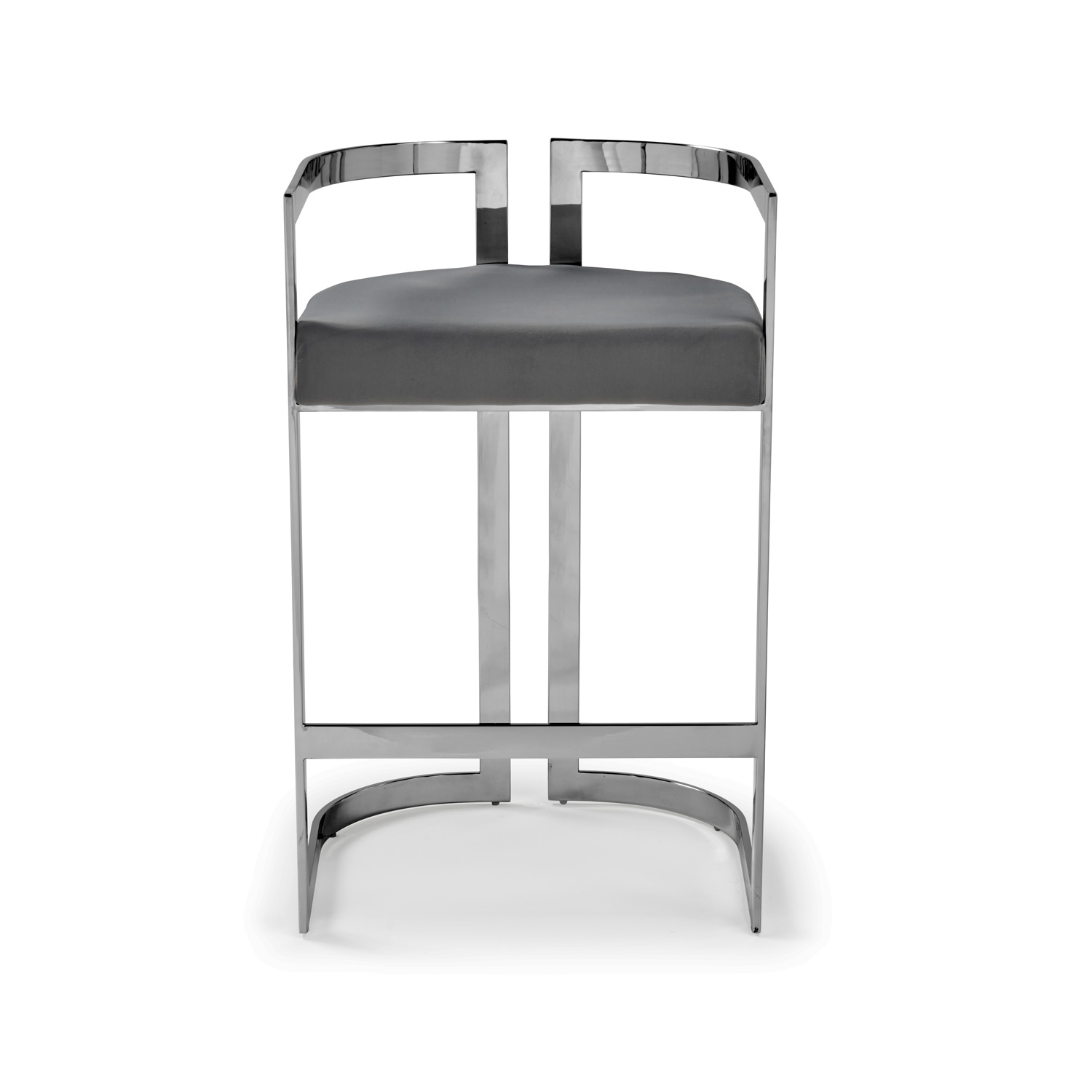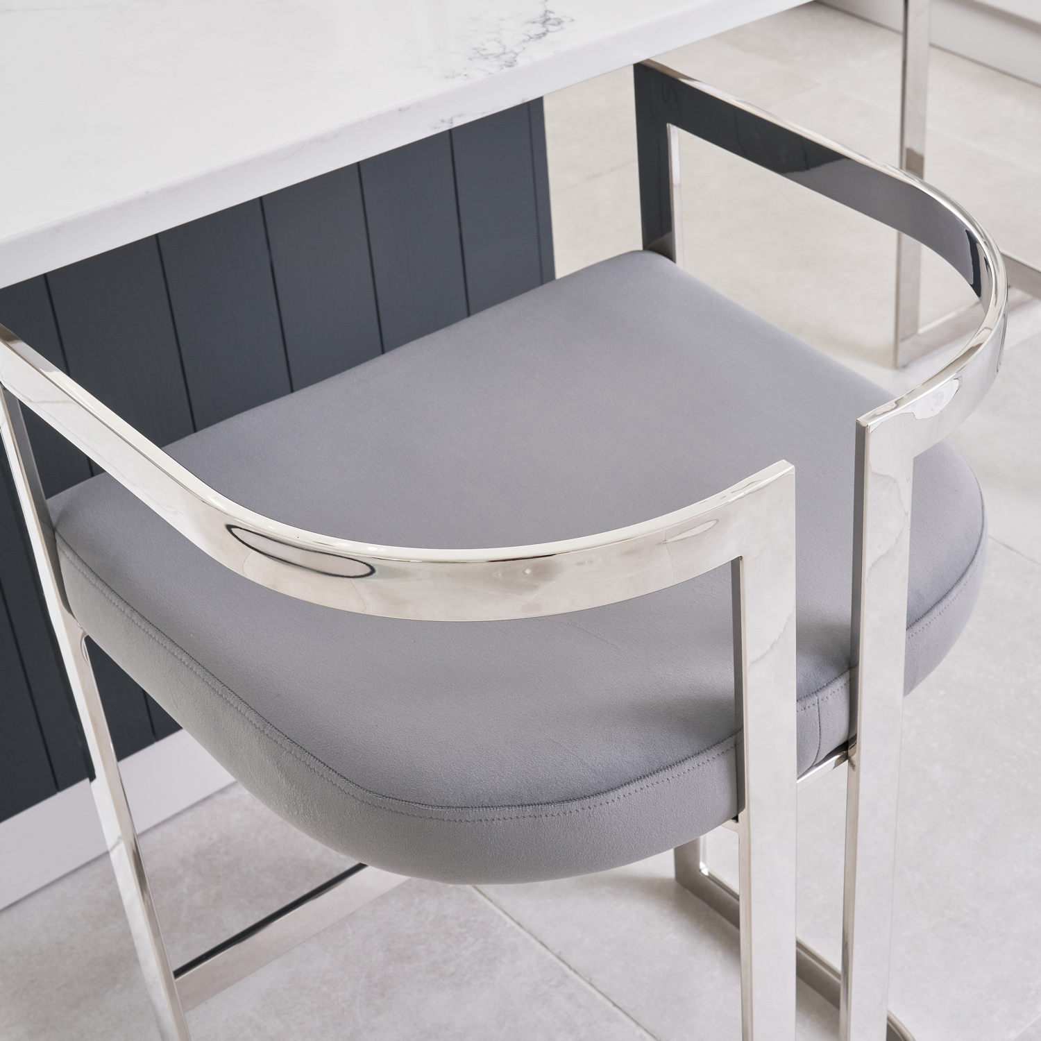 Blend style and comfort when you take ownership of this beautiful grey velvet counter stool with its luxurious polished stainless steel frame.