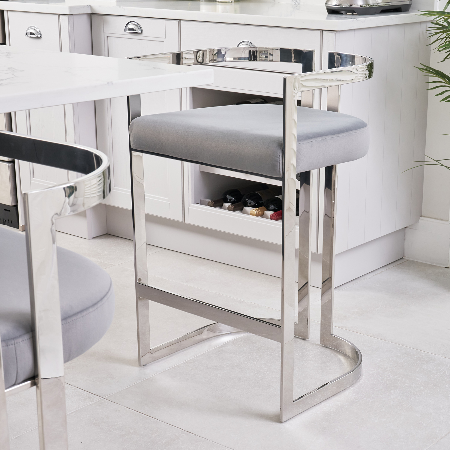 Annalise Grey Velvet Kitchen Barstool – Stainless Steel