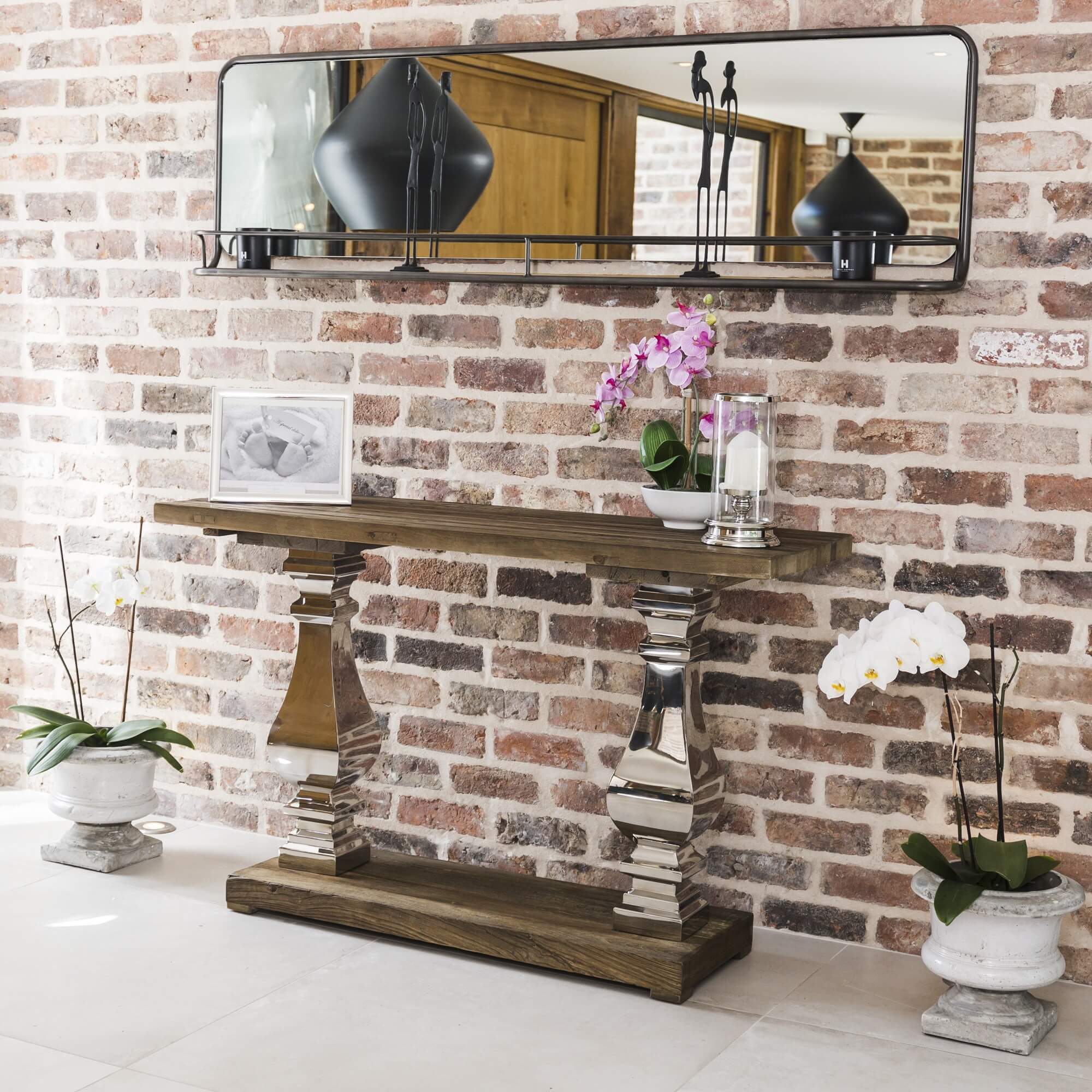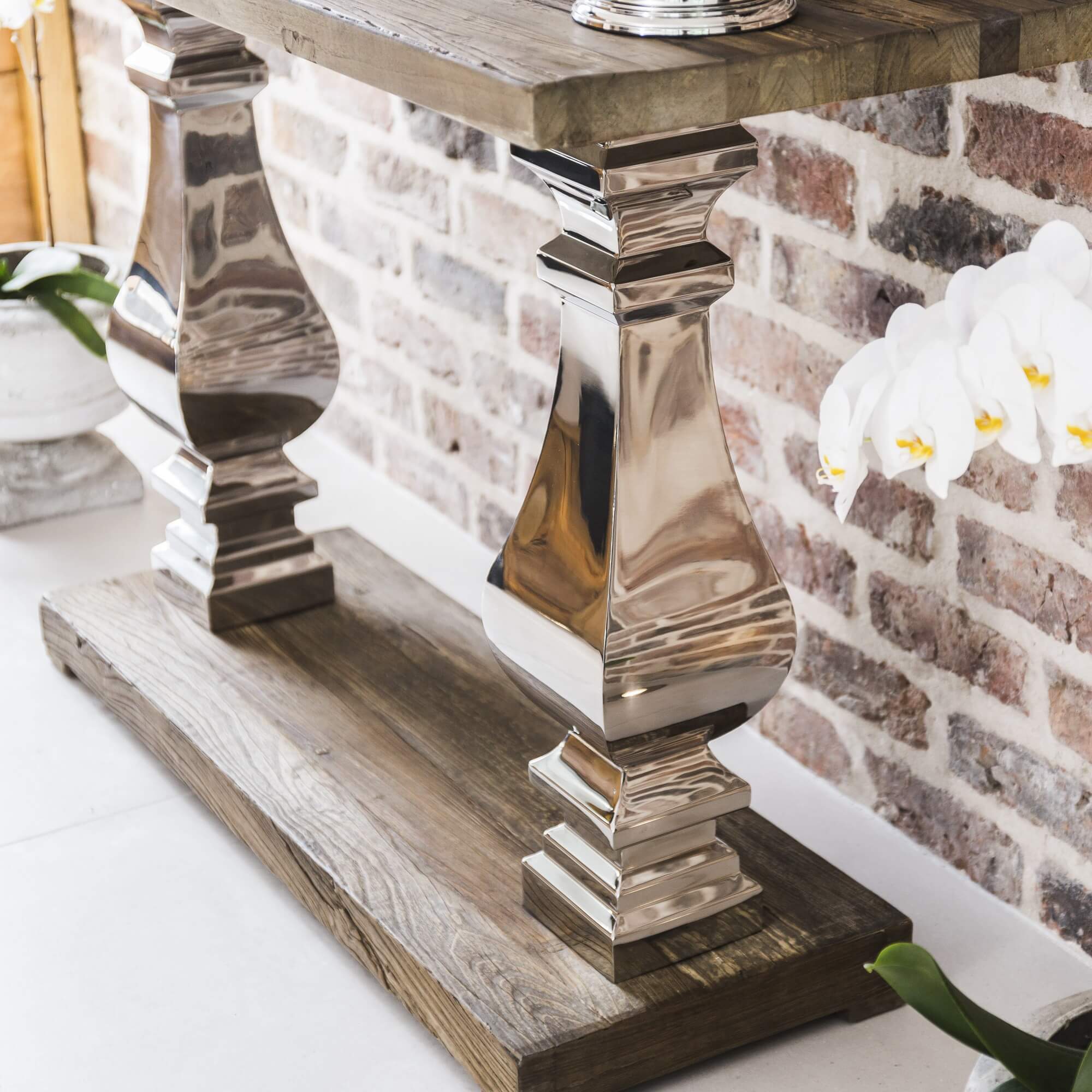 Aspen Reclaimed Elm Console Table With Stainless Steel Pillars