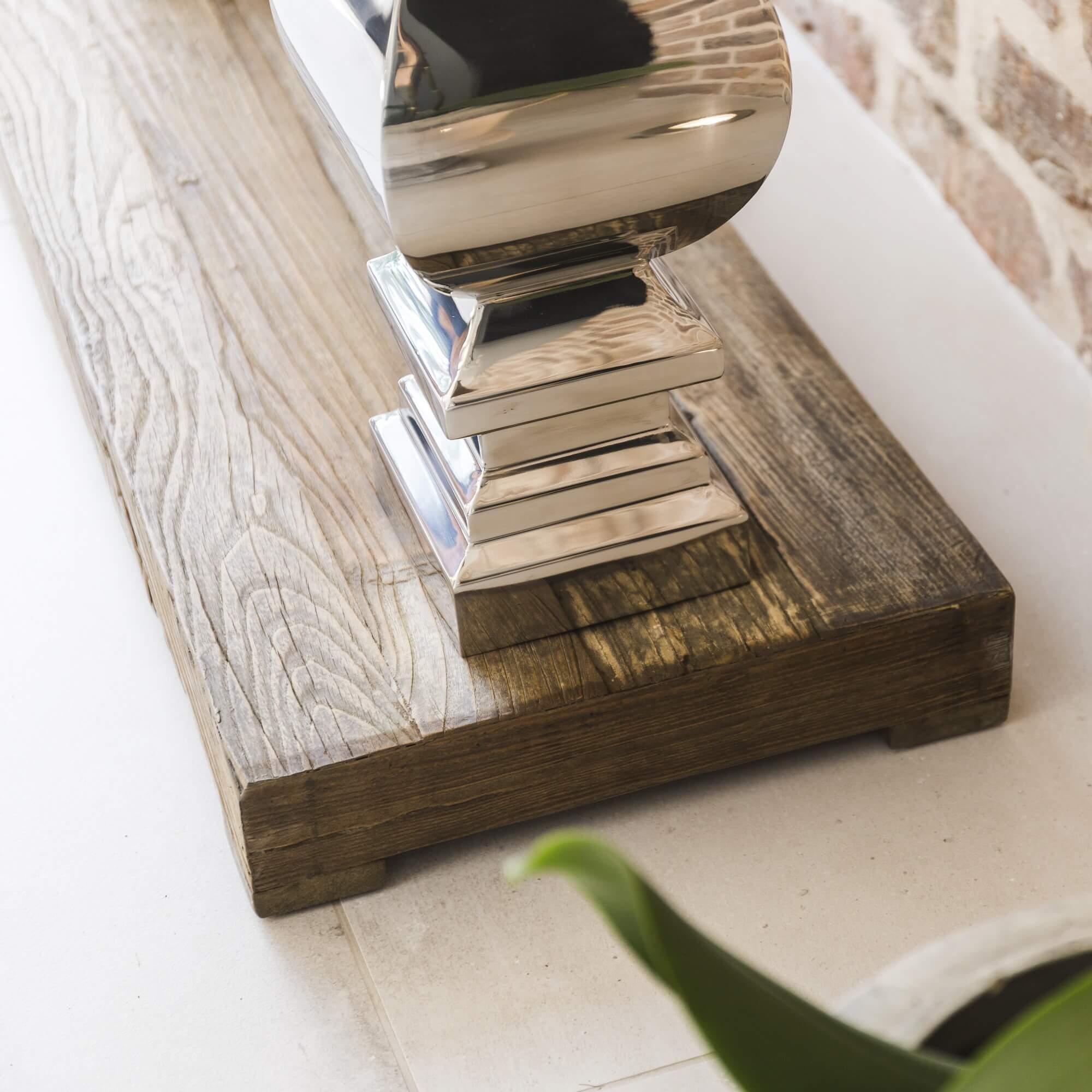 You can display family photos, candles or home accessories with pride on this stunning console table which has been crafted from solid reclaimed elm slabs connected via two polished steel pillars which serve to add a real feeling of quality to the item. The strength of these materials ensures that this is a console table built for longevity with a style which ensures that it will remain relevant through various changes in interior design trends.