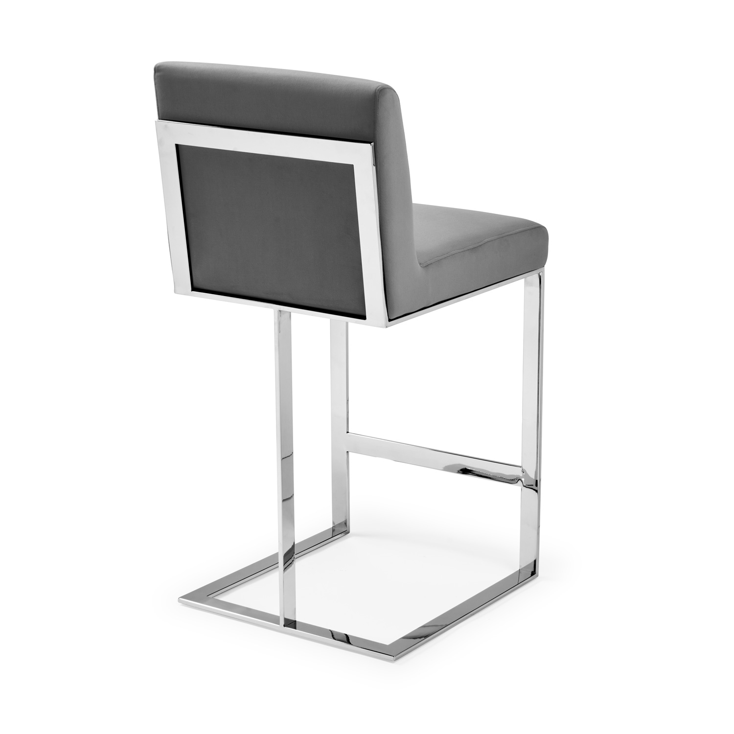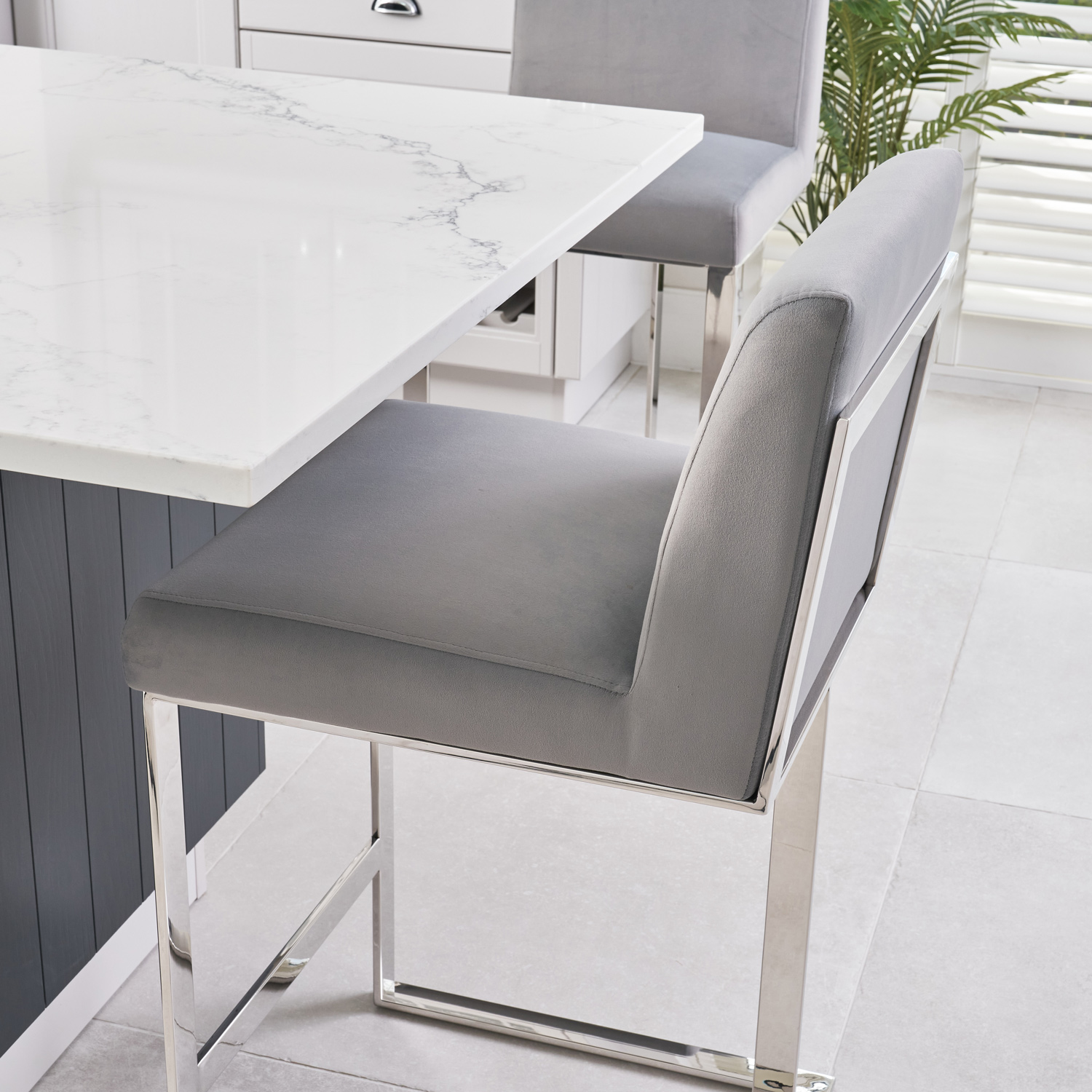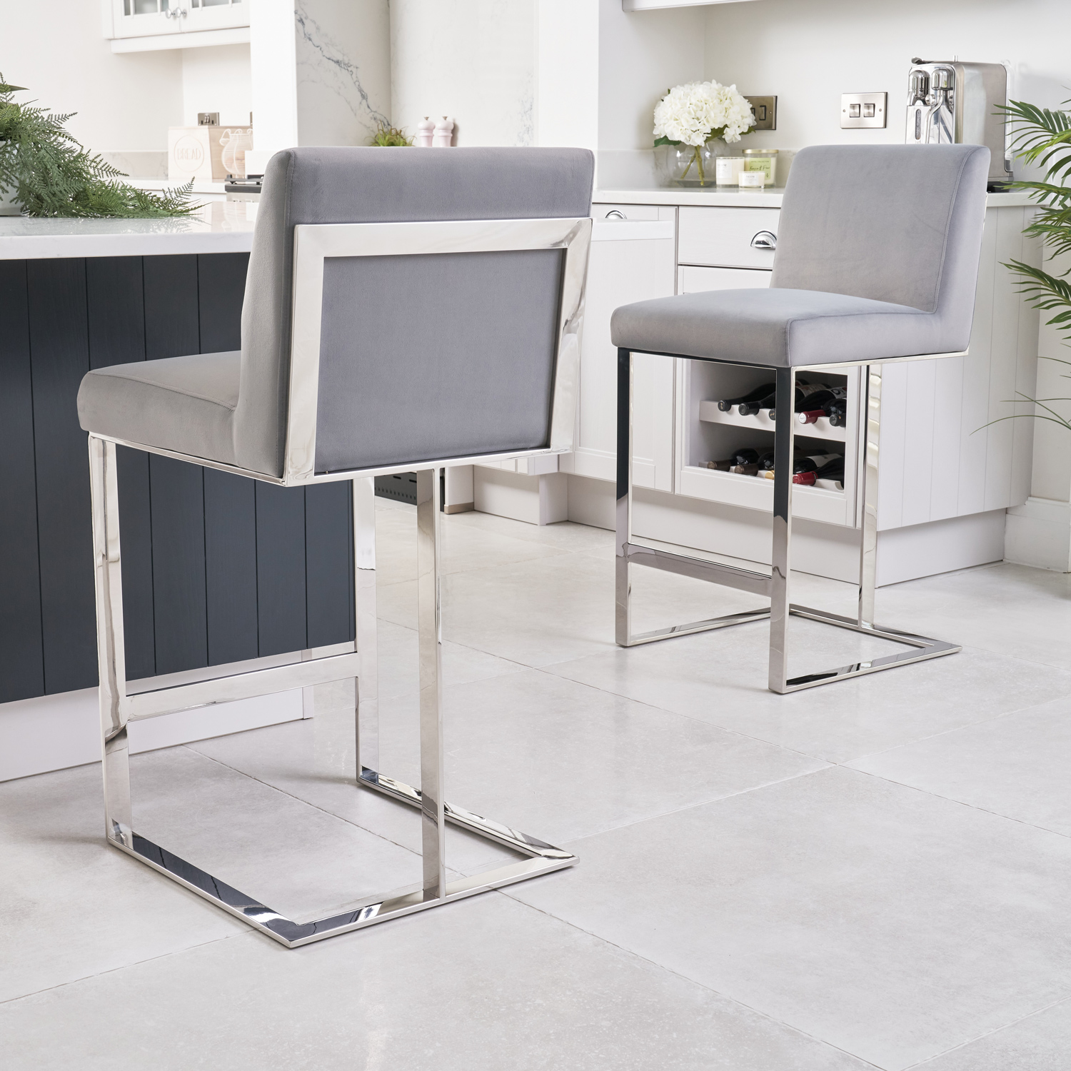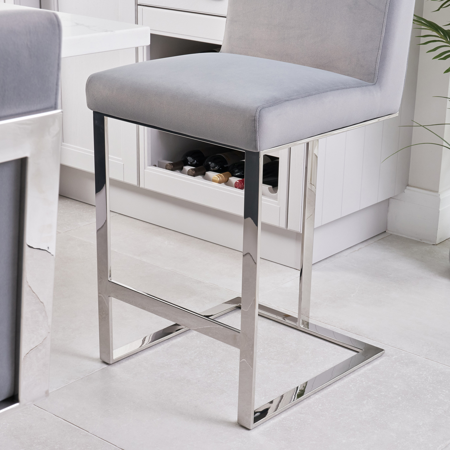Bailey Grey Velvet Kitchen Barstool – Polished Steel