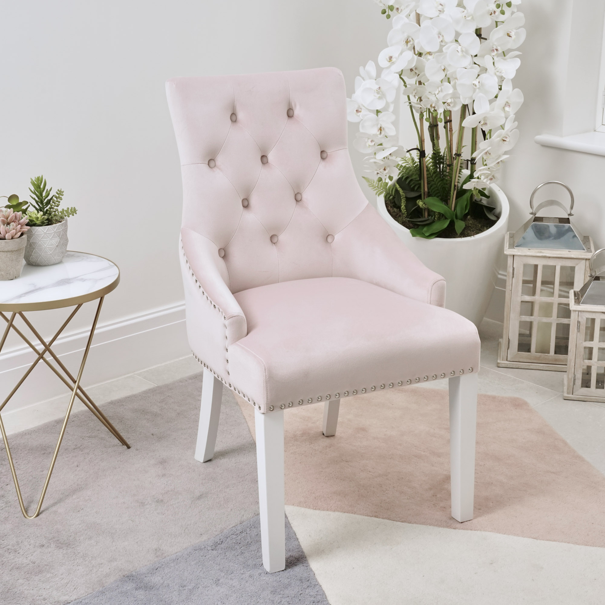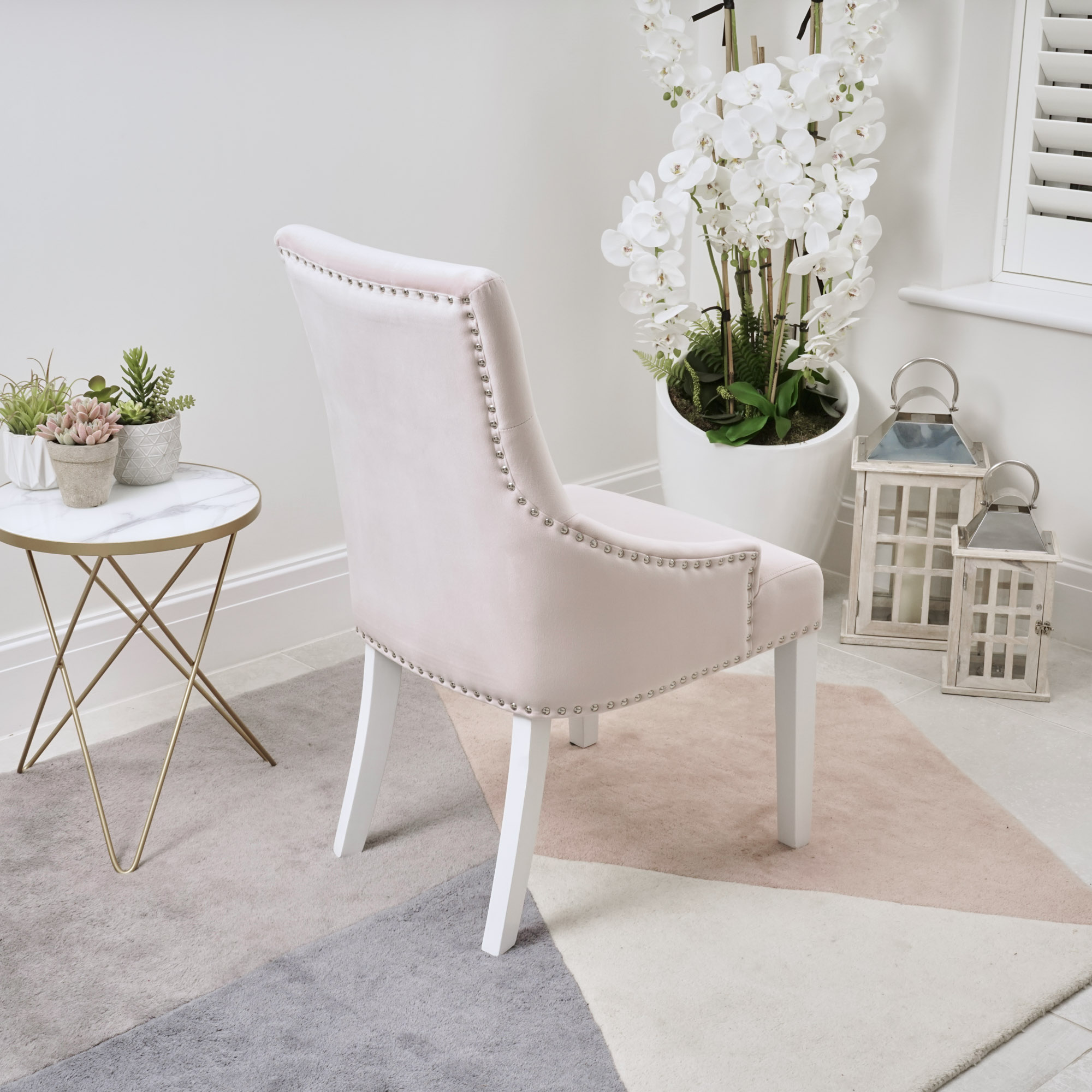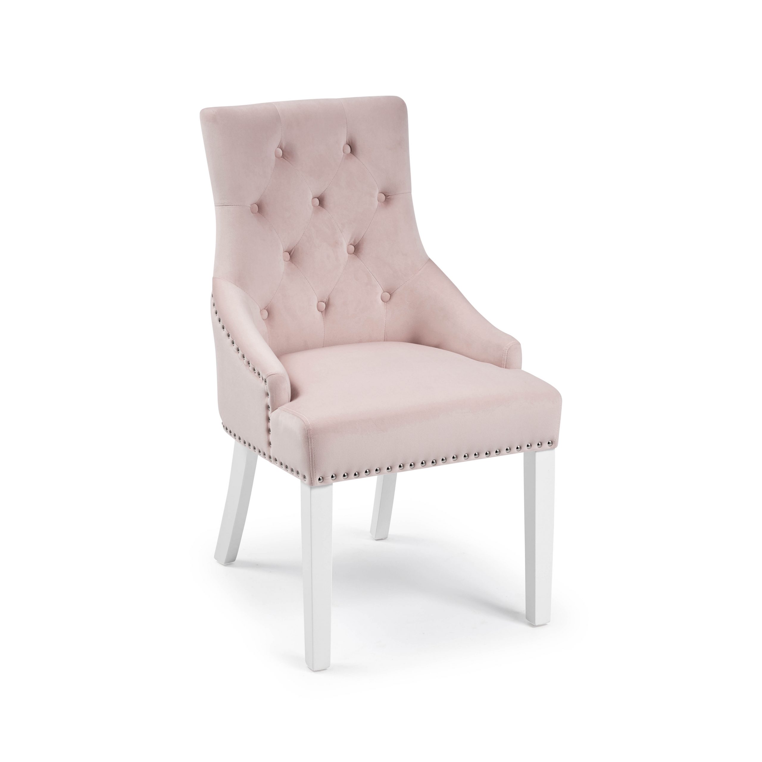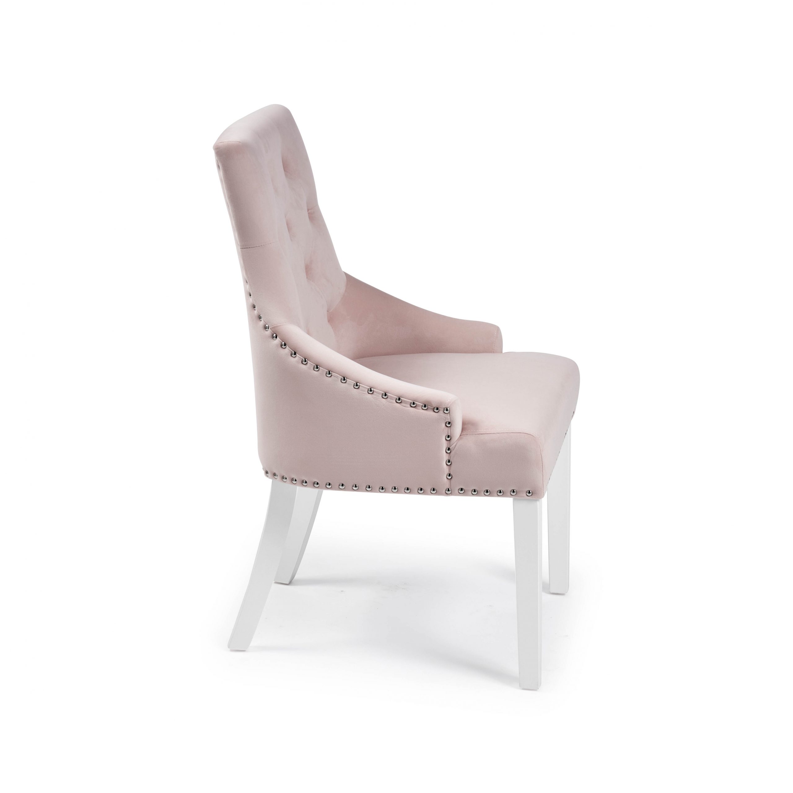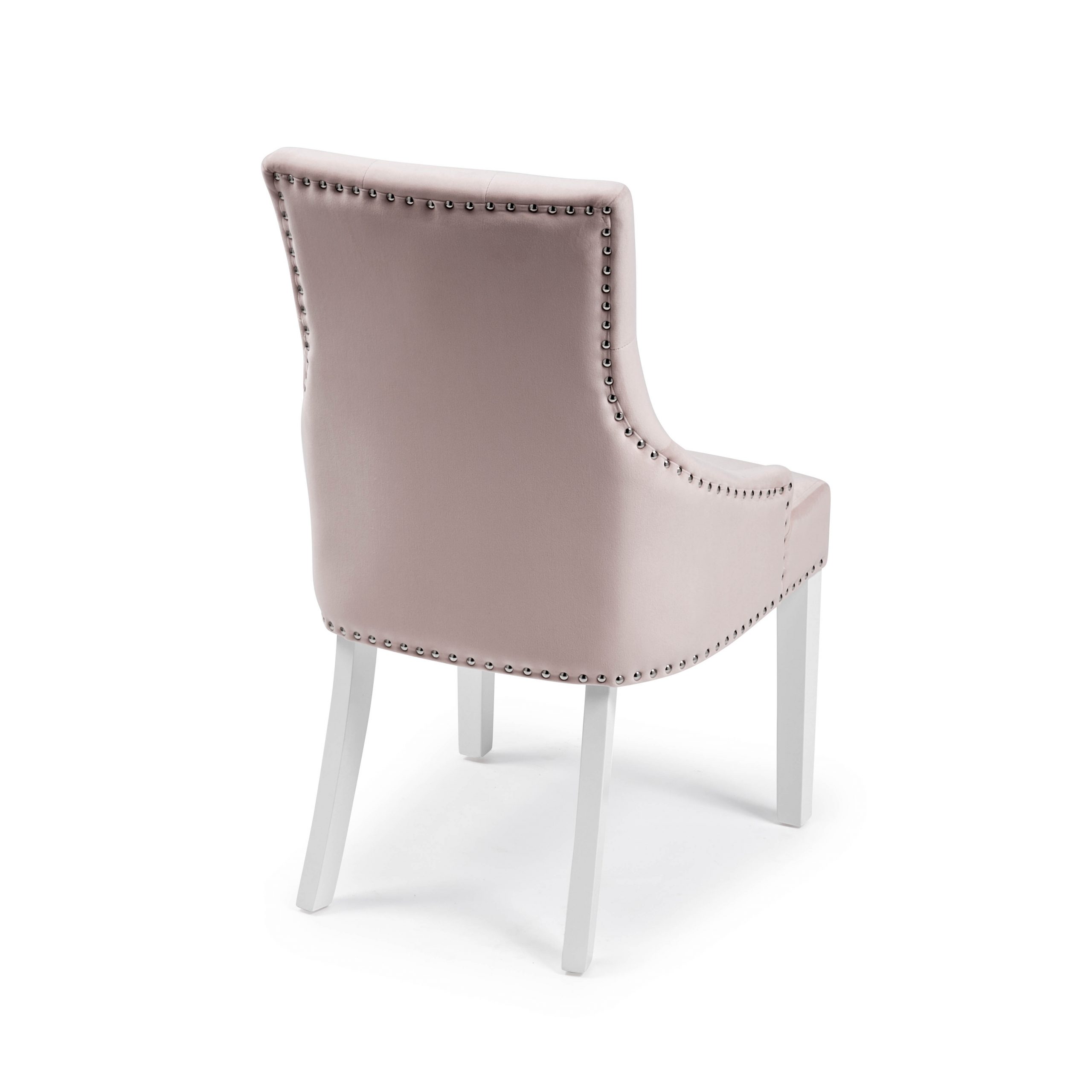 Chelsea Pink Brushed Velvet Upholstered Scoop Dining Chair – White Legs