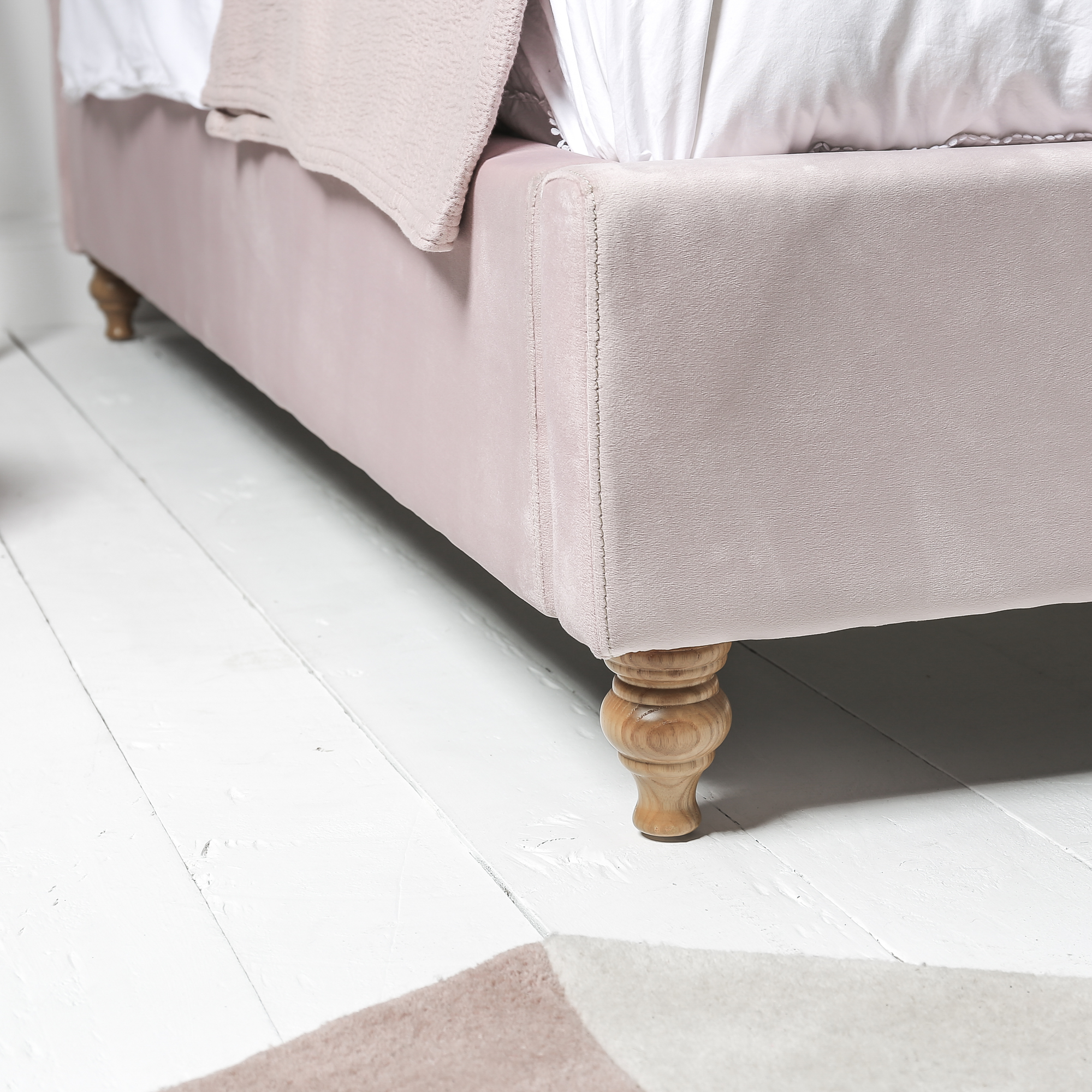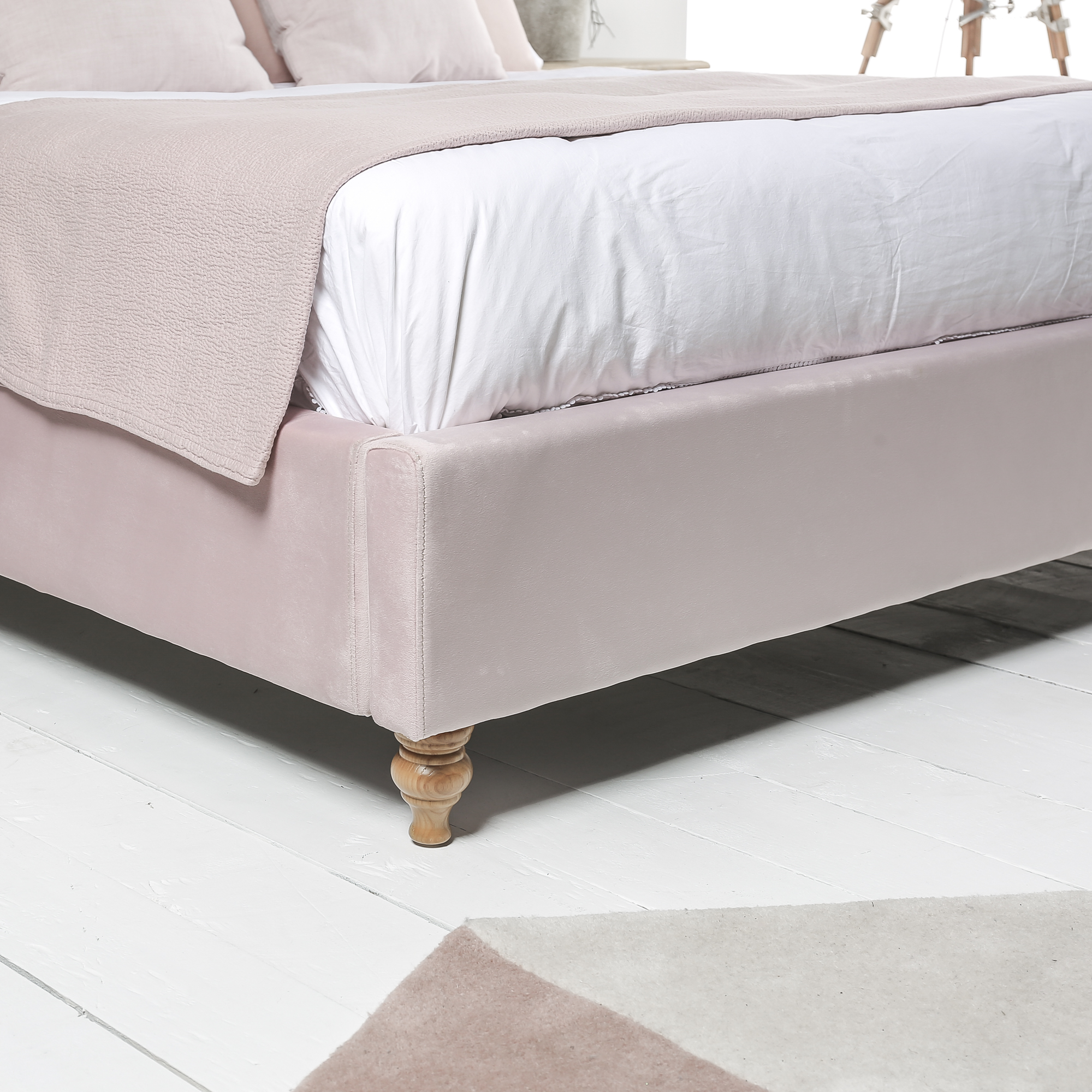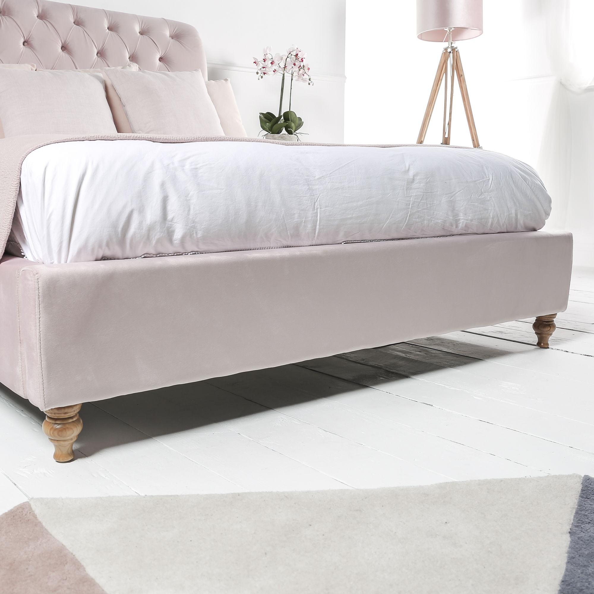 Whilst this change does result in a heavier king size bed frame, this is more than accommodated by the solid wooden legs which are designed to stand the test of time. What else would you expect from another quality piece of furniture from Cheshire's leading home furniture store? Indeed, no aspect of the design has been overlooked with the headboard and frame both being covered in high quality pink velvet which is not only warm and soft, but also covers a dense upholstery which provides you with comfort regardless of how many hours to stay awake reading or watching TV.