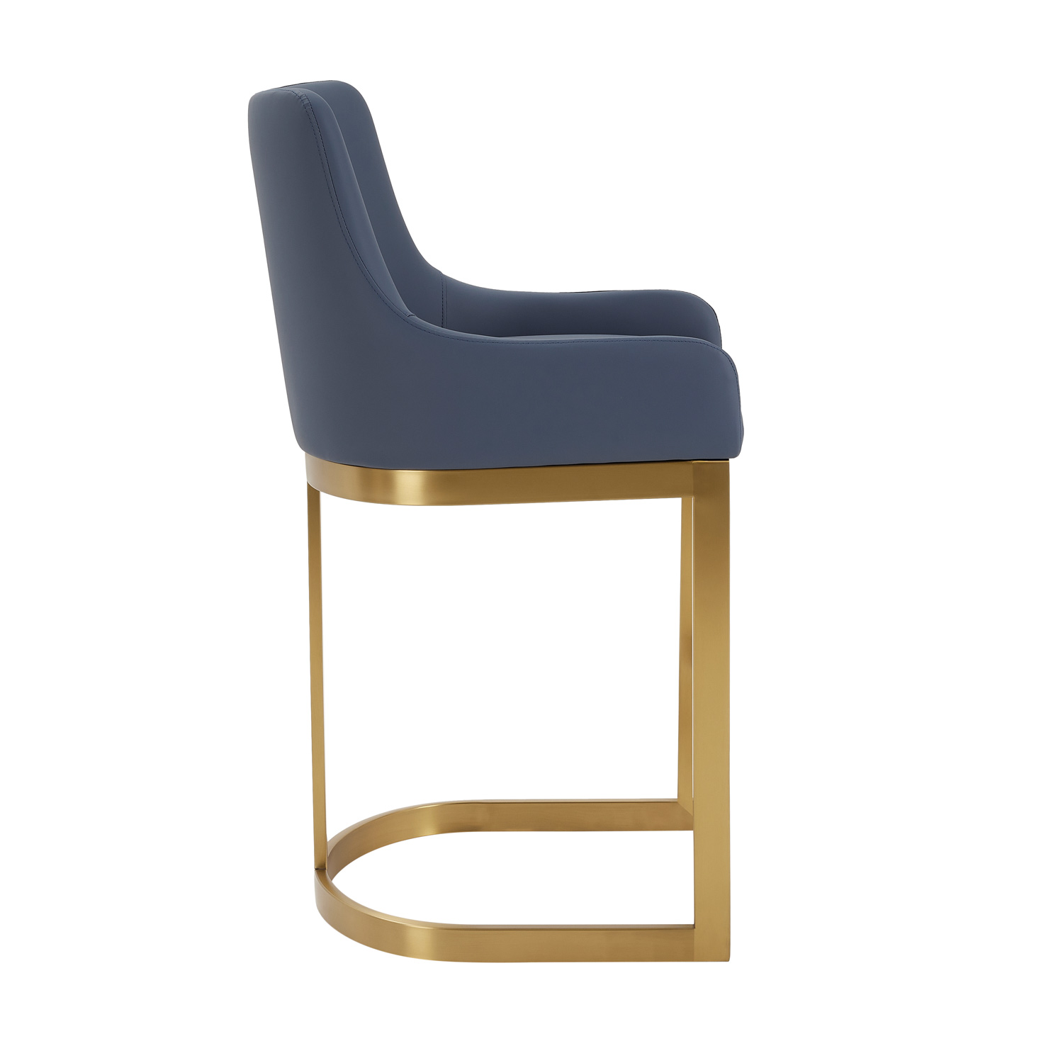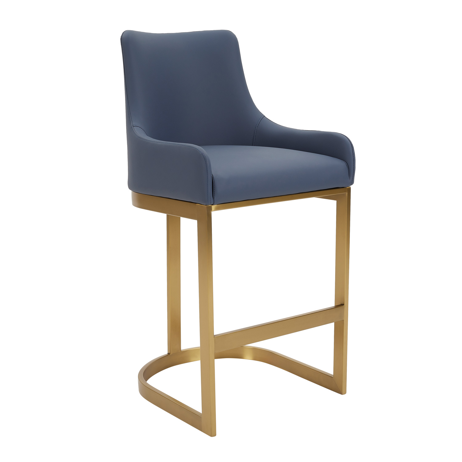 Clara Blue Upholstered Counter Kitchen Stool with Gold Steel Frame