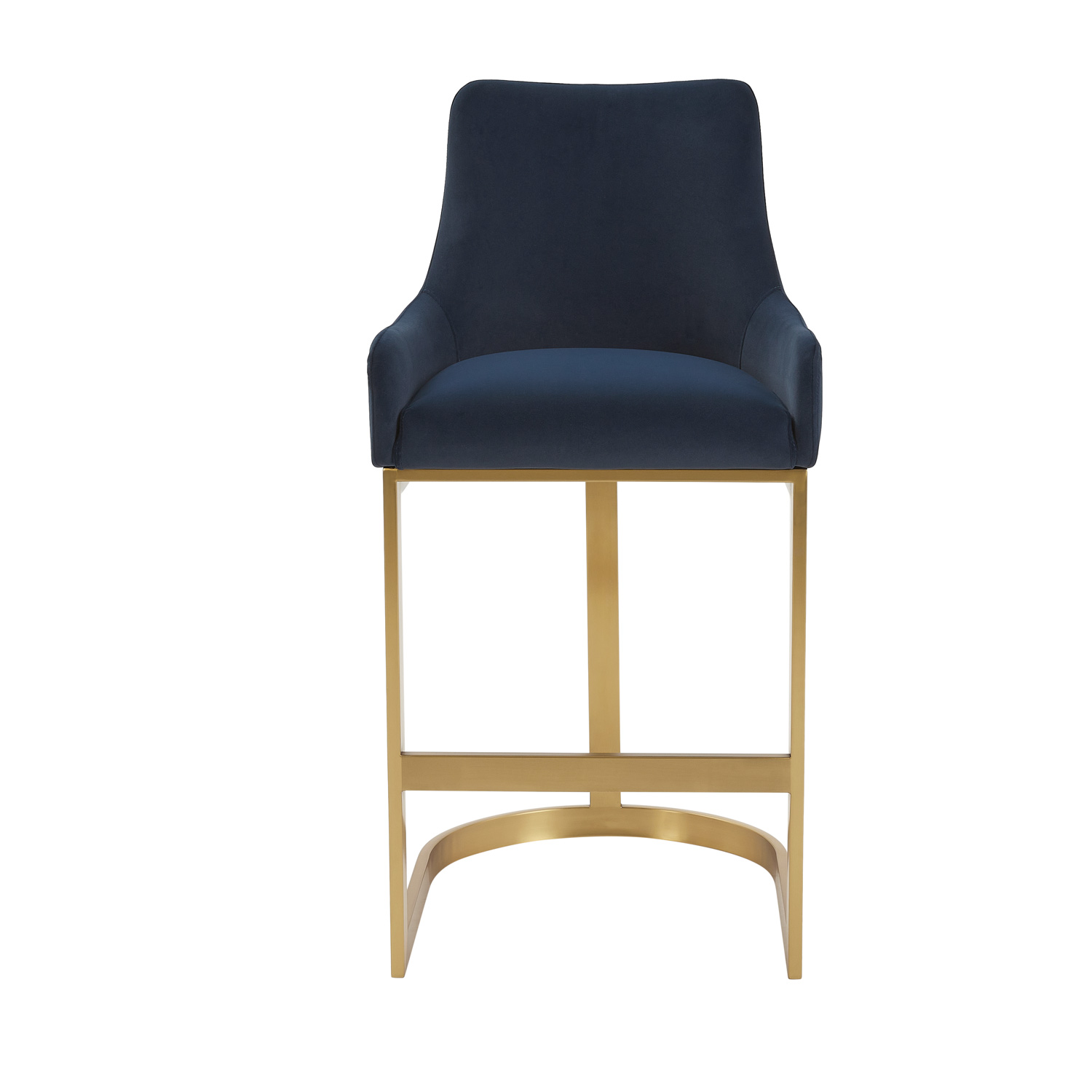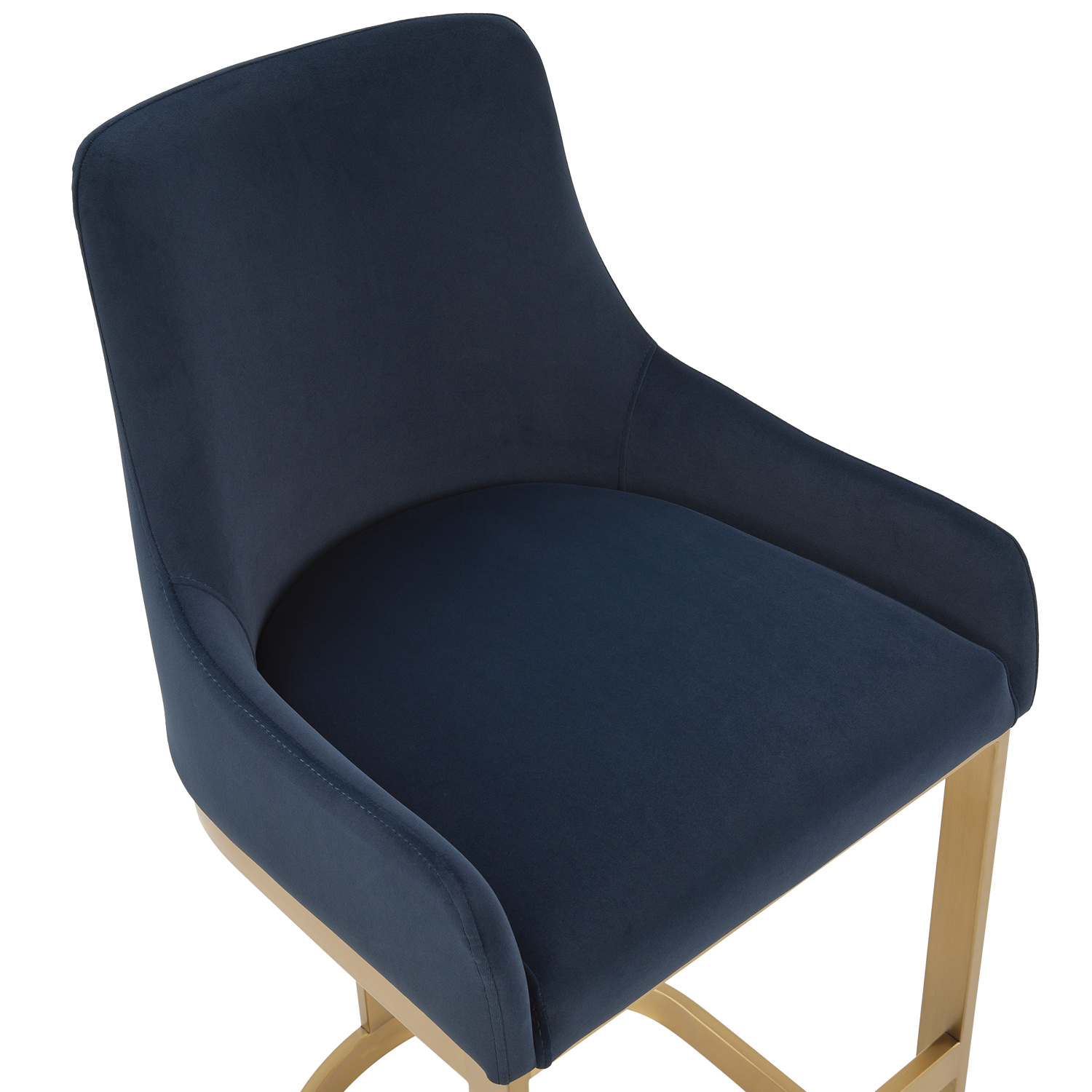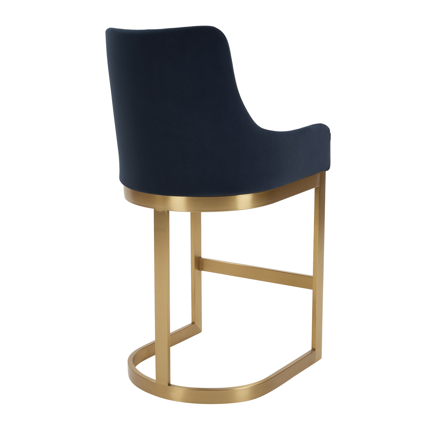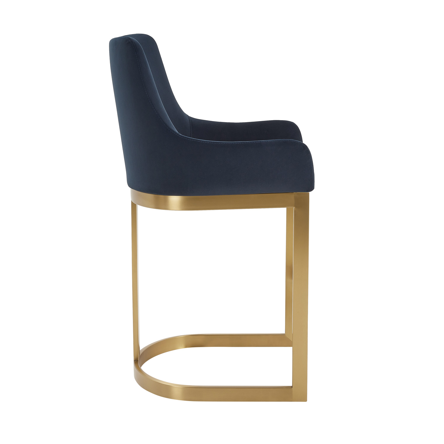 Clara Blue Velvet Upholstered Counter Kitchen Stool with Gold Steel Frame