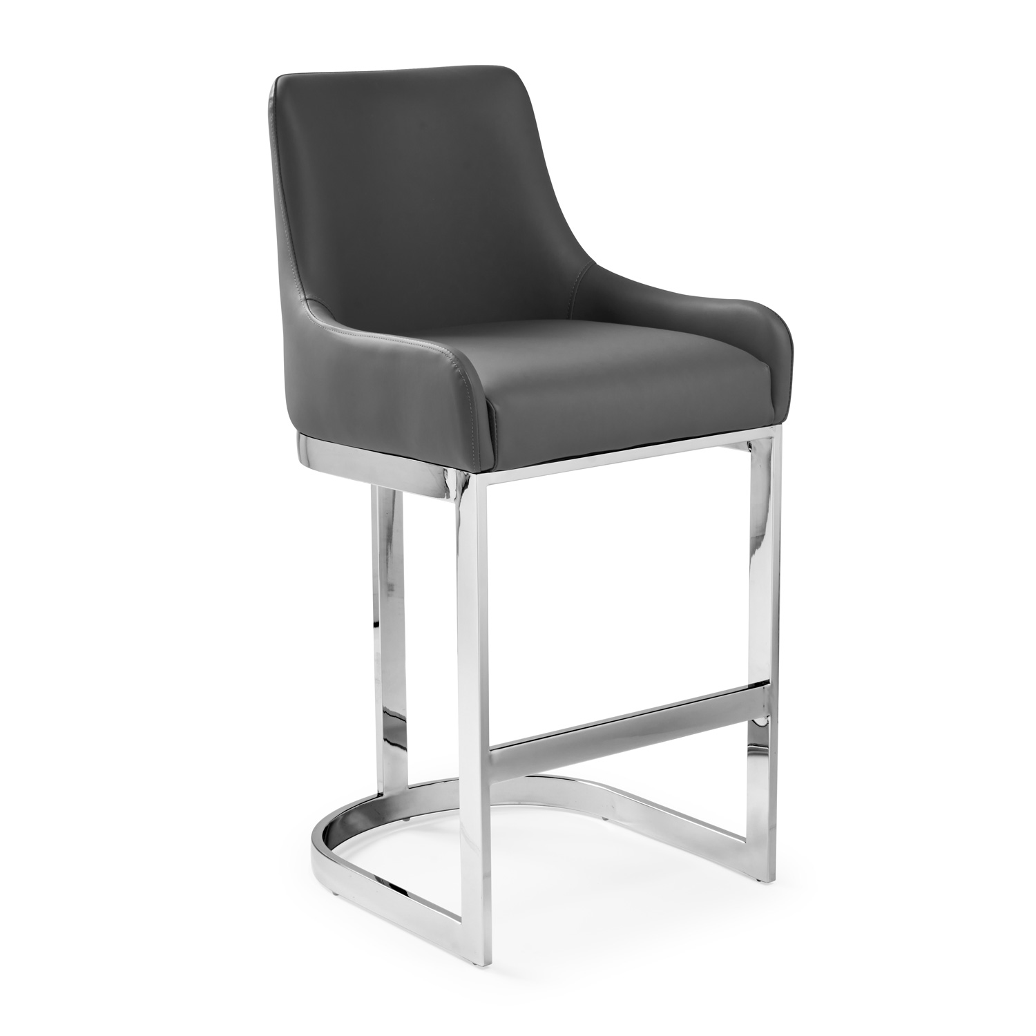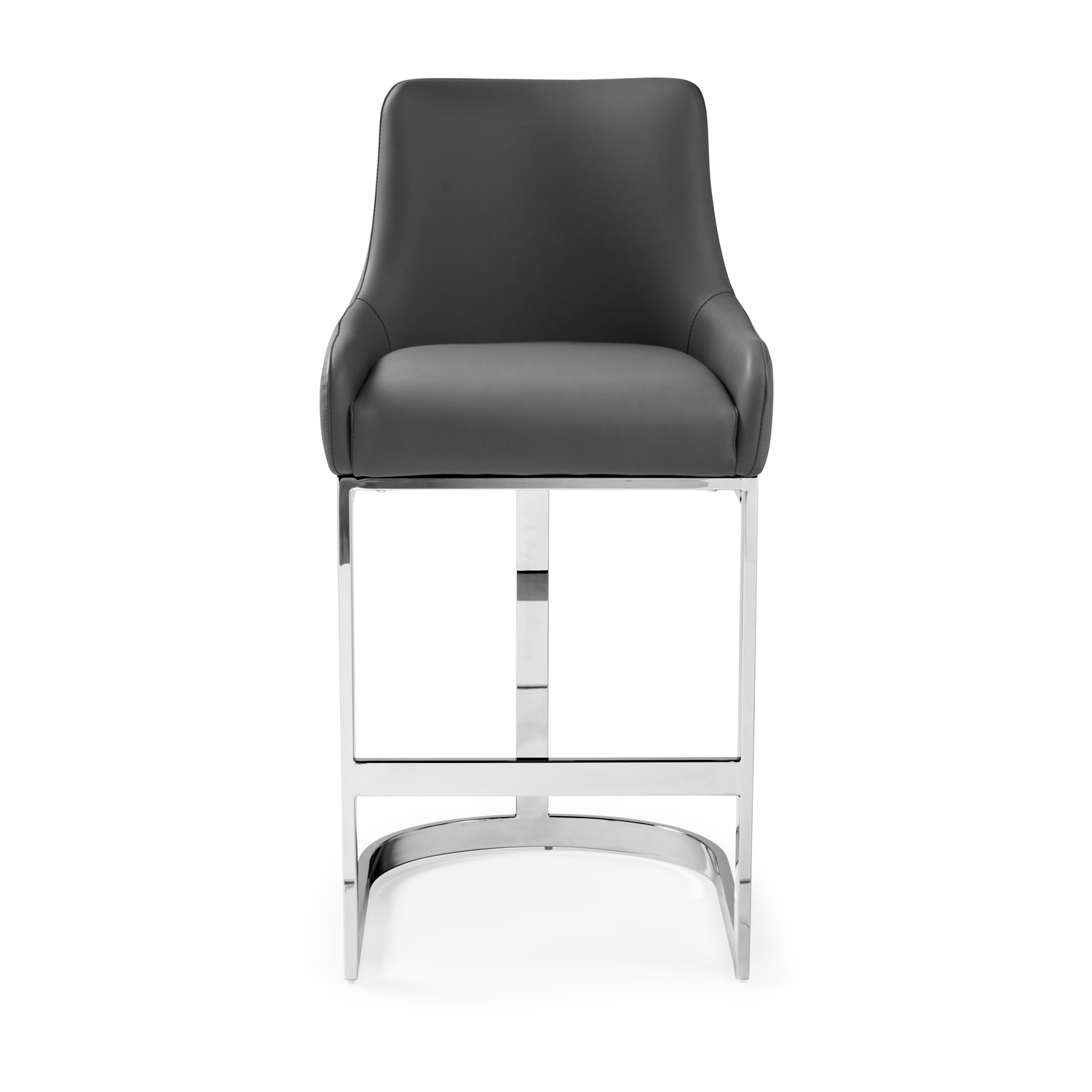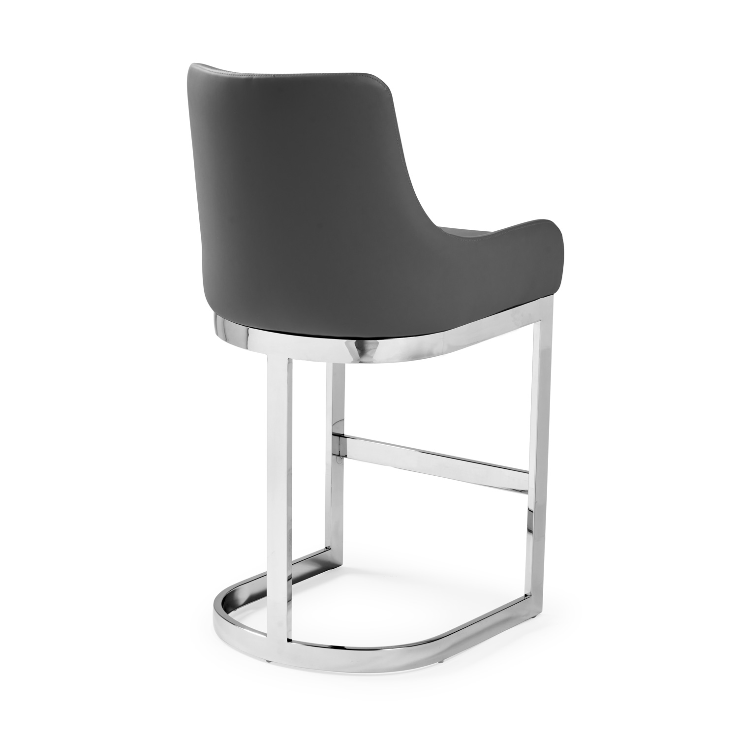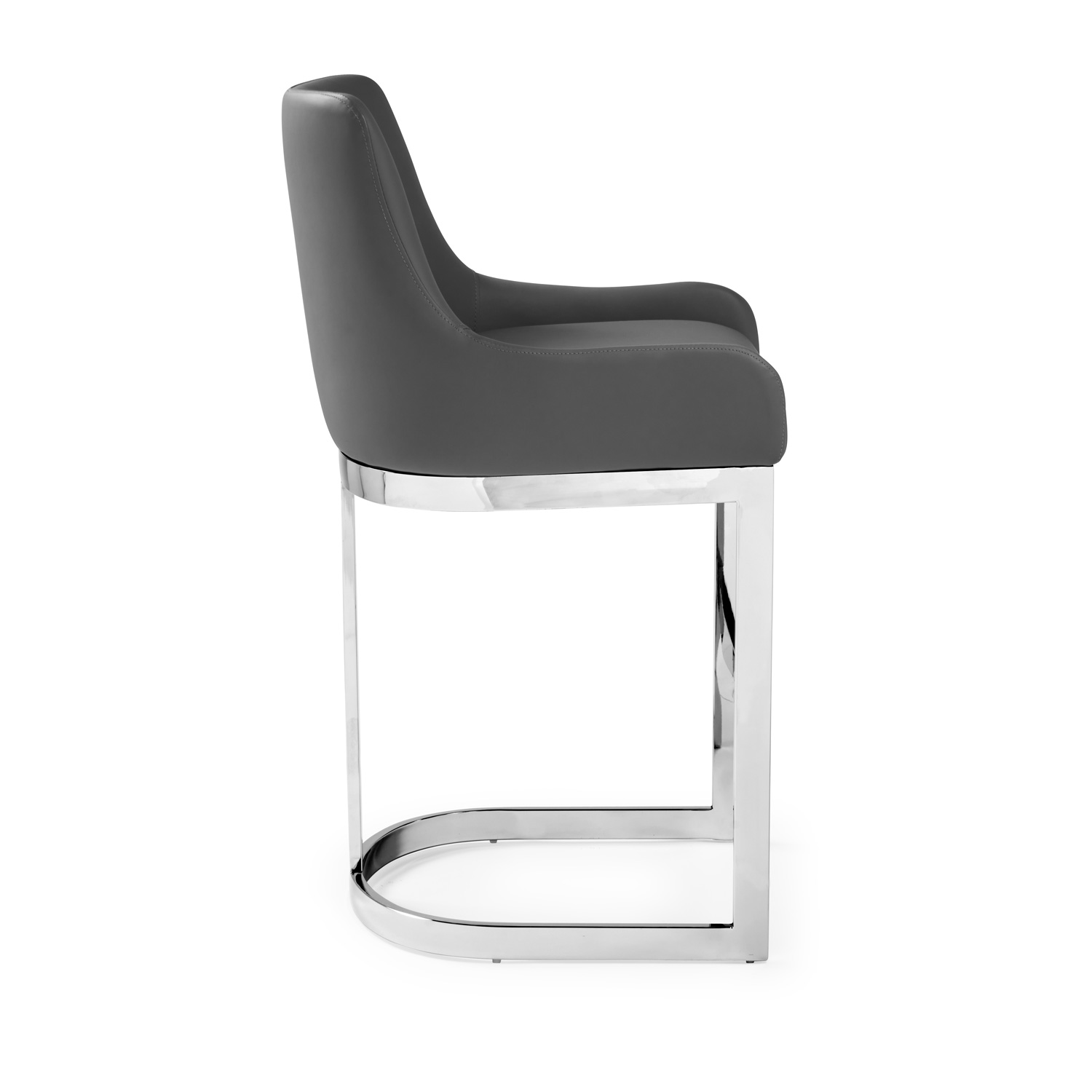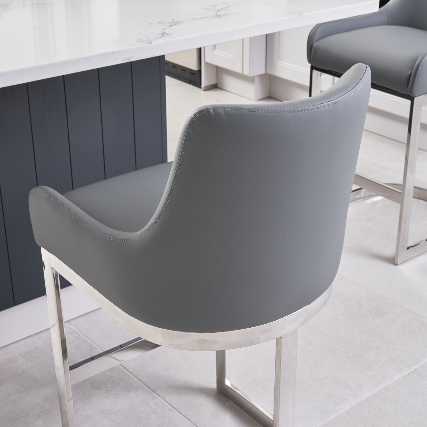 Clara Grey Faux Leather Counter Kitchen Barstool with a Stainless Steel Frame