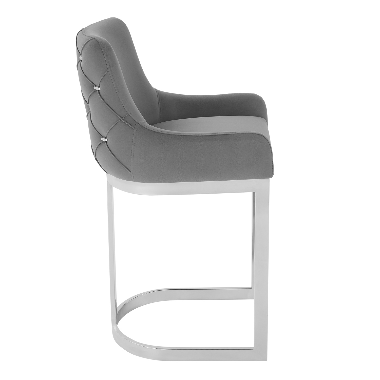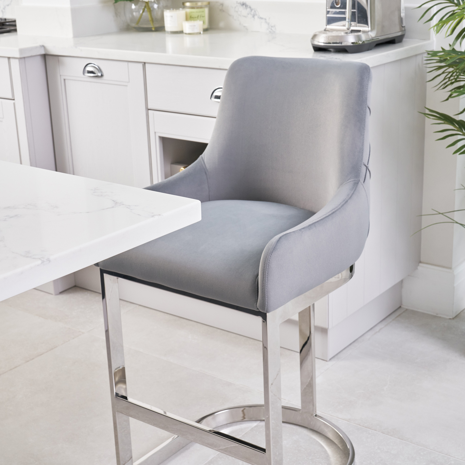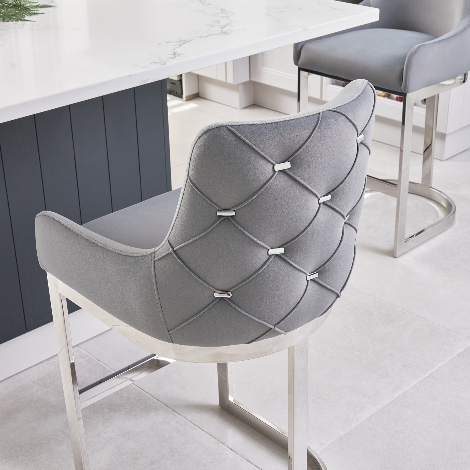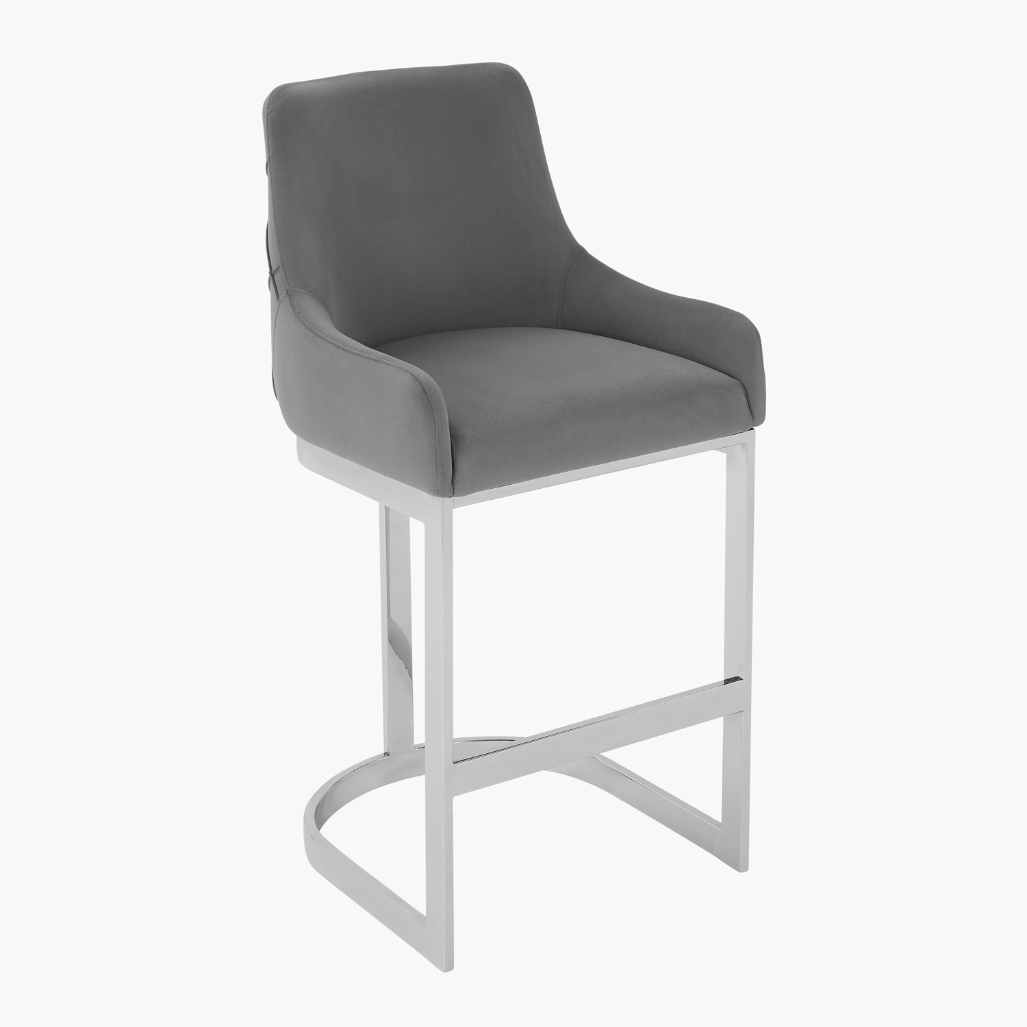 Annalise Grey Velvet Kitchen Barstool – Stainless Steel