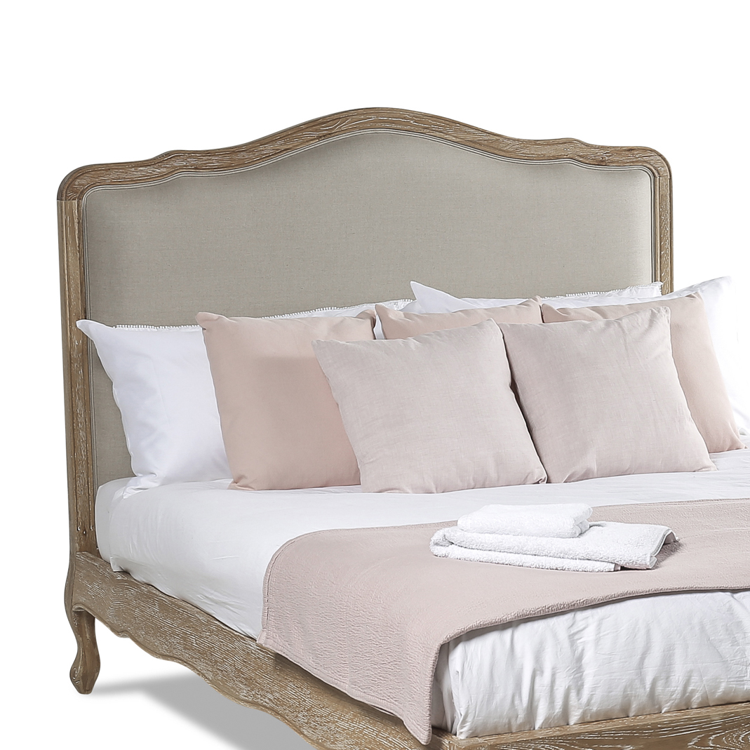 Clementine French Weathered Whitewash Oak Upholstered Headboard – Double