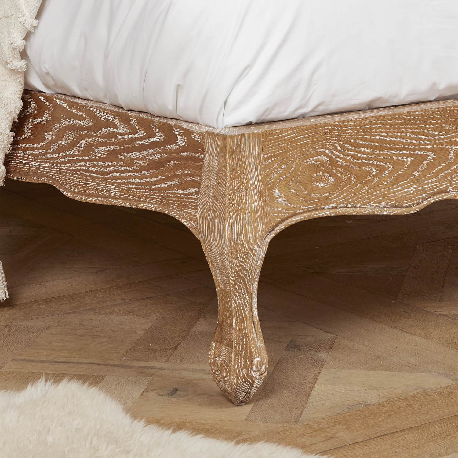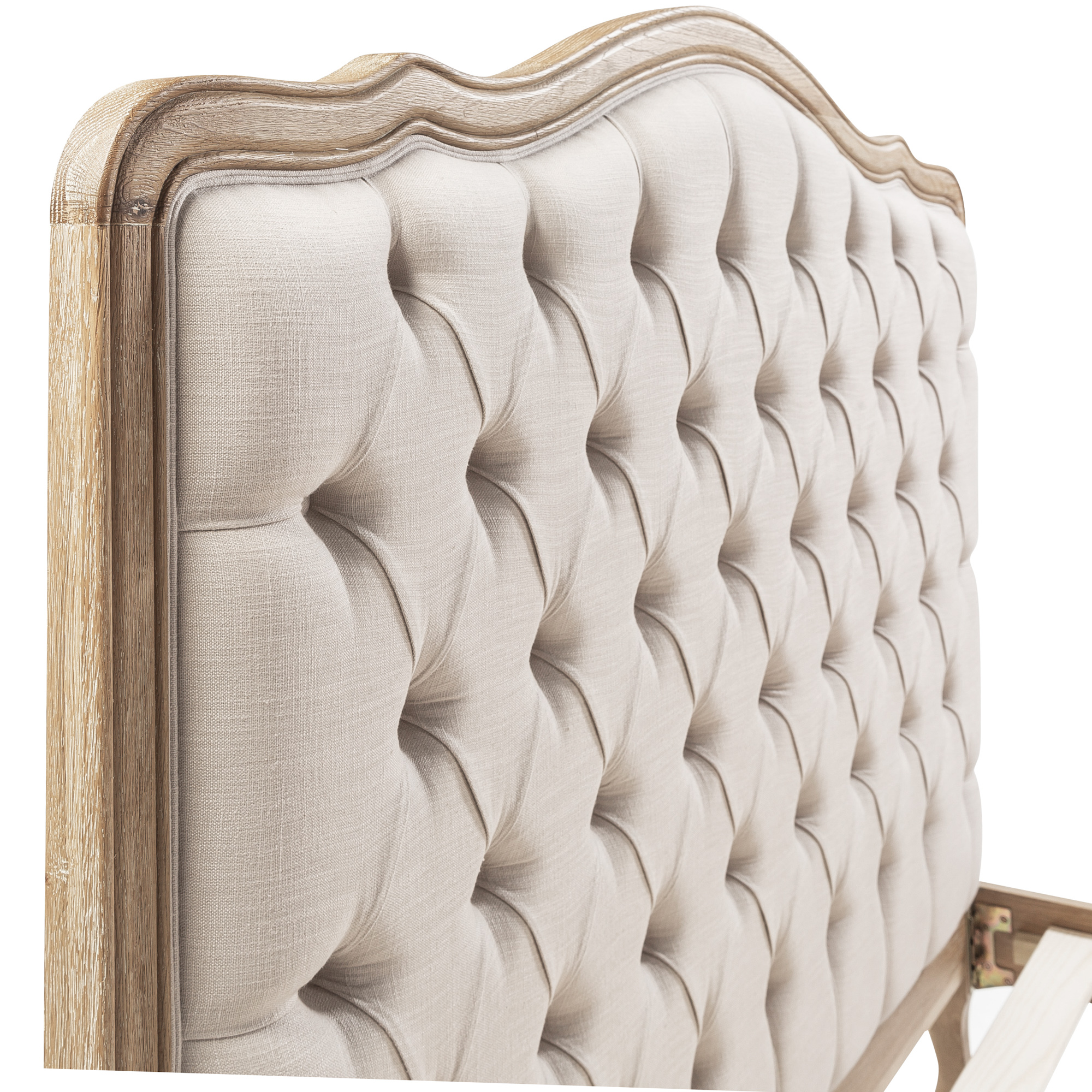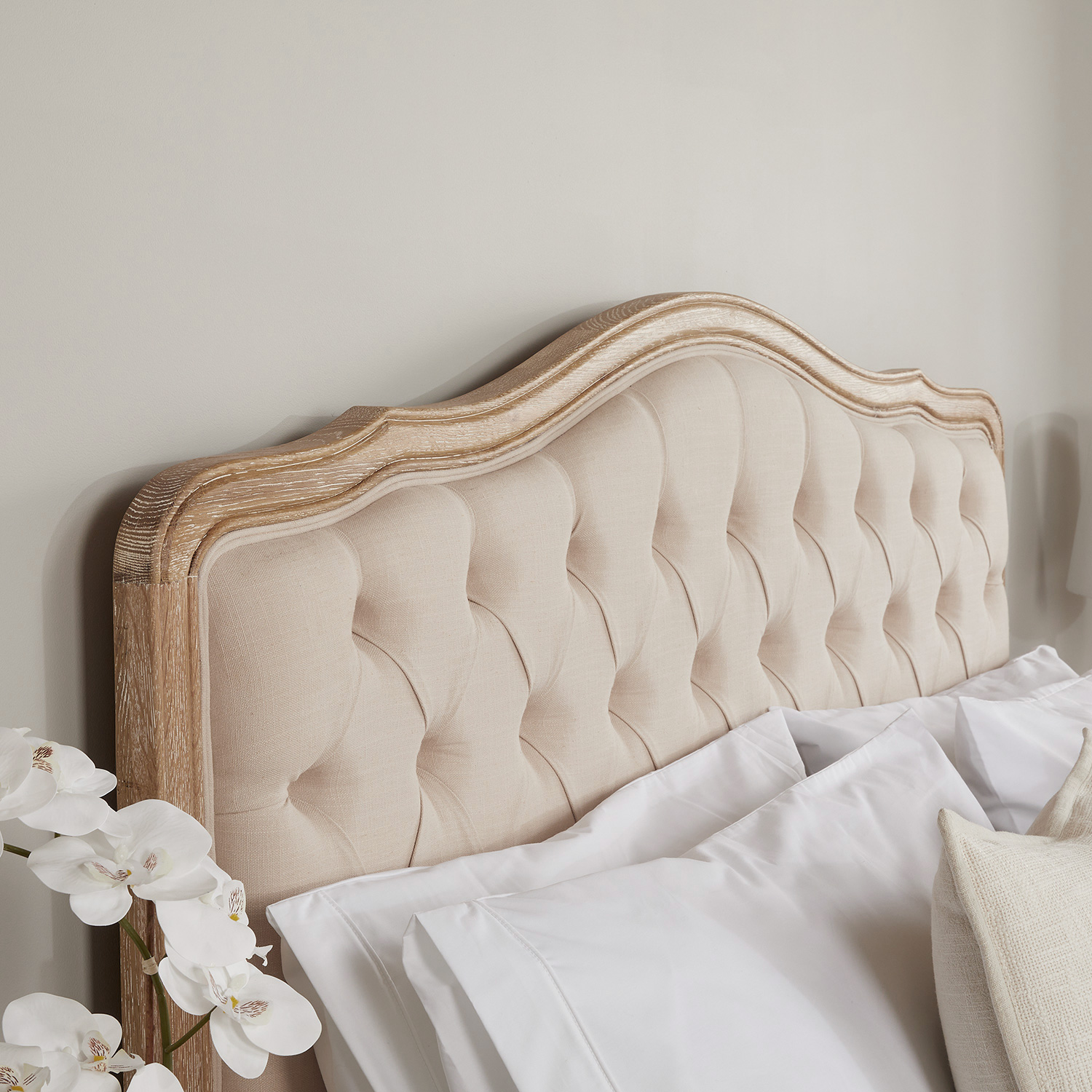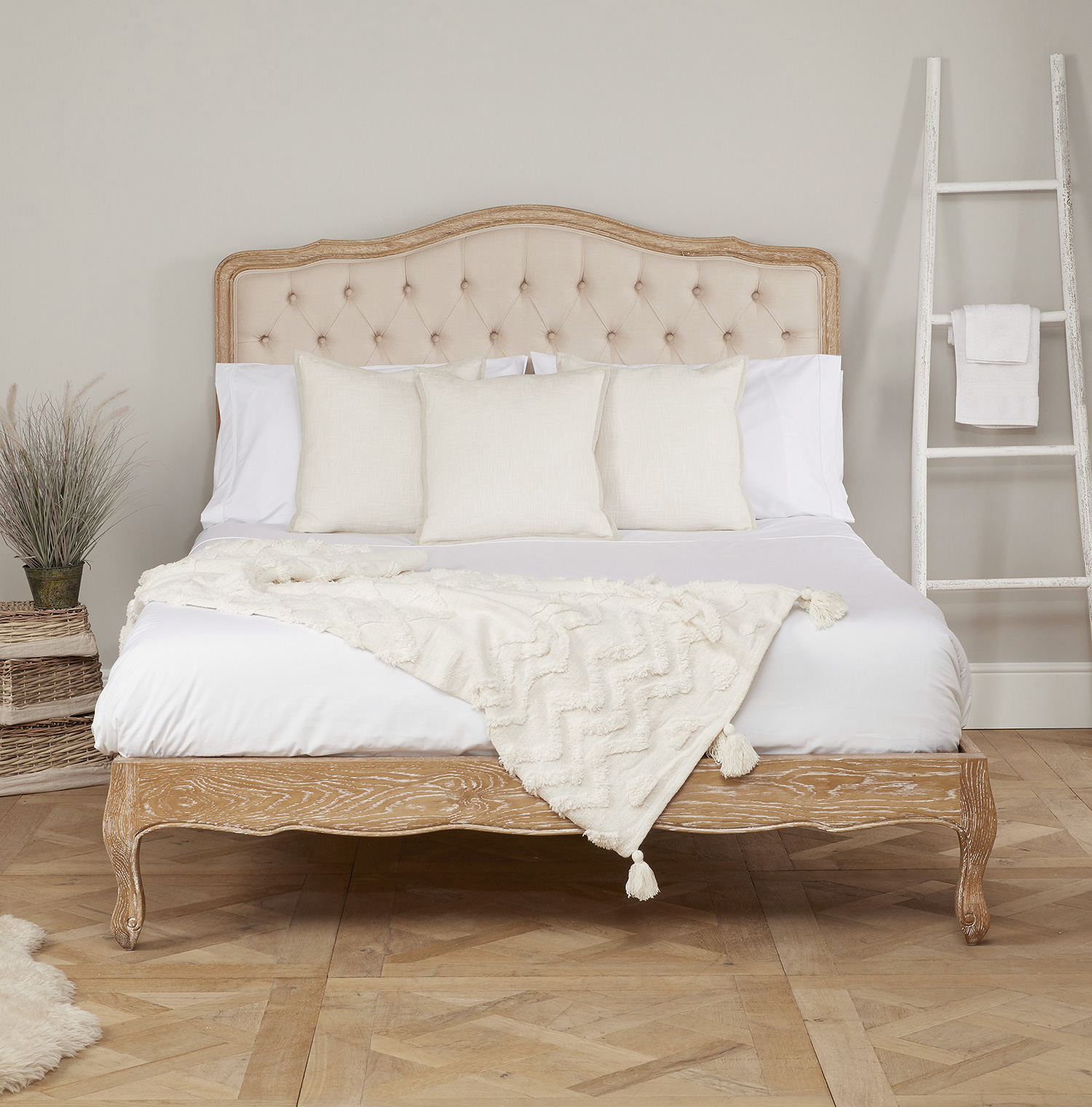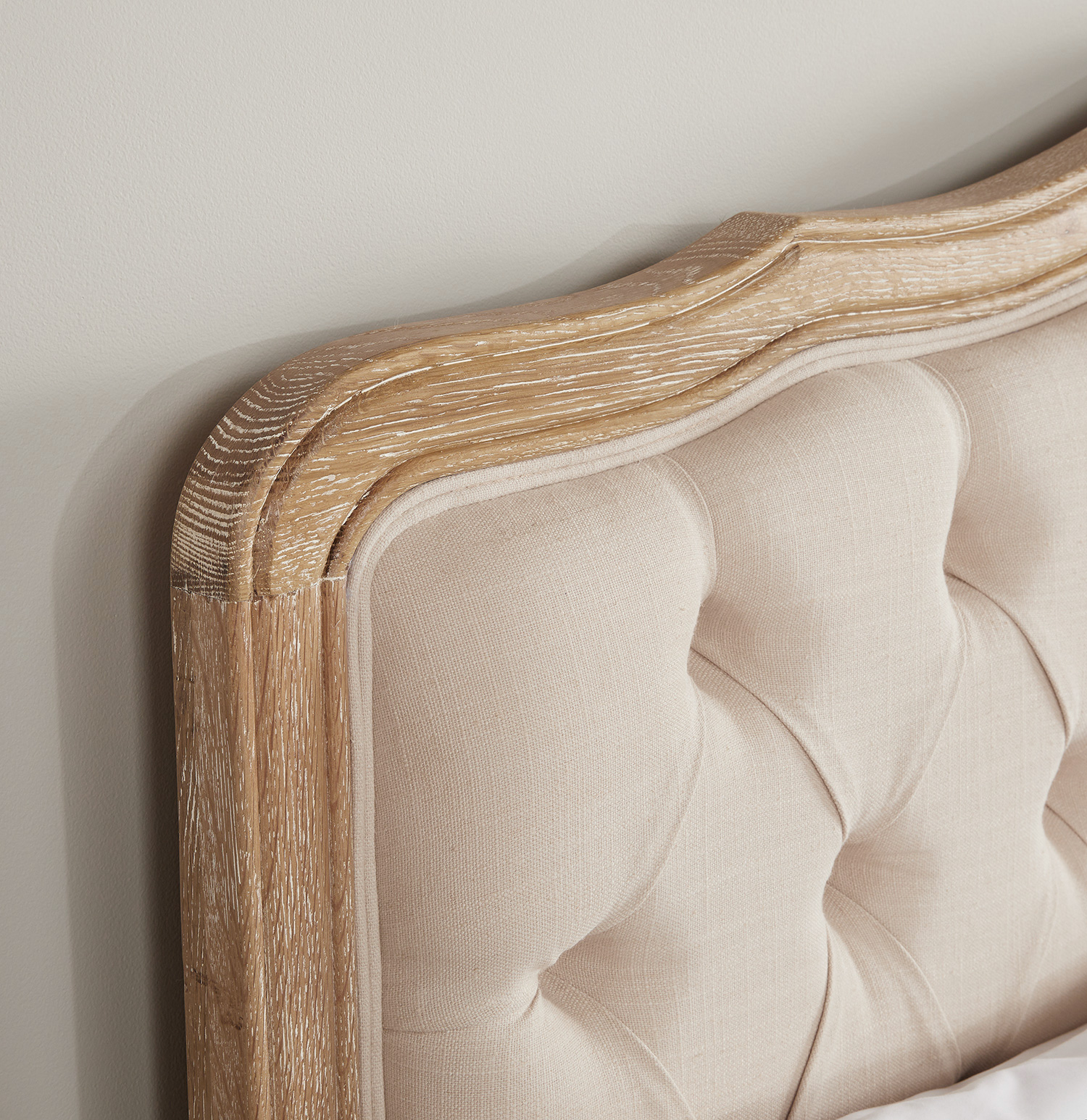 Eléa French Weathered Limed Oak Super King Size Bed with Upholstered Button Back Headboard