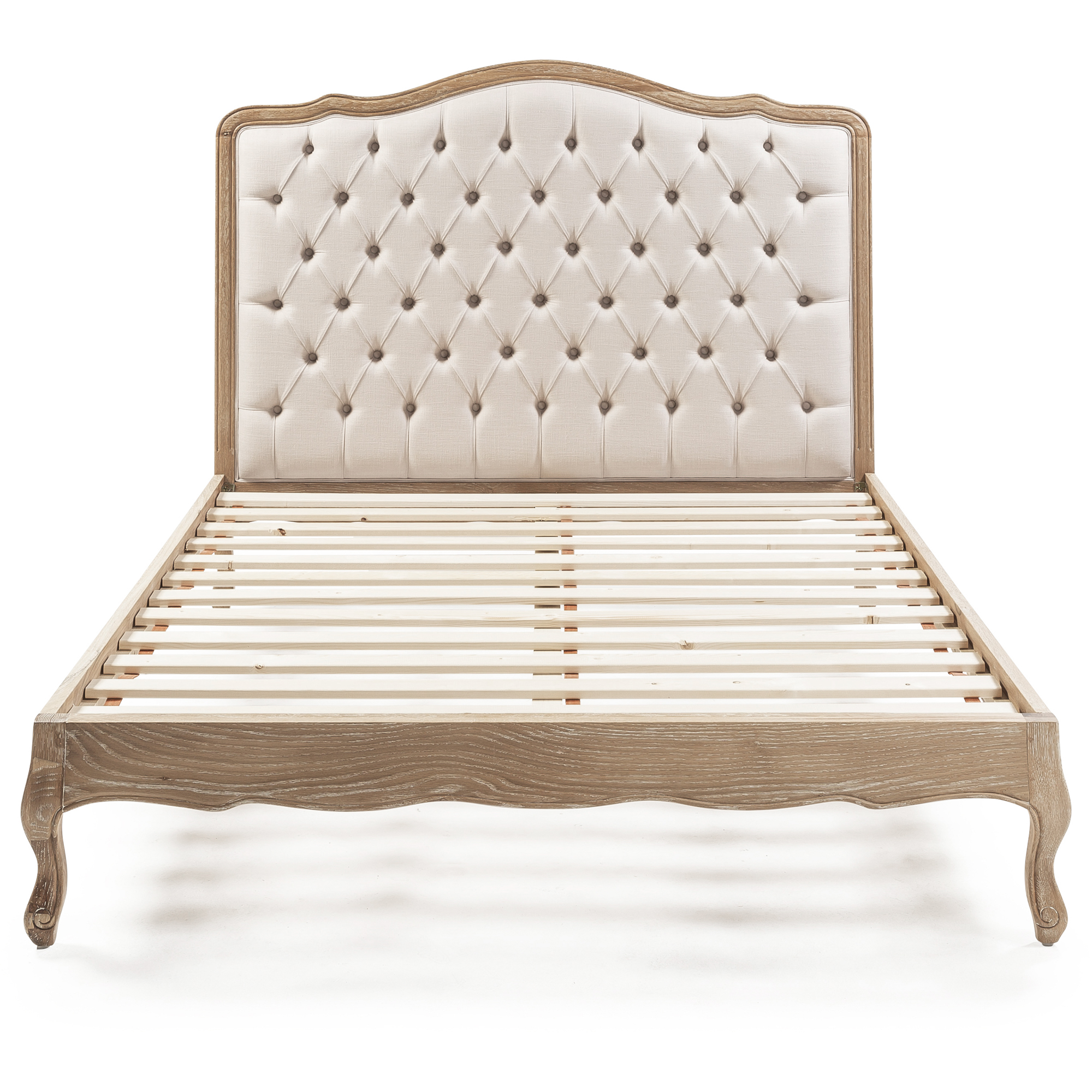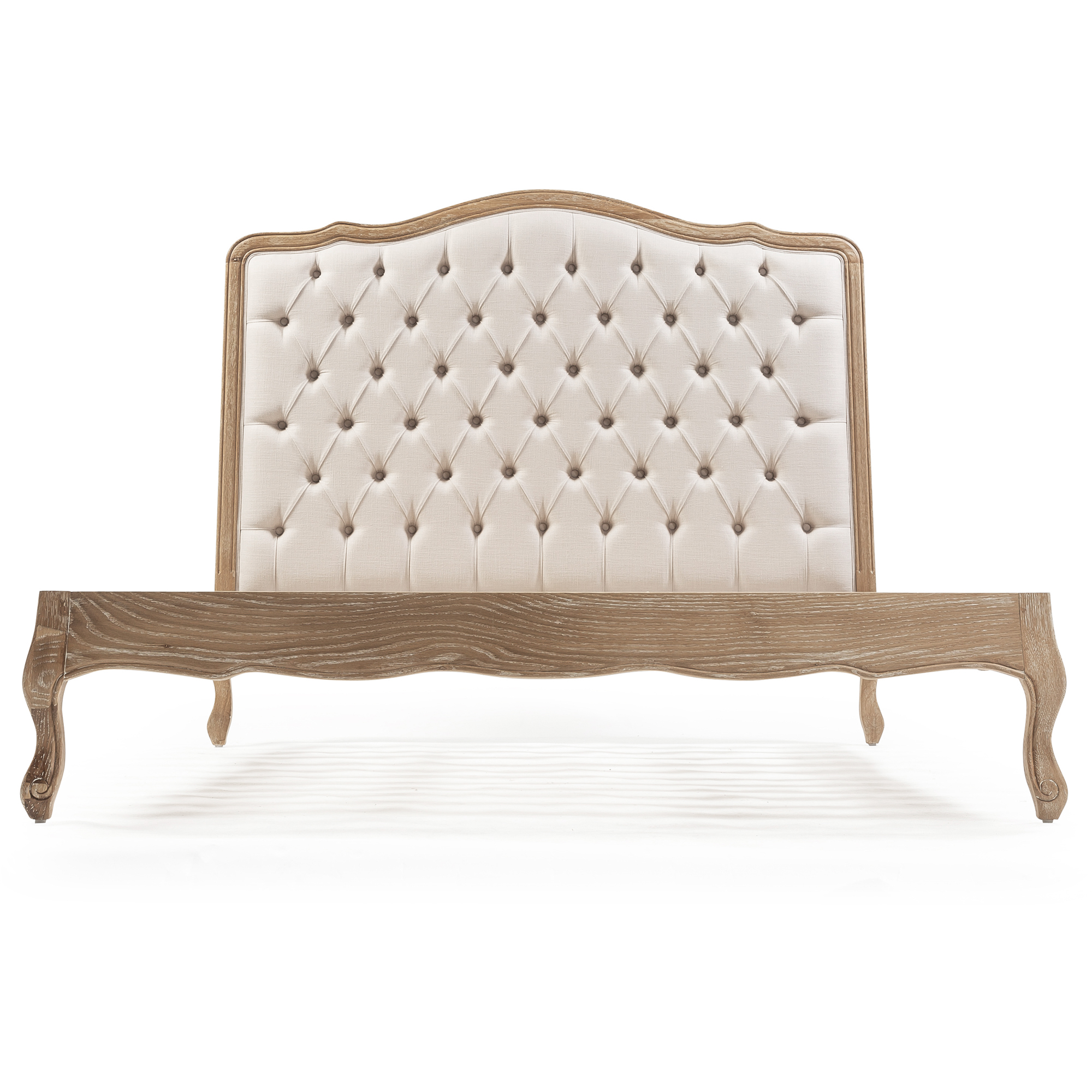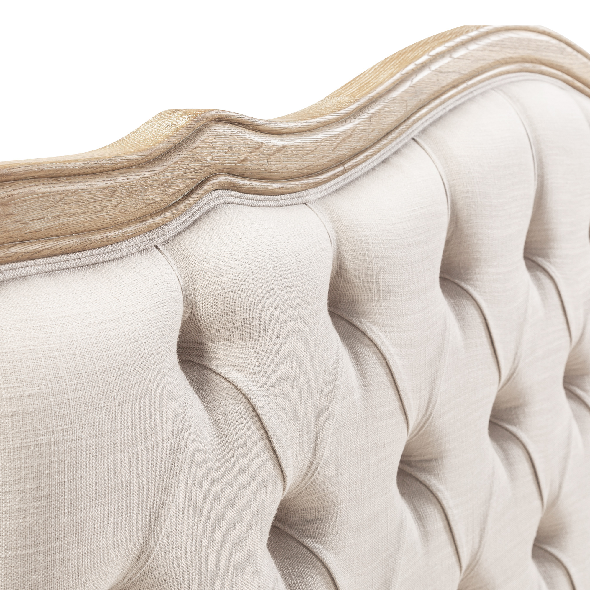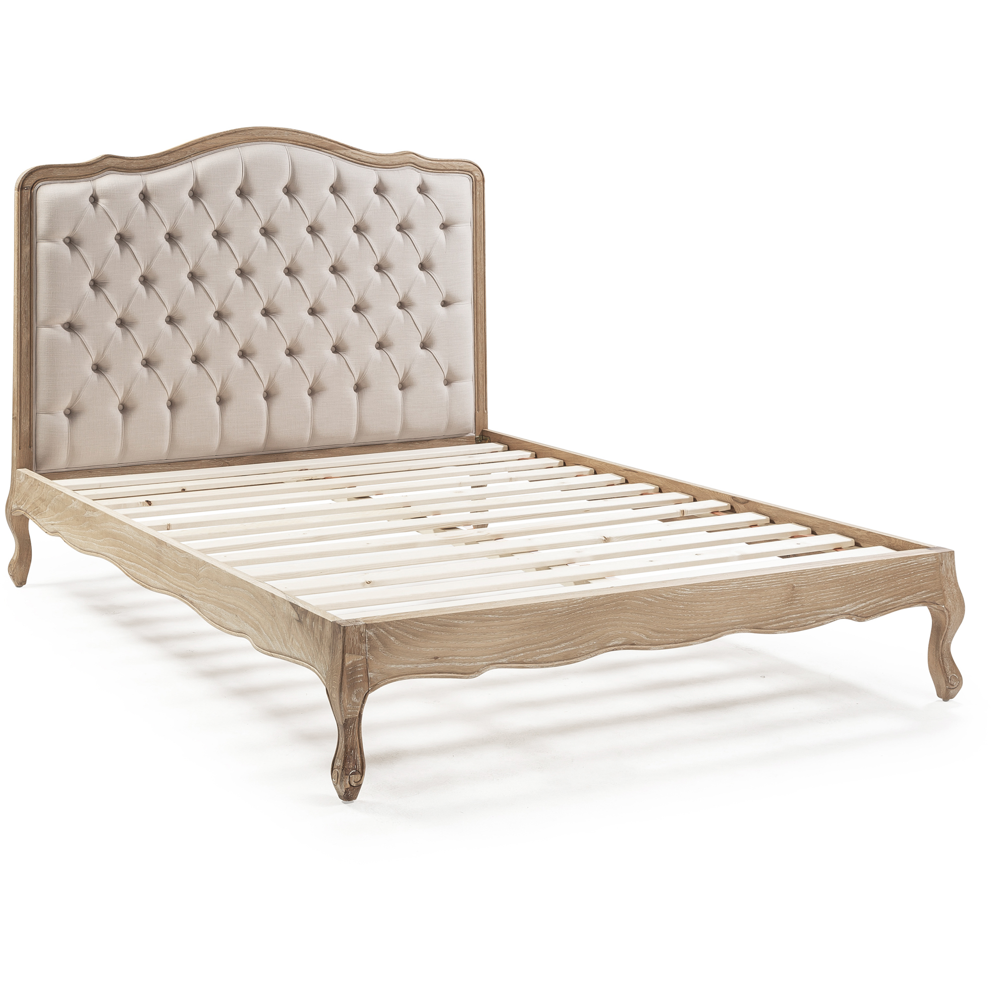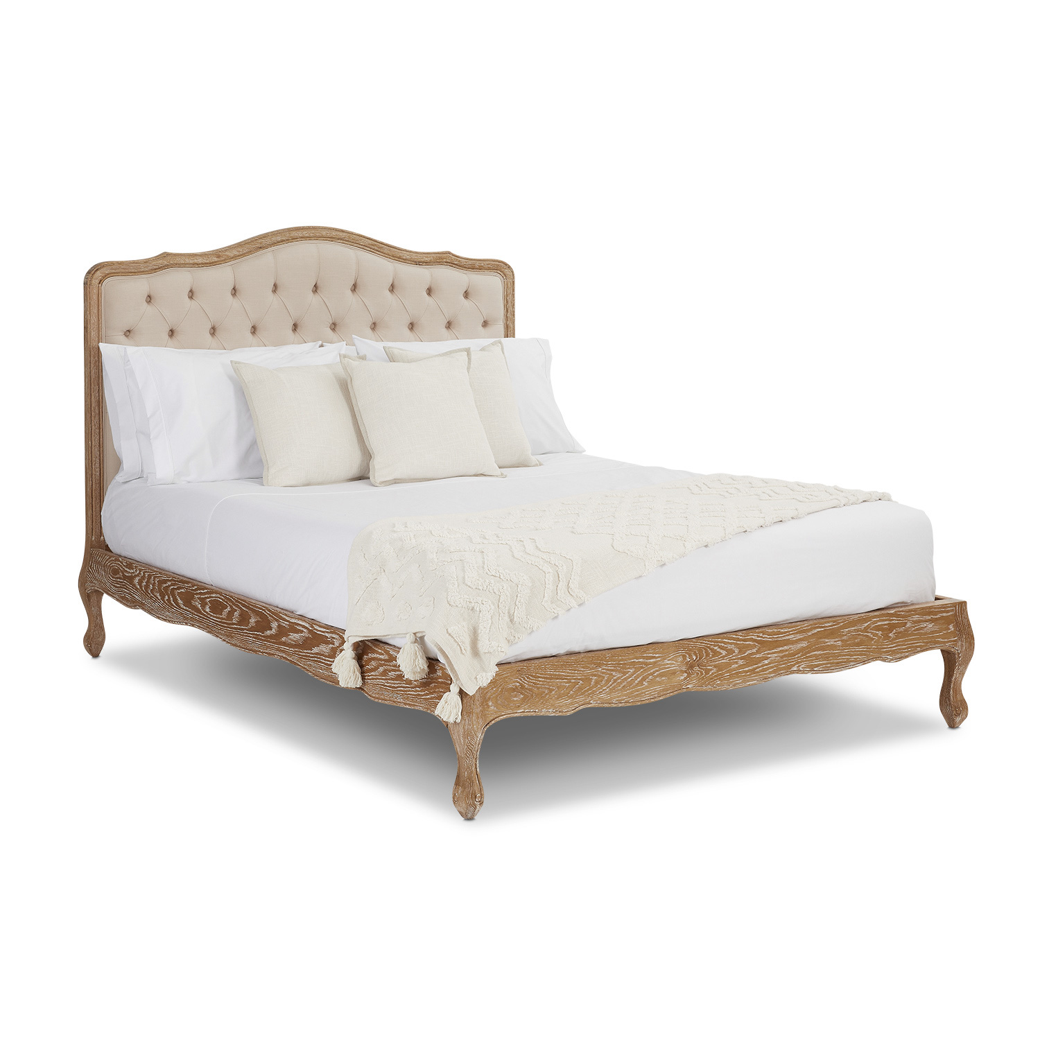 Eléa French Weathered Limed Oak Super King Size Bed with Upholstered Button Back Headboard