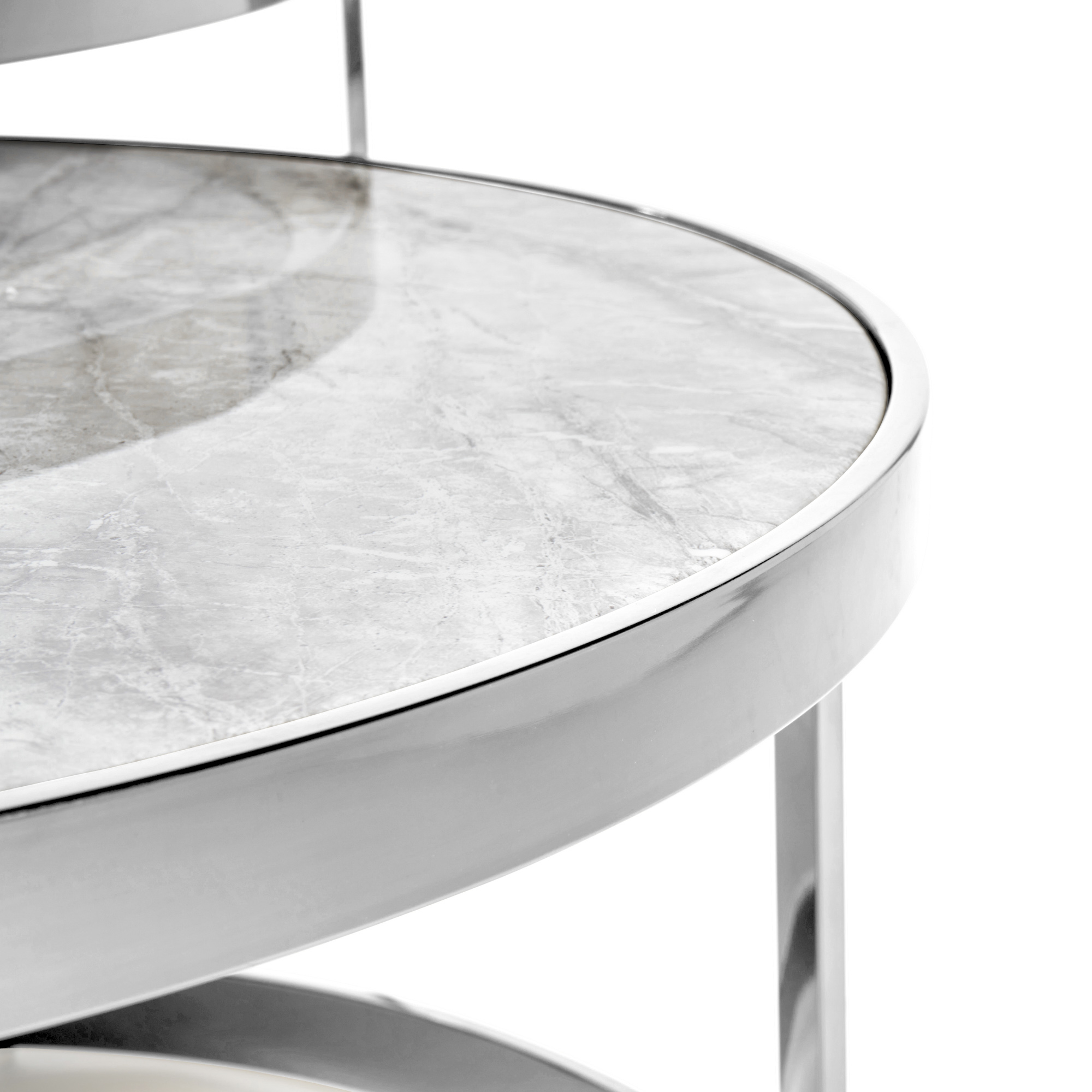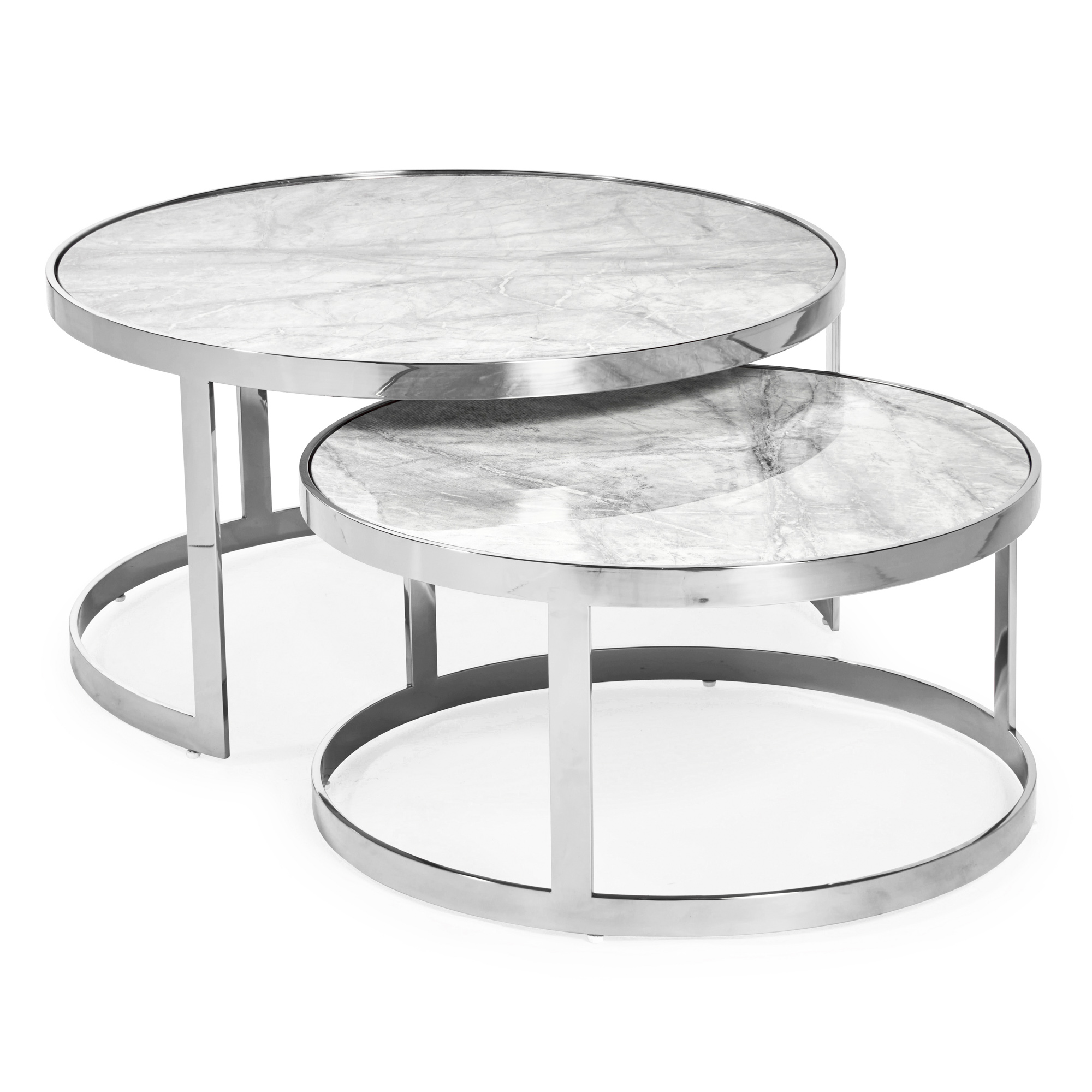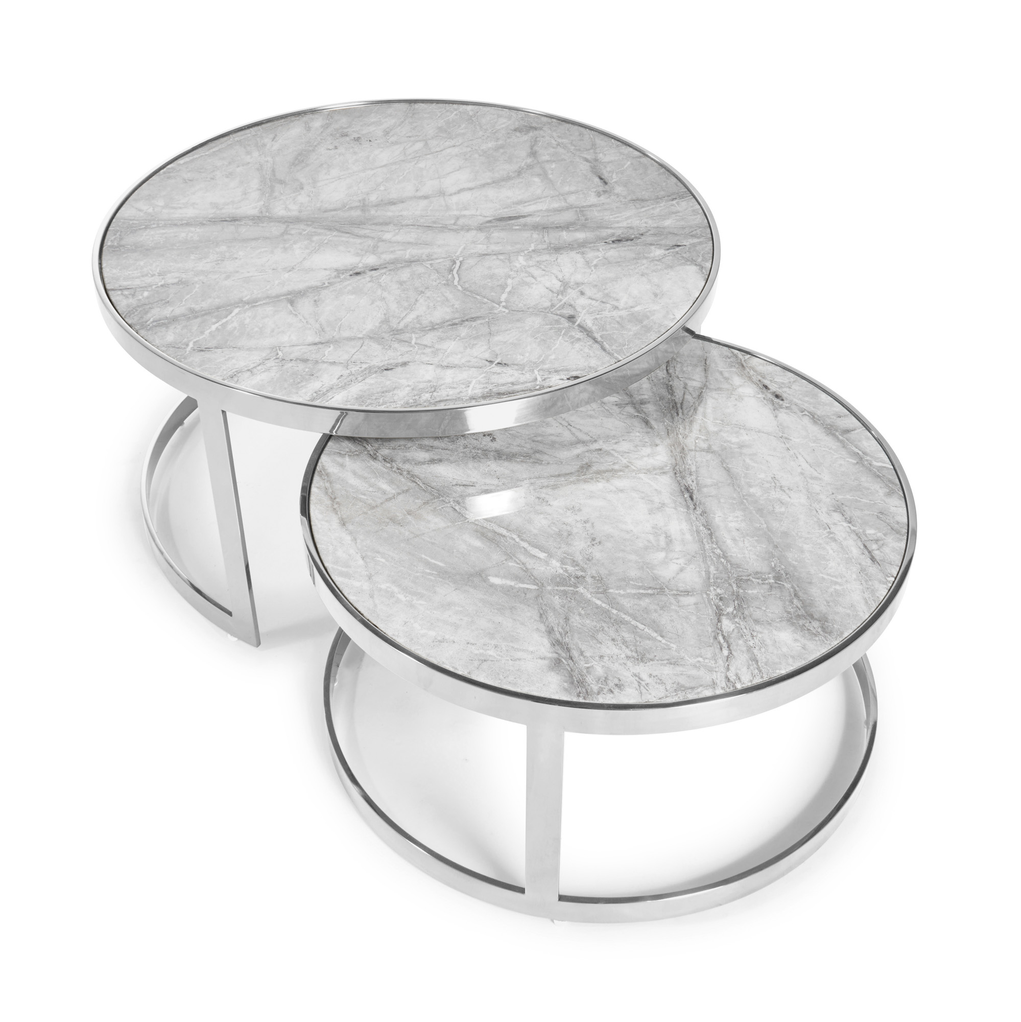 Florence Stainless Steel Framed Set of 2 Circular Coffee Nest Tables – Grey Marble