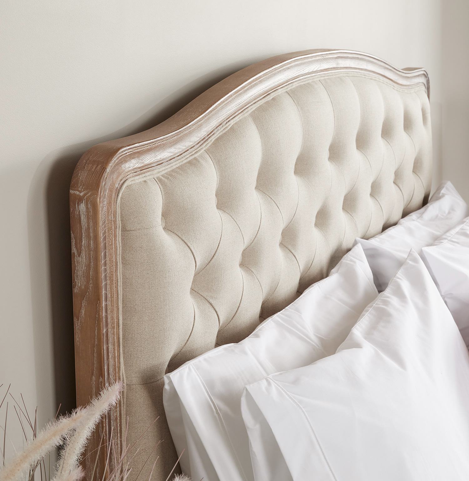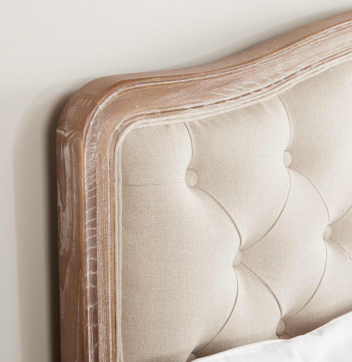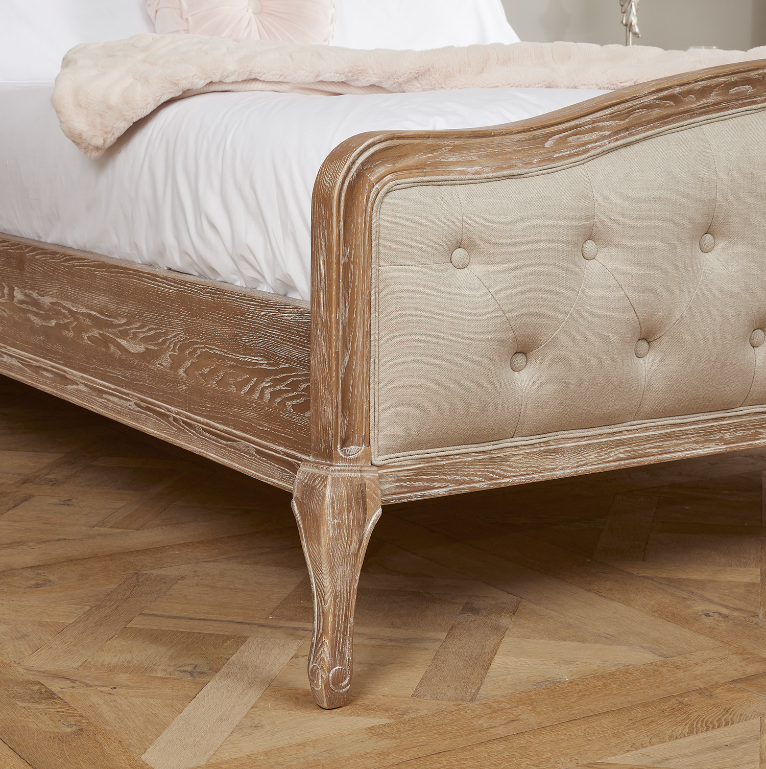 Arielle French Weathered Limed Ash Buttoned Upholstered High Foot Board Bed – King Size