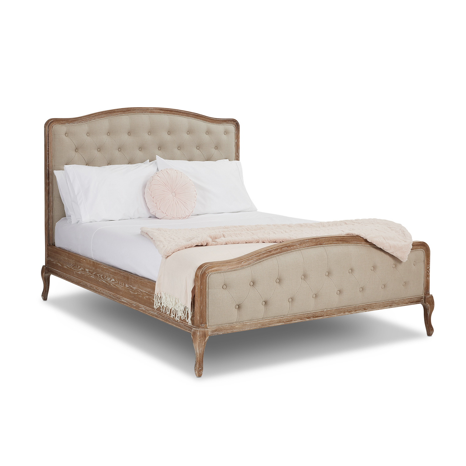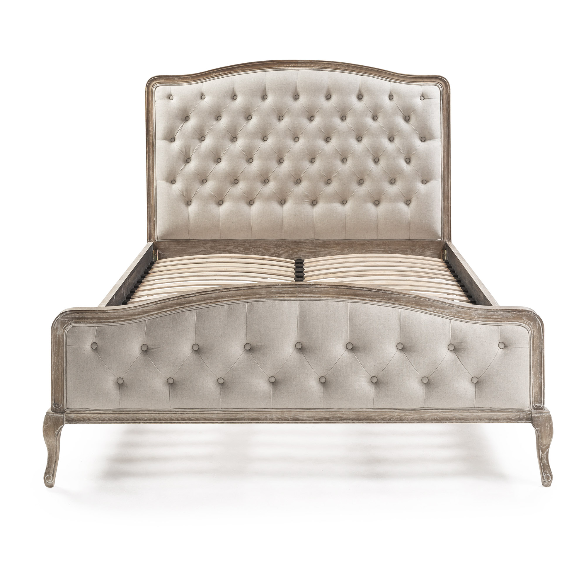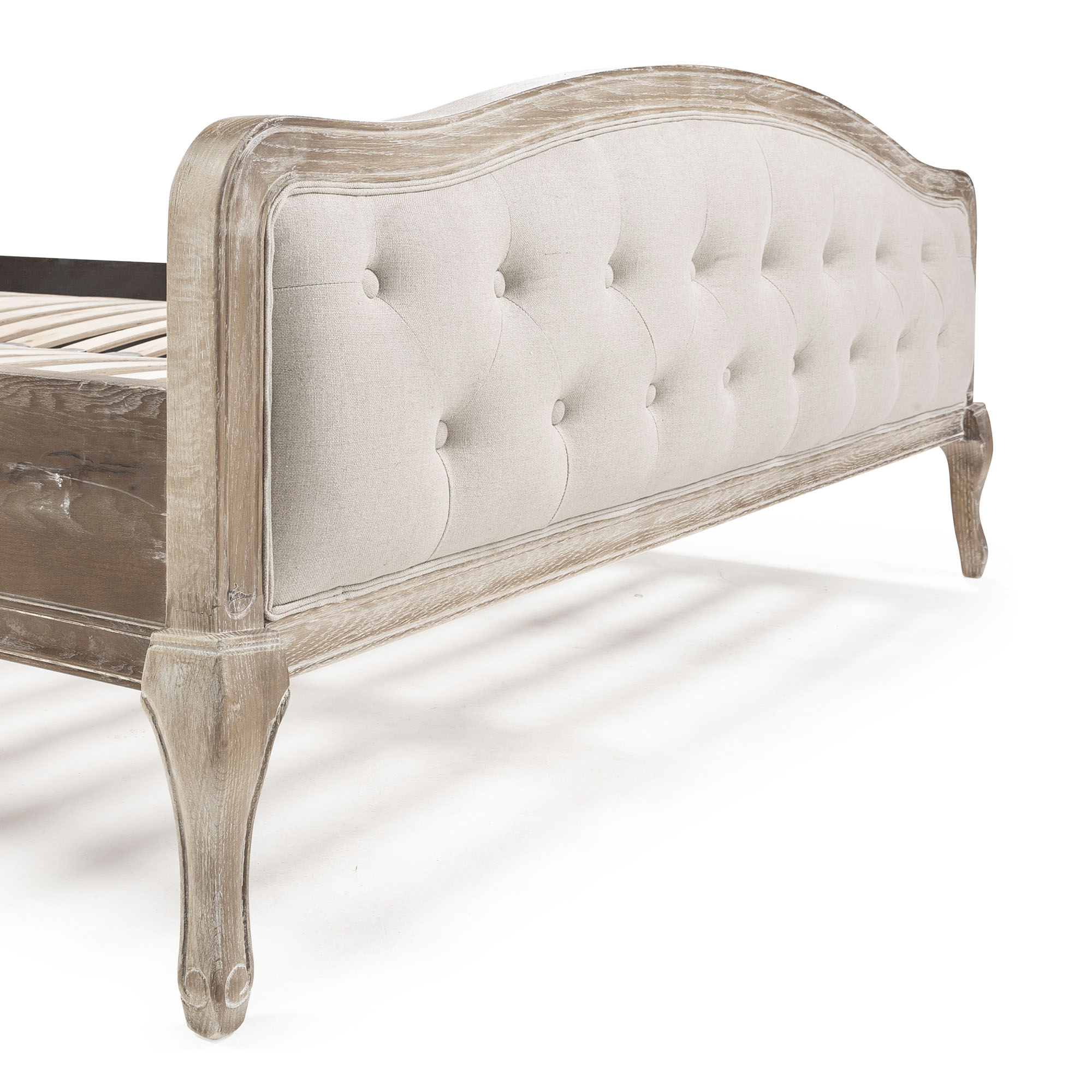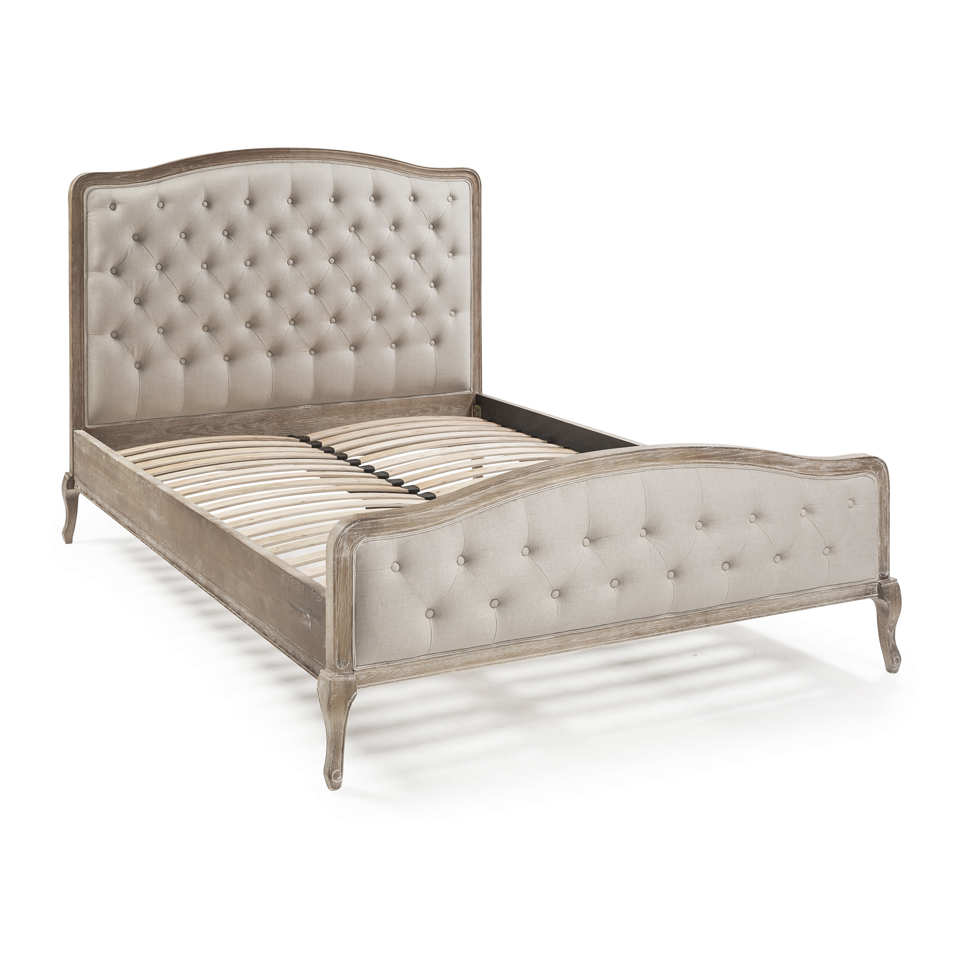 Arielle French Weathered Limed Ash Buttoned Upholstered High Foot Board Bed – King Size