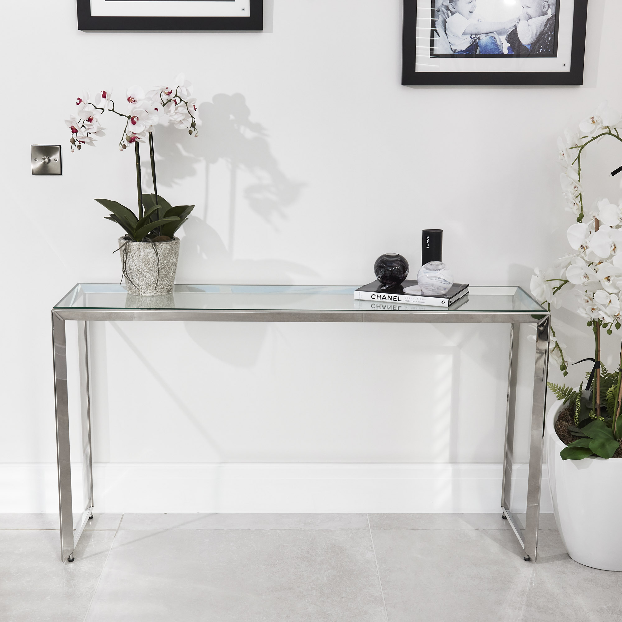 Add to the aesthetic of your home with this unimposing small glass console table from Grosvenor Furniture.