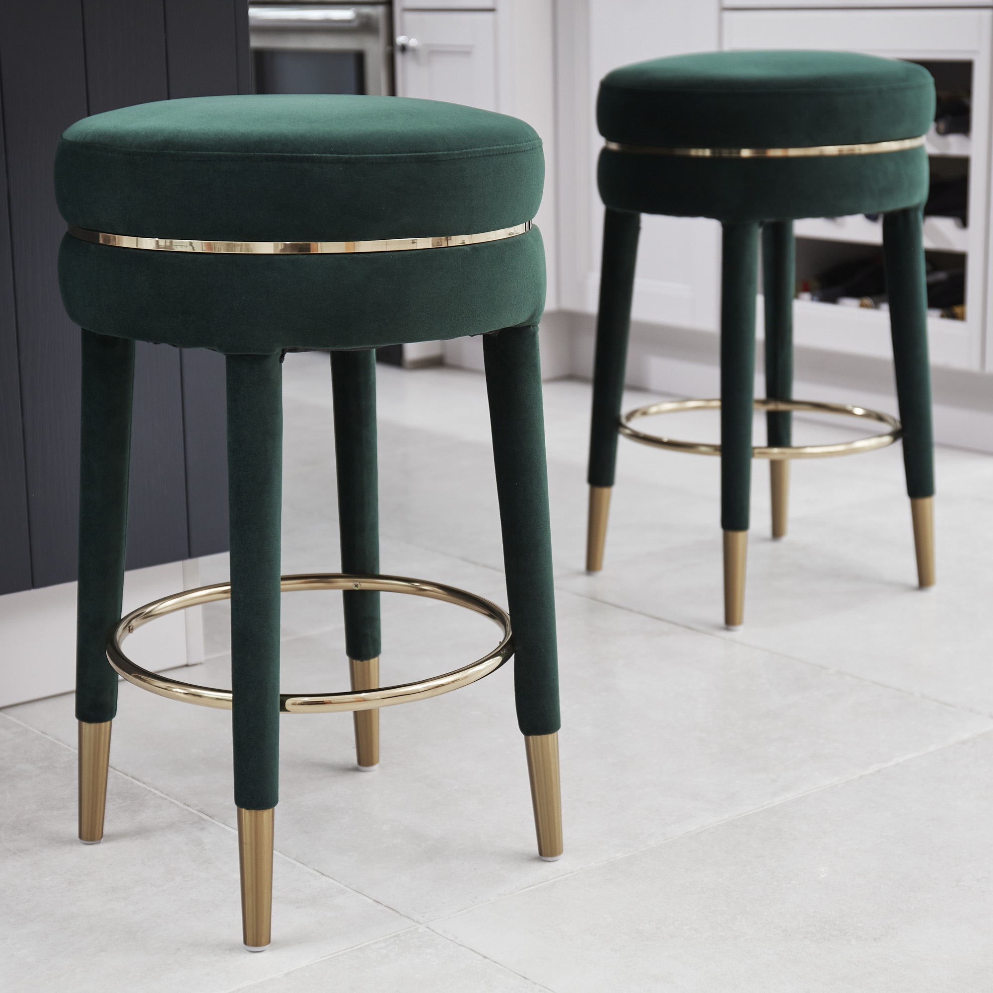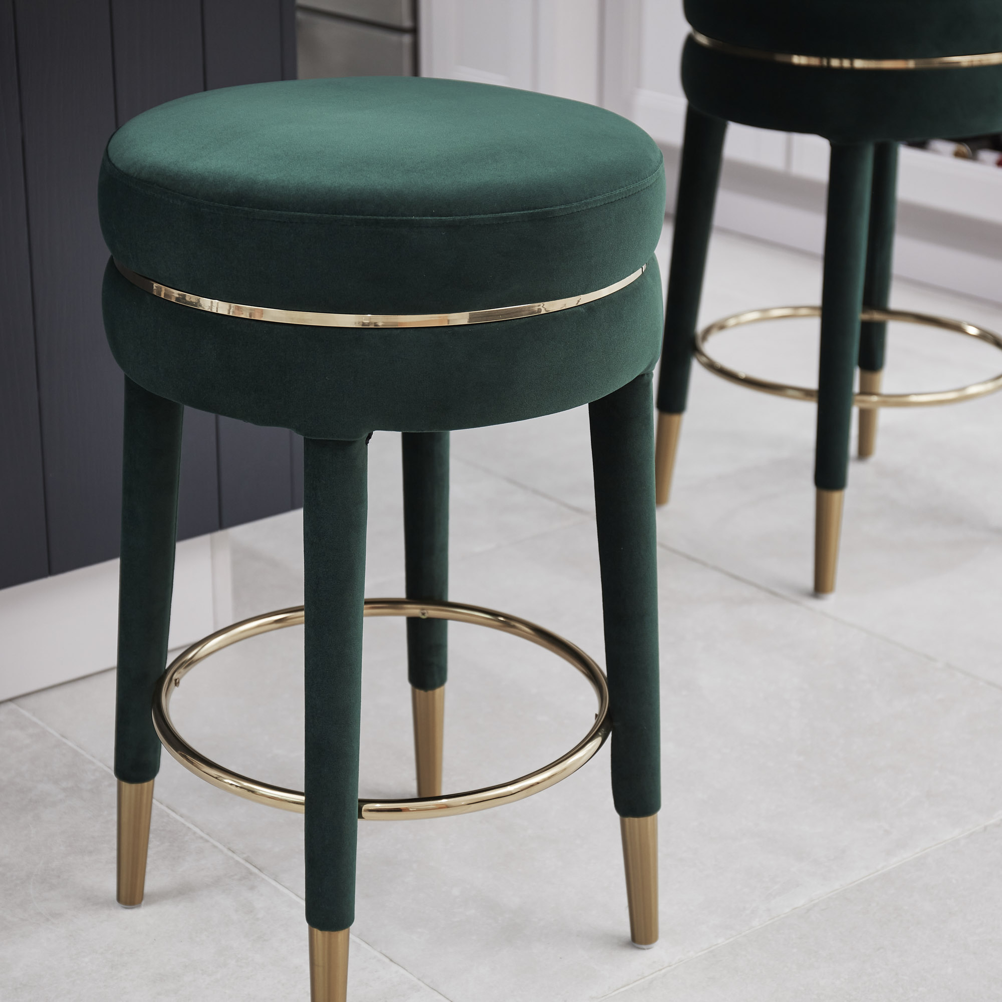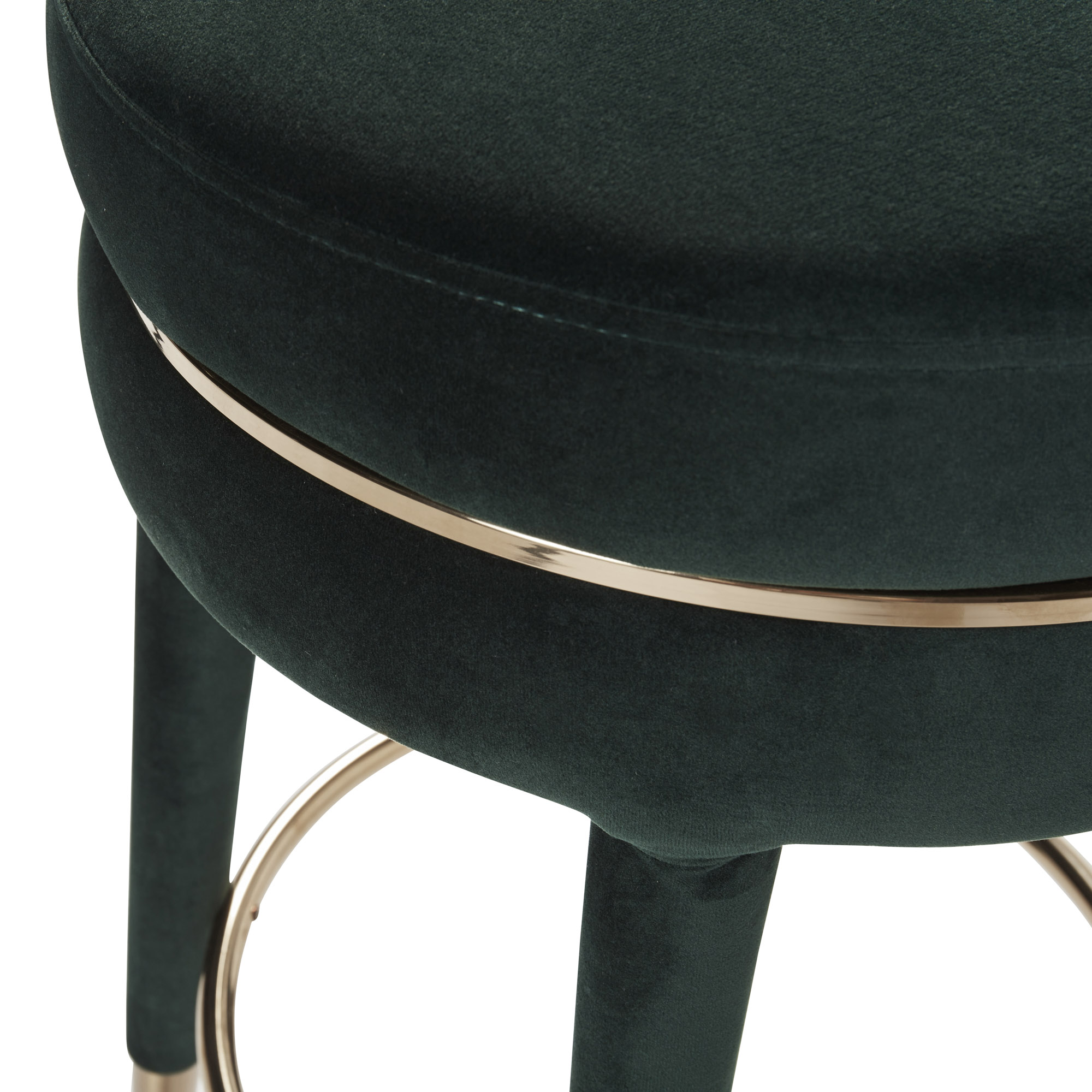 Isabel Dark Green Velvet Counter Bar Stool with Gold Trim Footrest