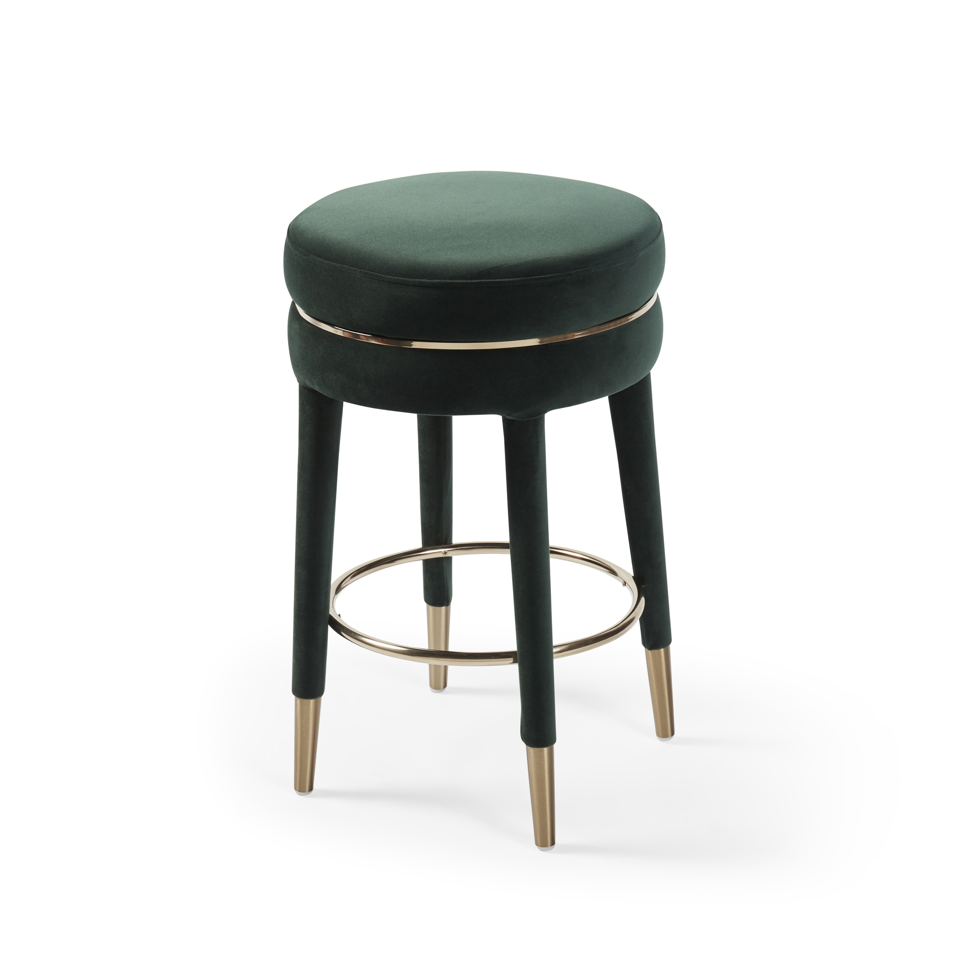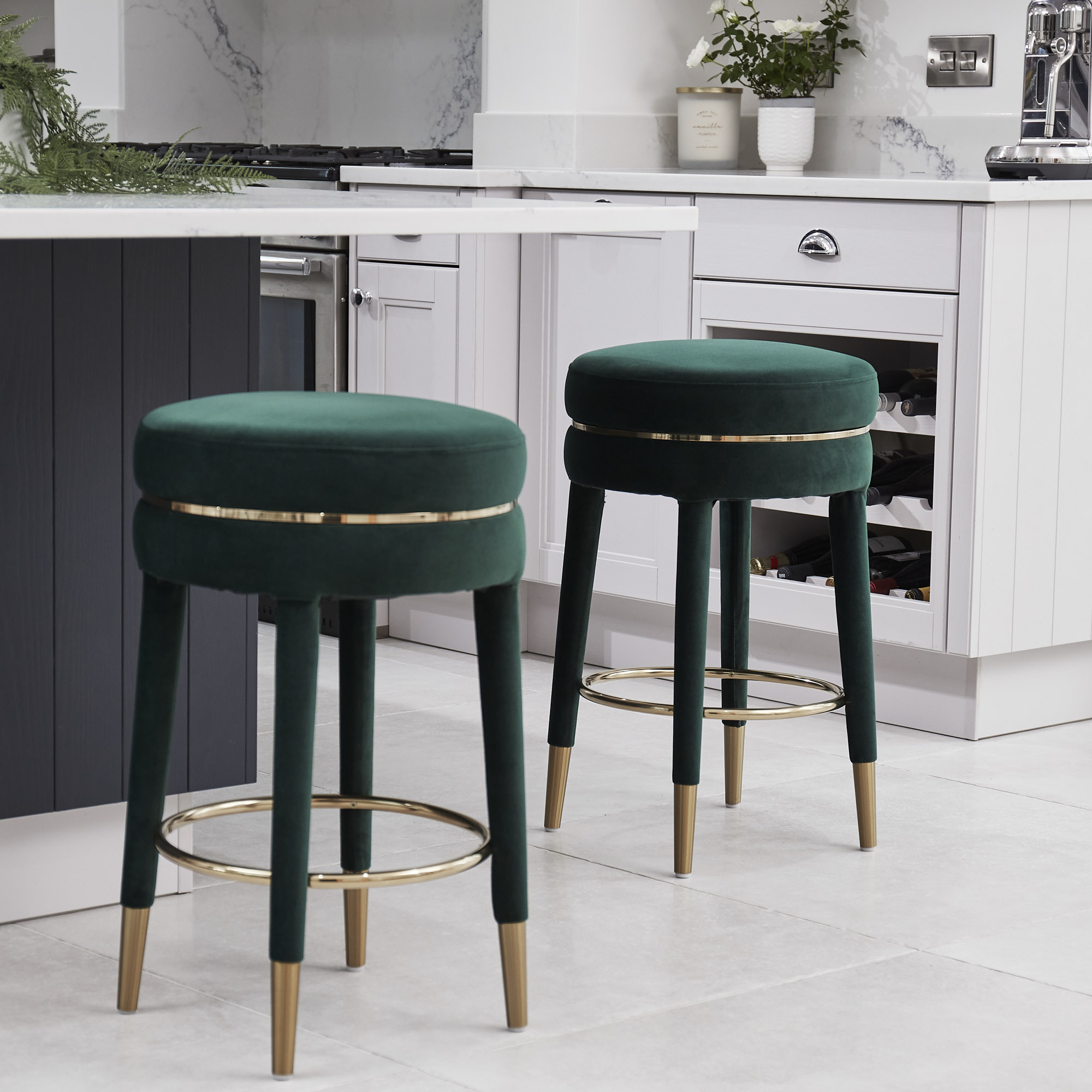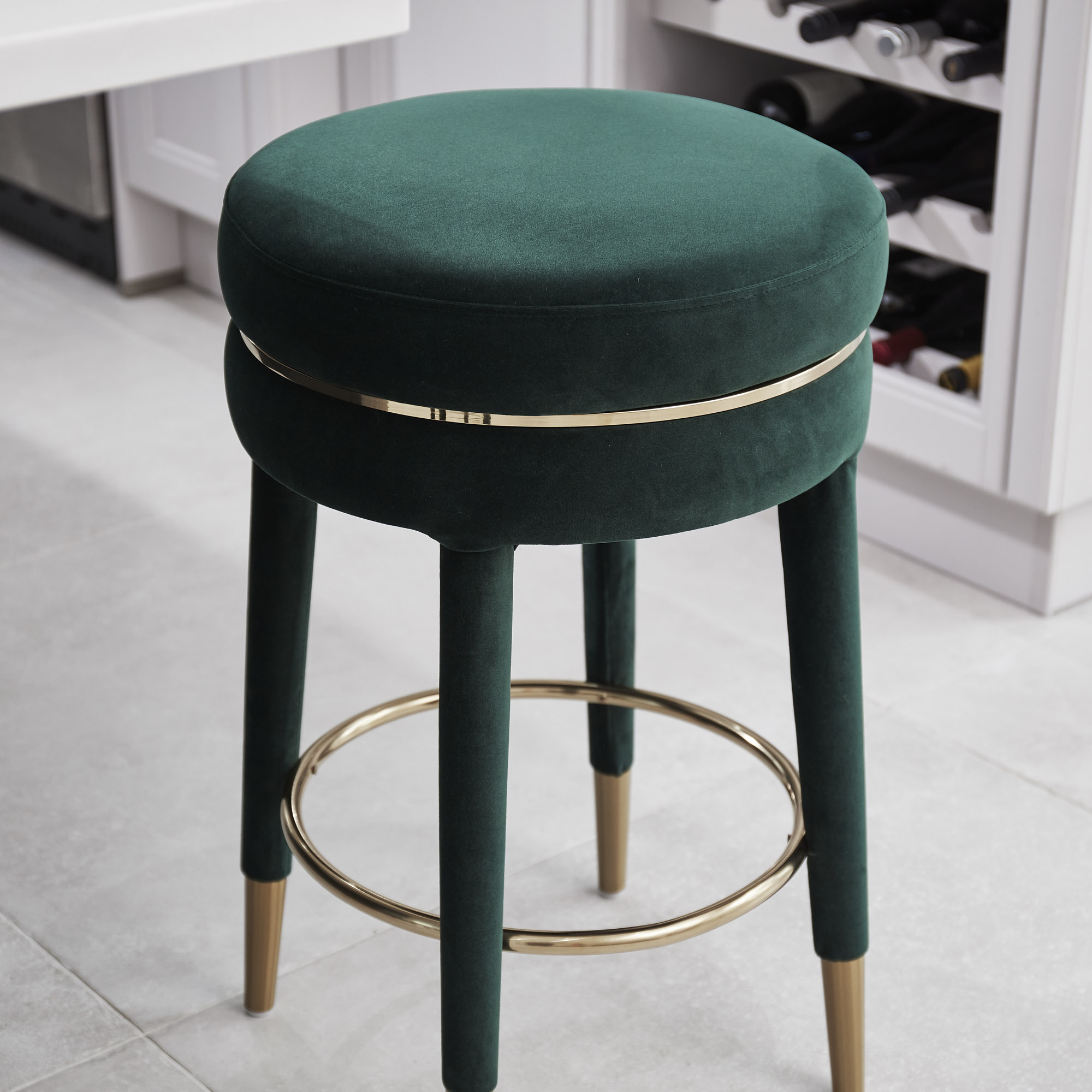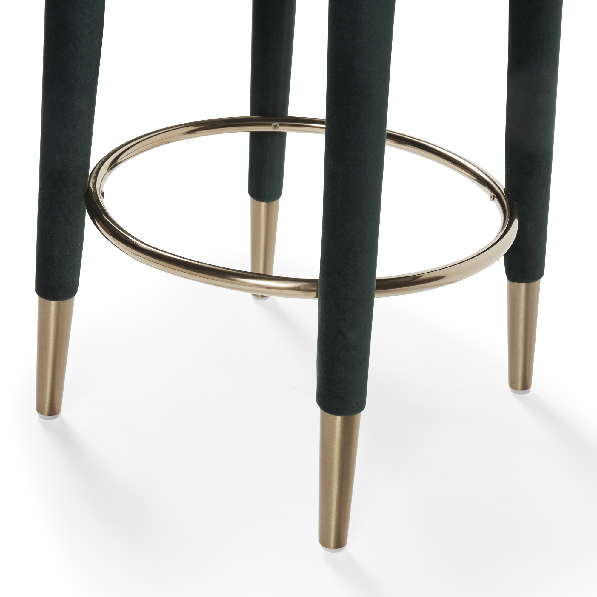 Isabel Dark Green Velvet Counter Bar Stool with Gold Trim Footrest
