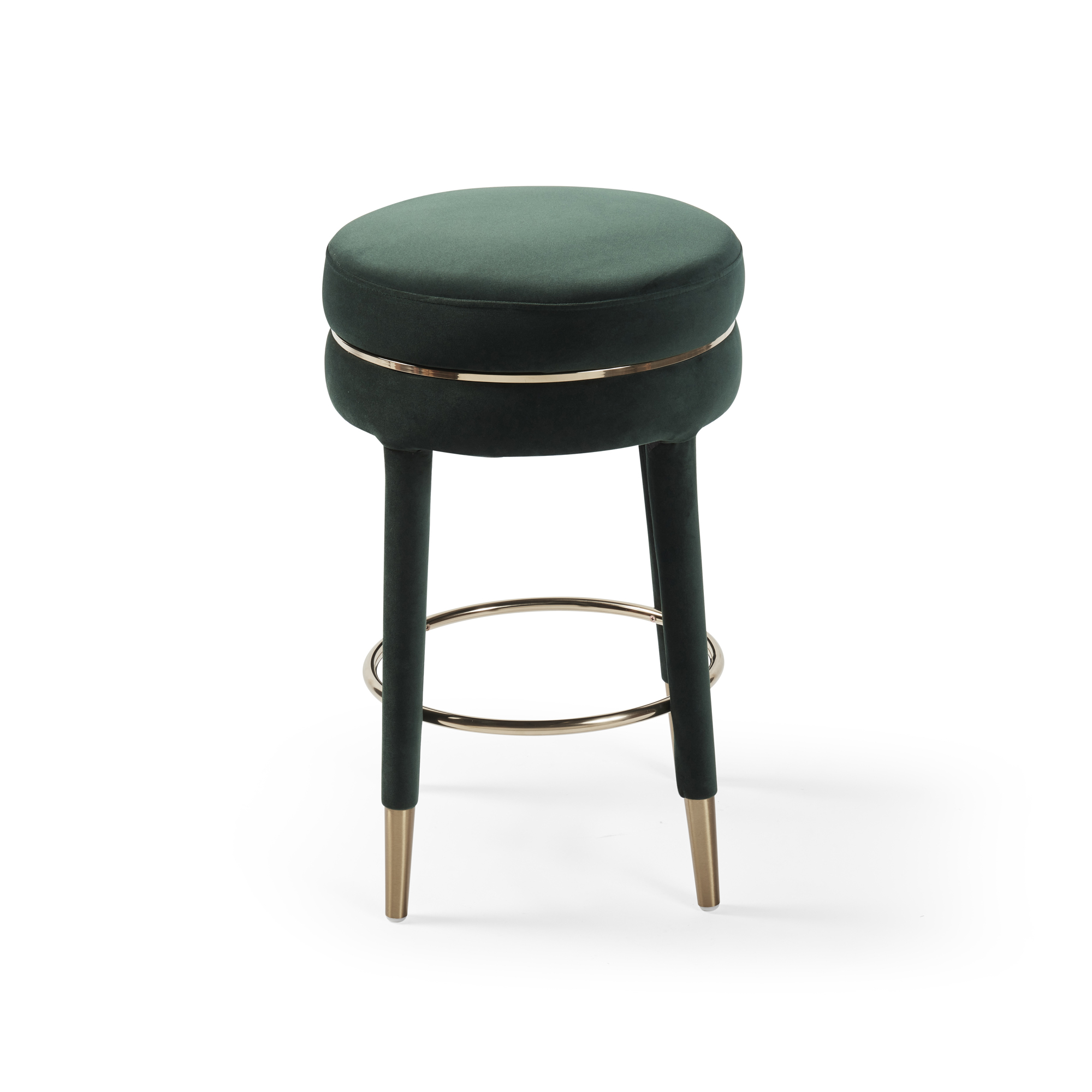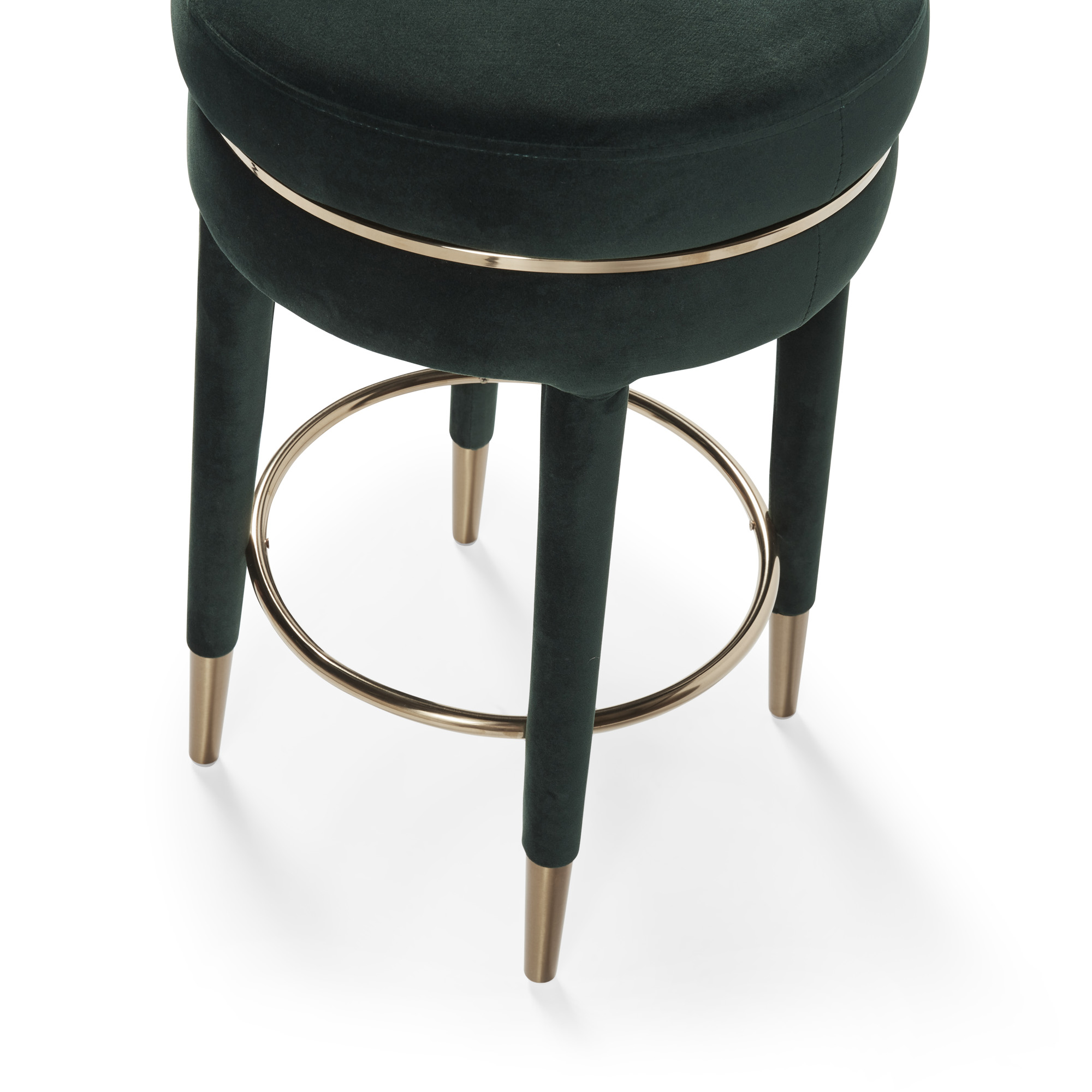 This Isabel circular velvet Bar stool is simply a sure eye catcher, show casing upholstered tapered four legs with a gold foot rest.