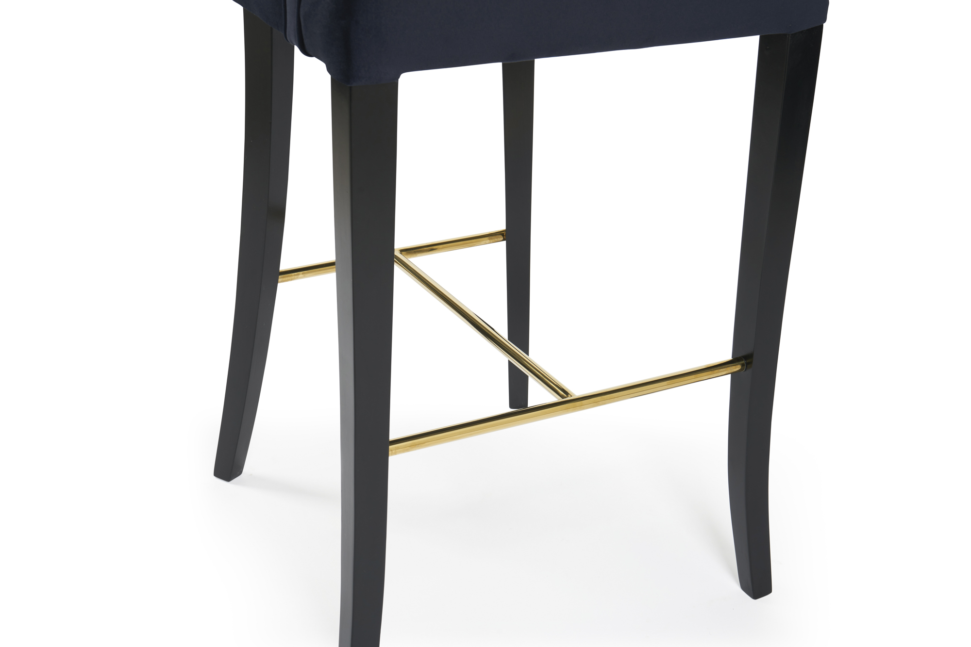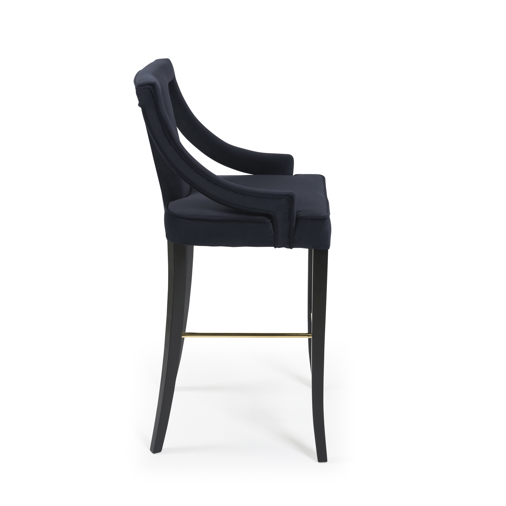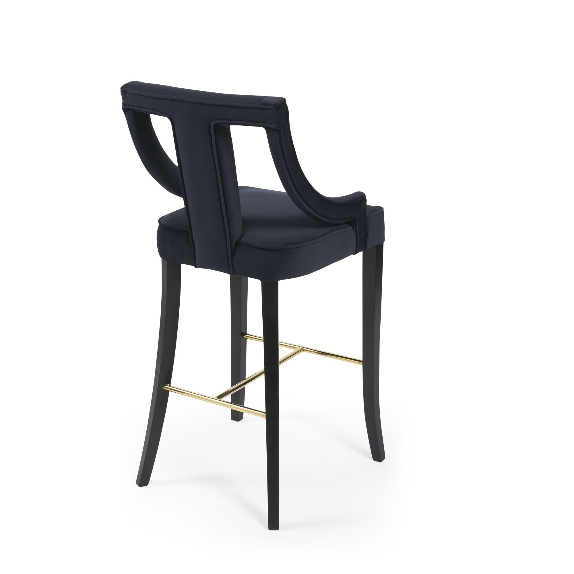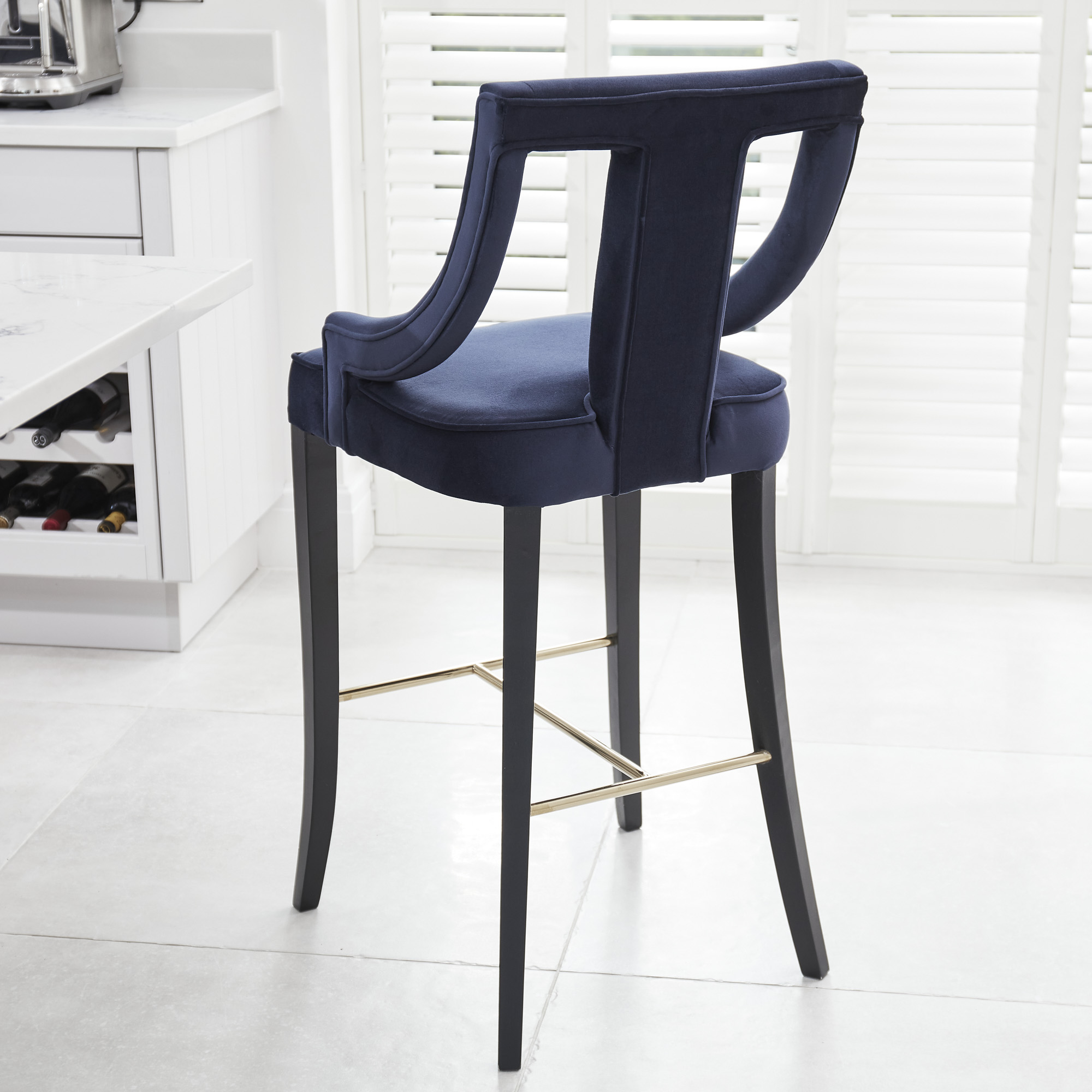 This Juliette velvet Bar stool is simply a stunning stool, show casing a intricate upholstered plush velvet seat pad with four solid legs with a gold foot rest.