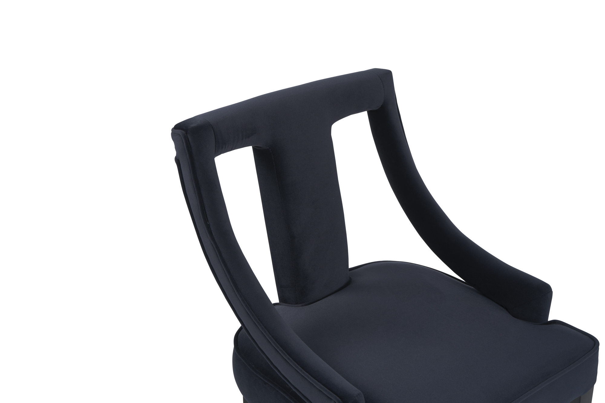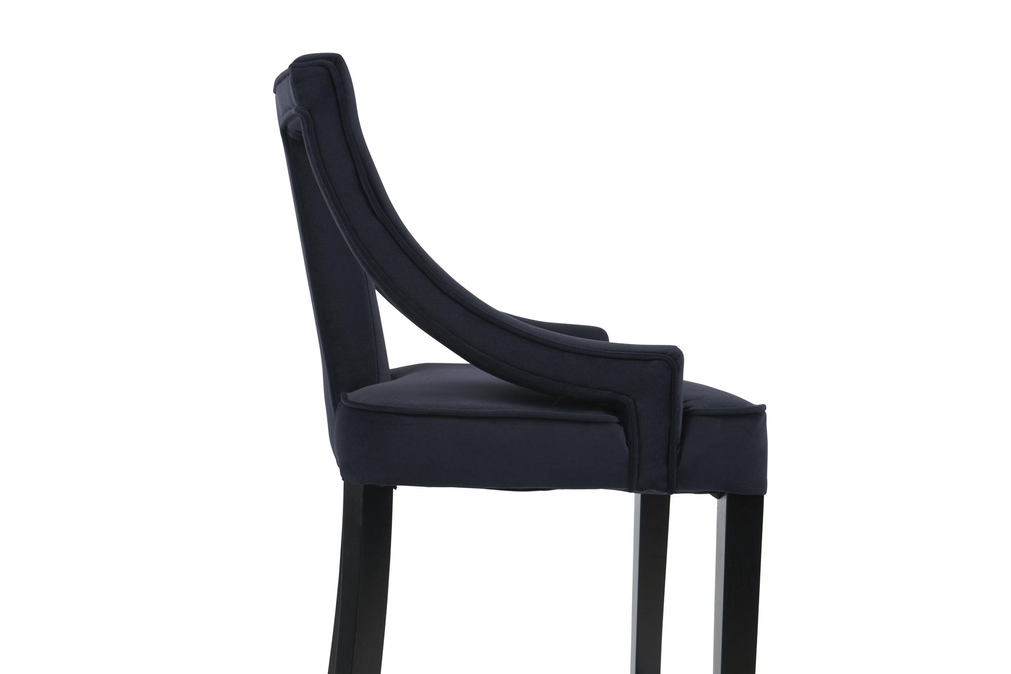 Our Juliette velvet stool, is simply elegant and is designed for comfort and shaped to entertain. Upholstered in a soft luxurious dark blue velvet.