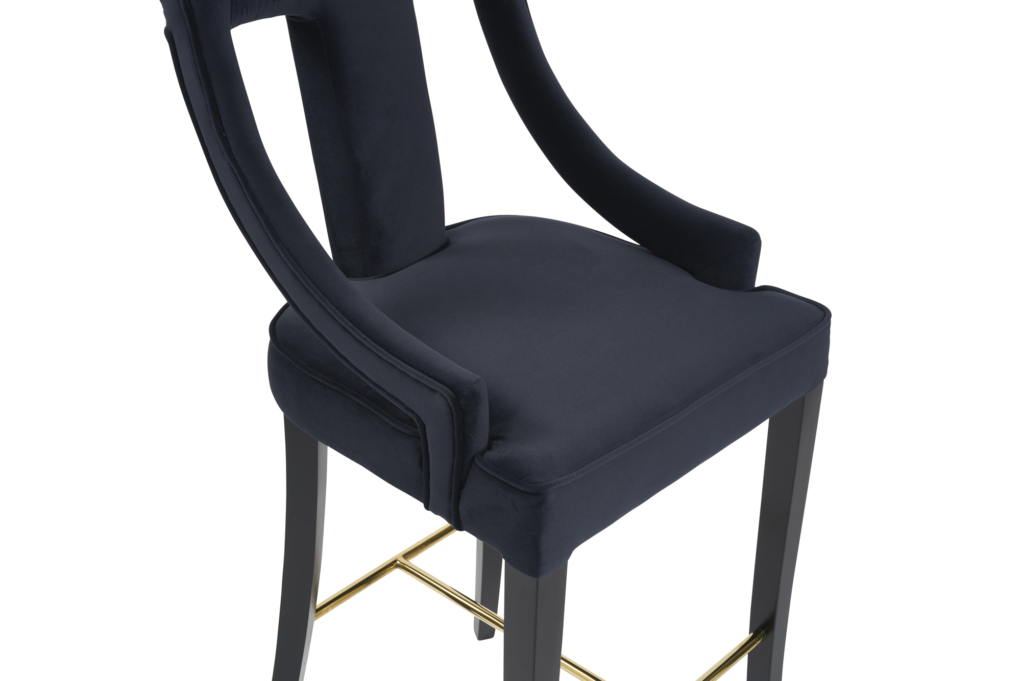 Juliette Dark Blue Velvet Bar Stool with Gold Trim Footrest