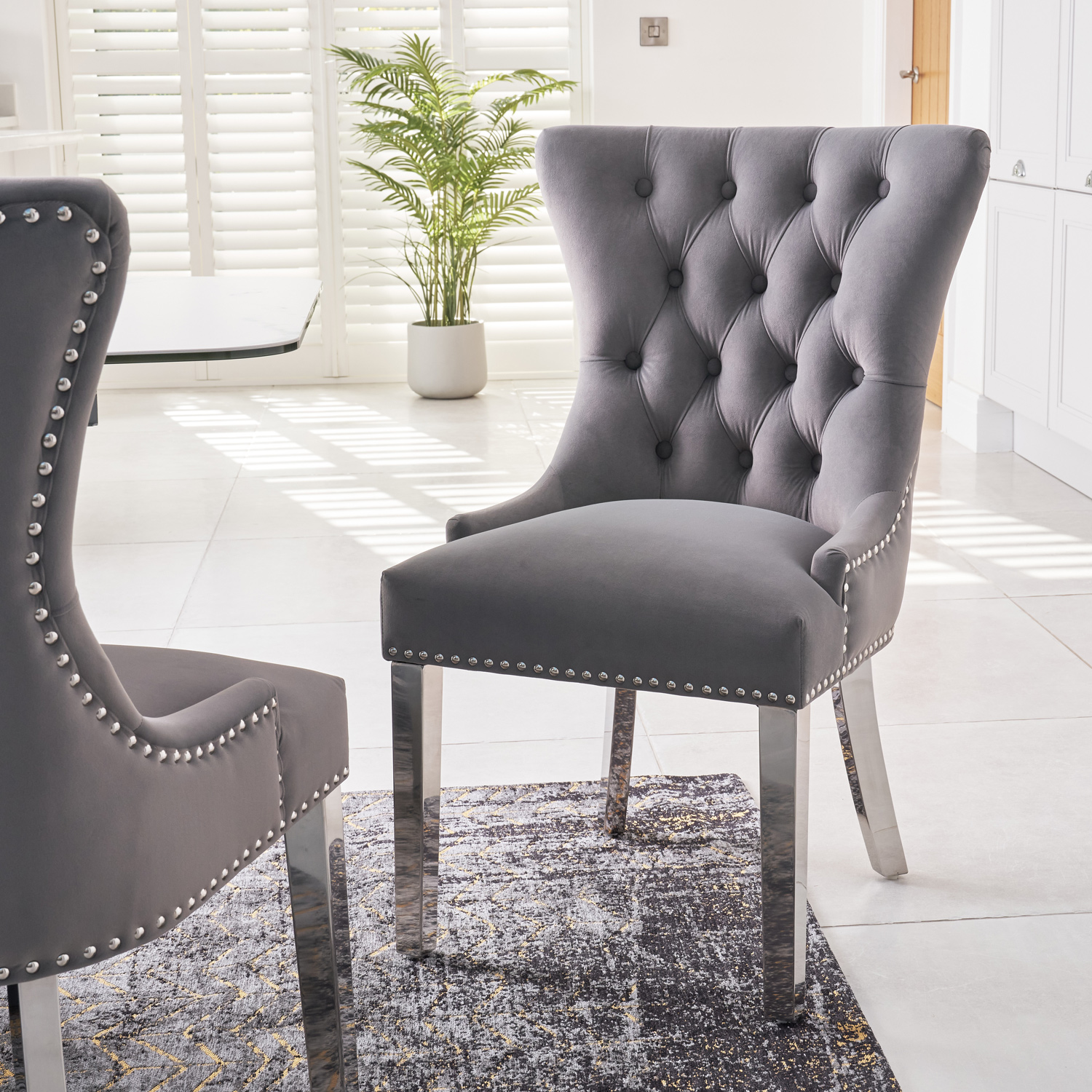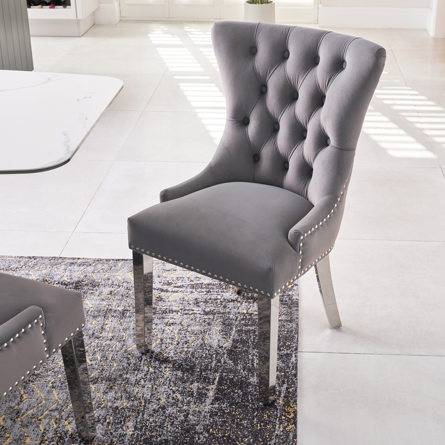 Knightsbridge Grey Brushed Velvet Dining Chair – Polished Steel Legs