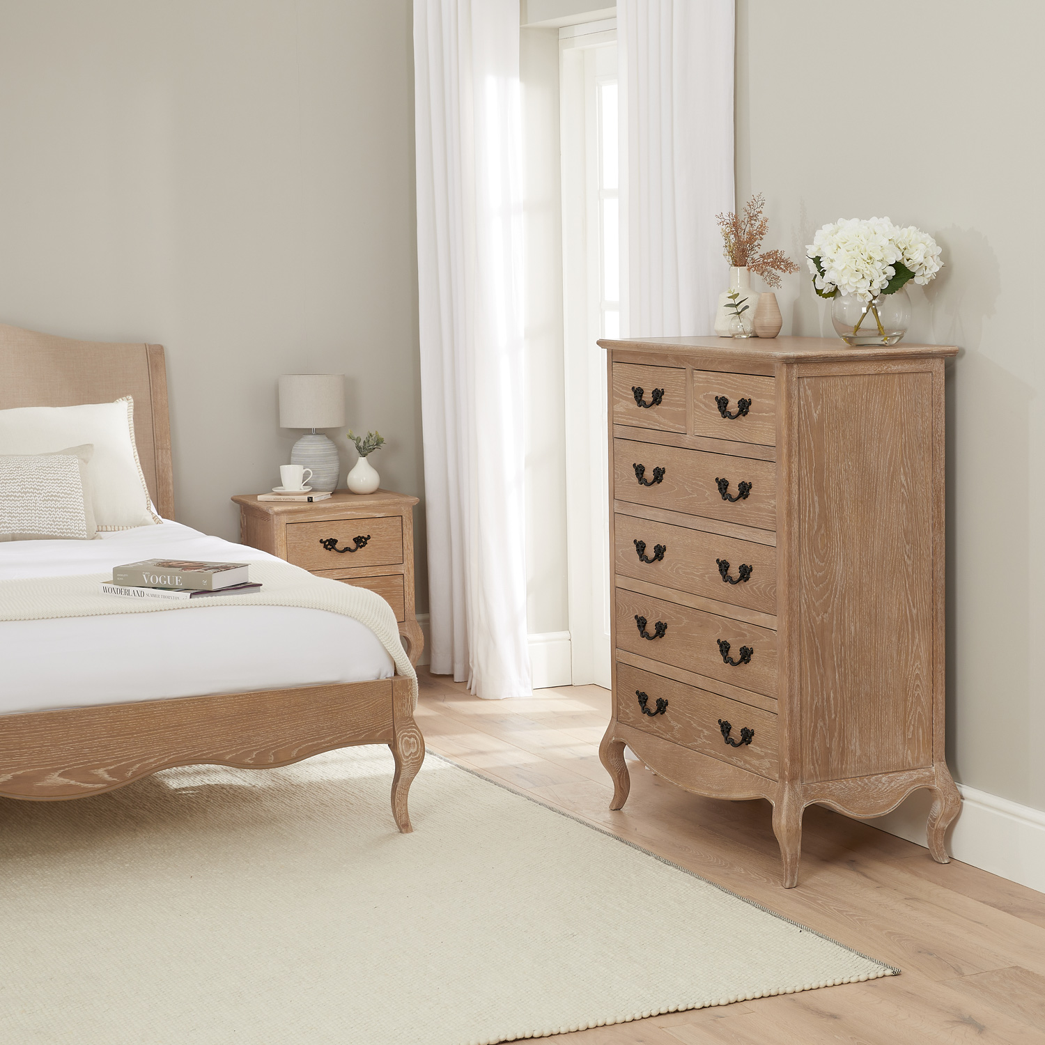 Lille French Limed Oak 6 Drawer Tall Chest
