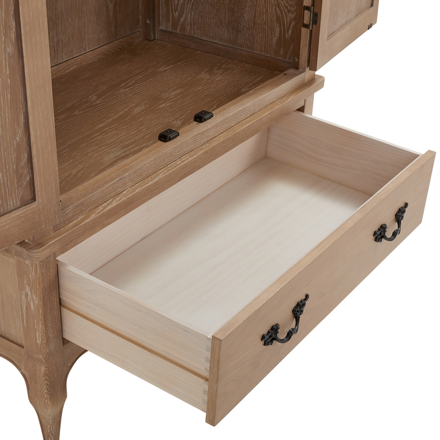 This beautifully designed French limed Oak Lille wardrobe is another fantastic edition to our new Lille French limed oak bedroom collection. The wardrobe features two doors sitting above a large drawer below having solid black satin painted French style carved handles. This wardrobe base sits above four cabriole carved legs.