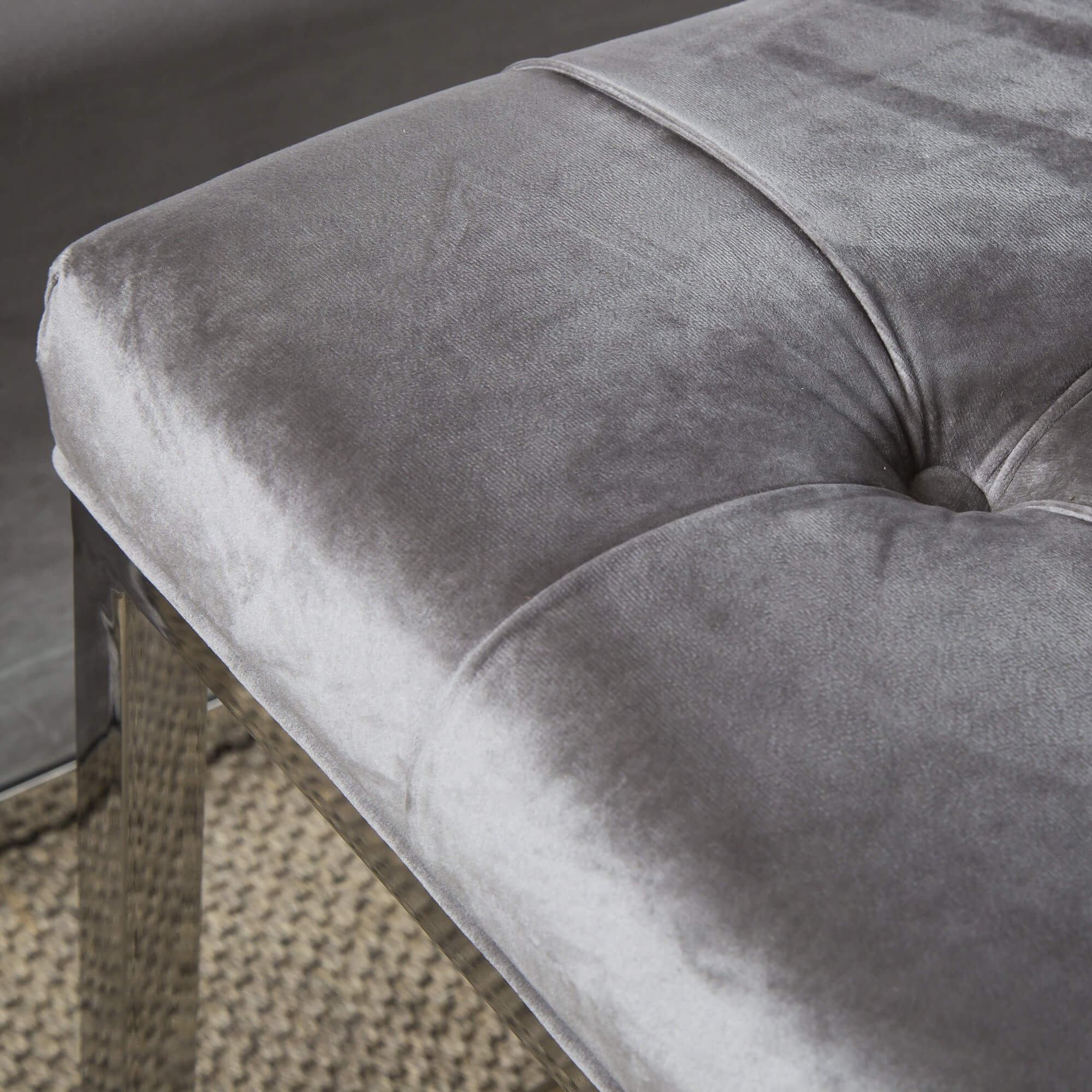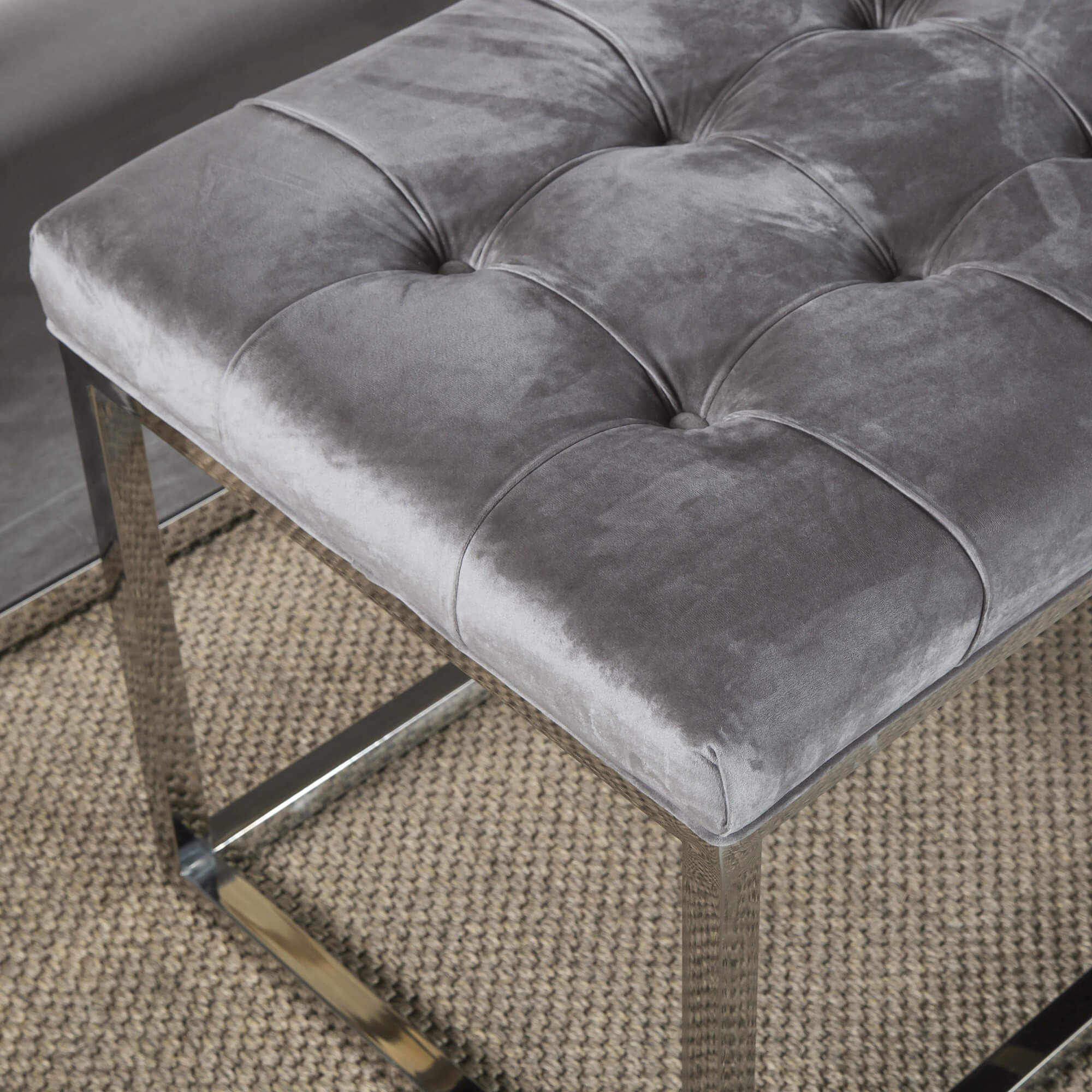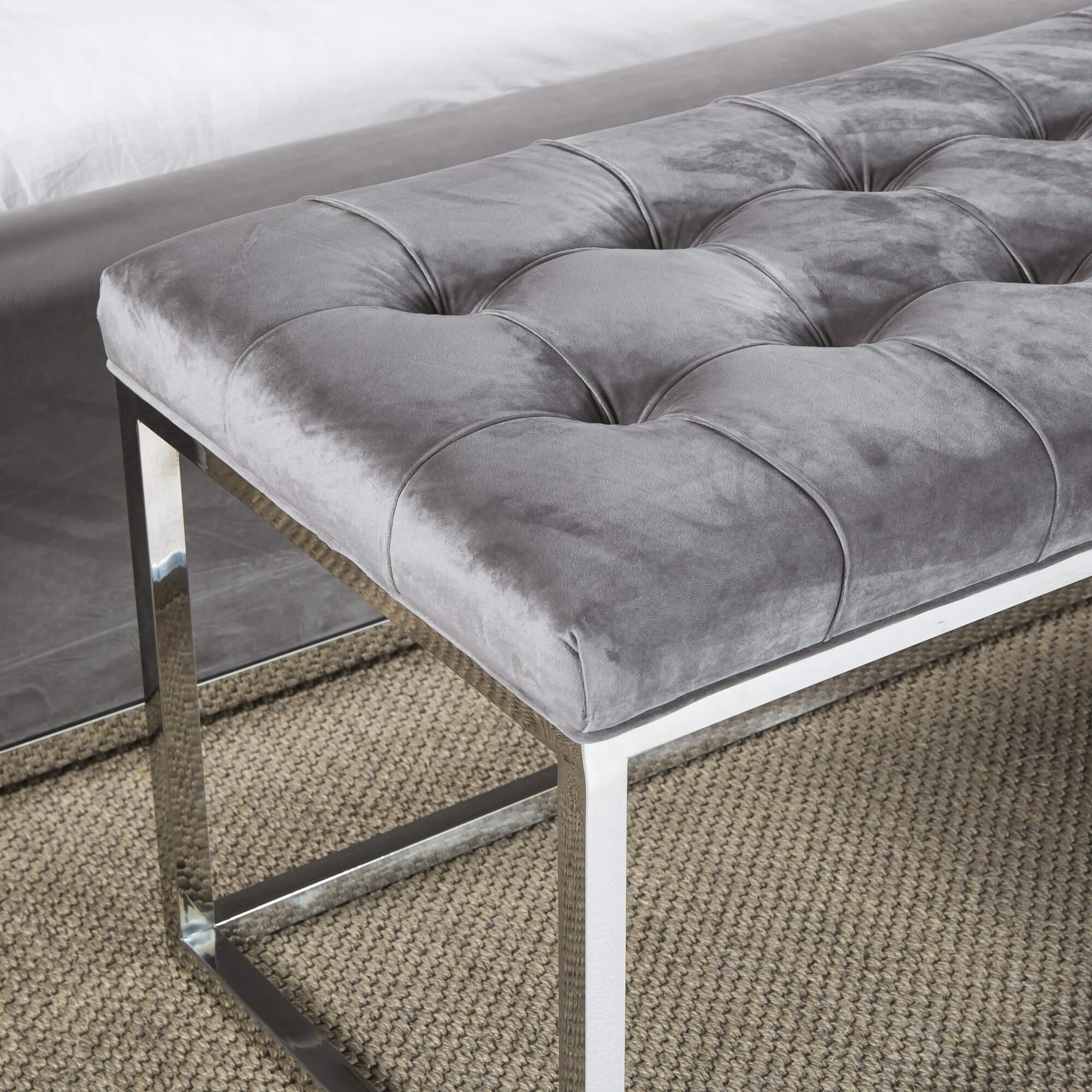 Nothing about this beautiful bedroom bench is sub-standard, with its specially hand tufted brushed velvet upholstery and polished steel framework which combine to create a timeless appeal.