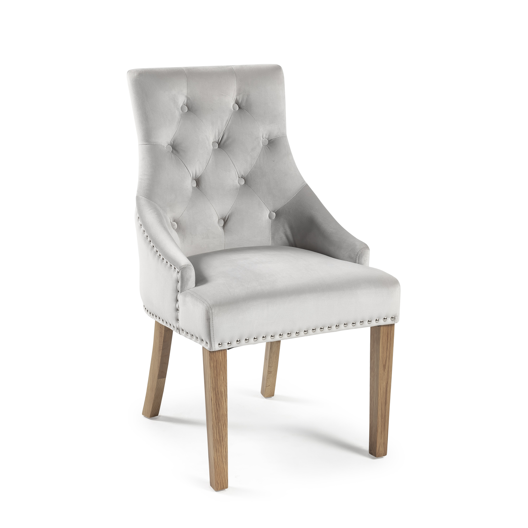 Luxury Chelsea Light Grey Velvet Scoop Back Dining Room Chair – Oak Legs