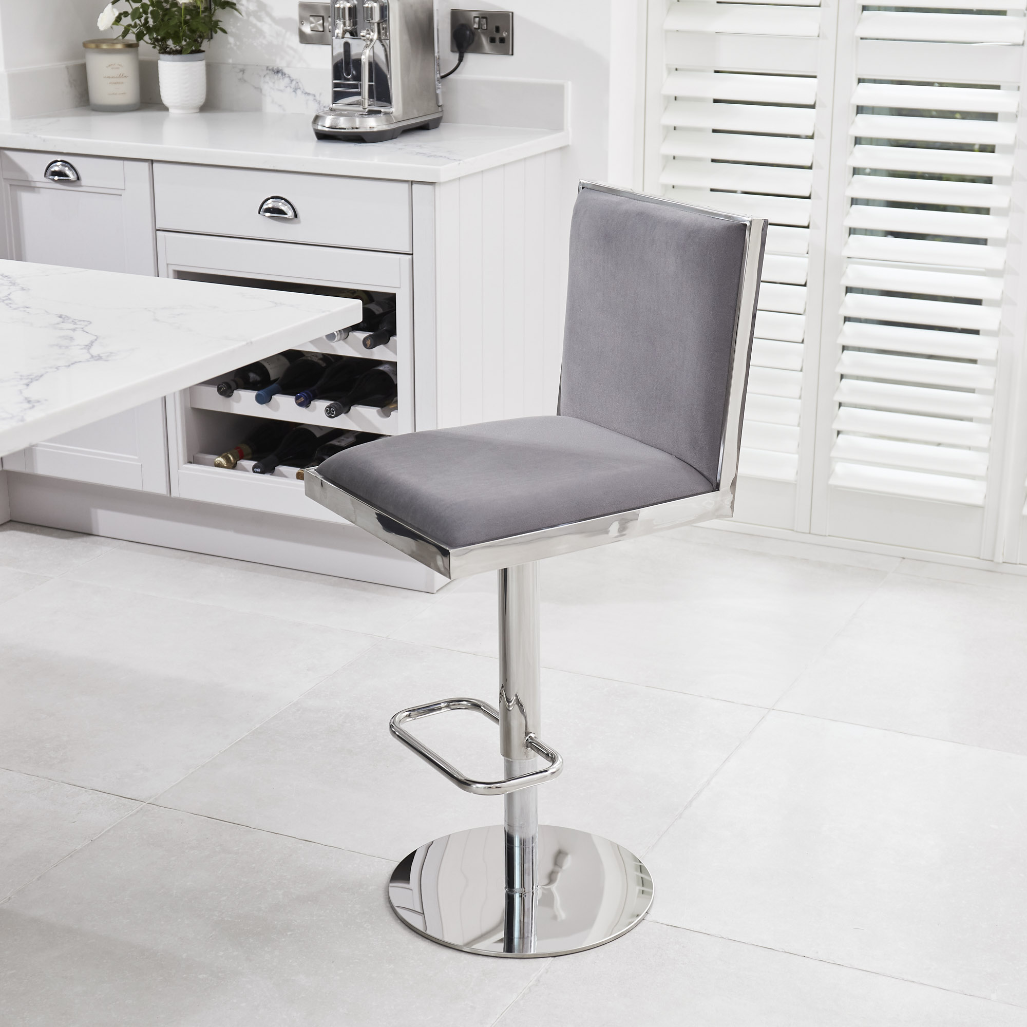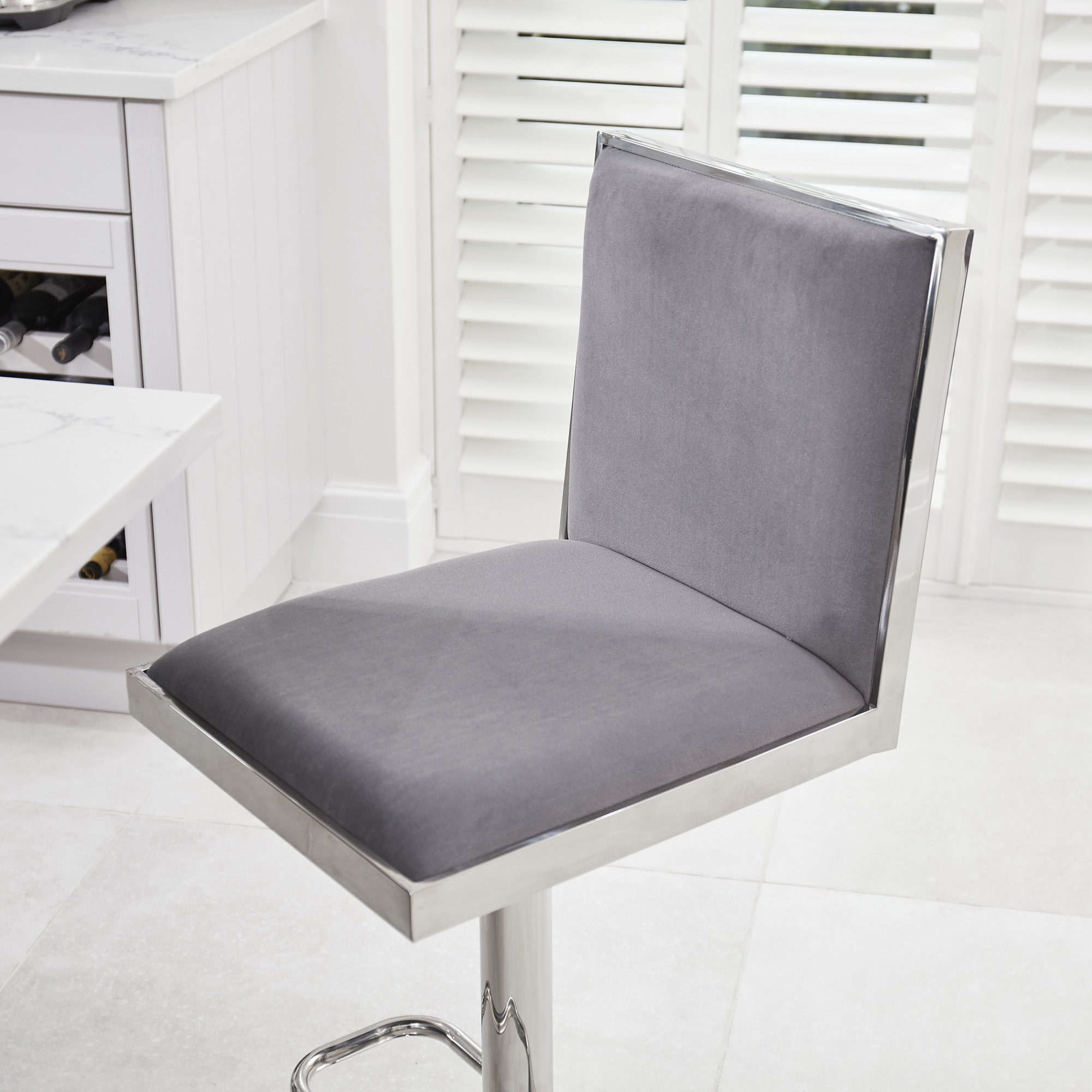 Mia Grey Velvet Barstool – Kitchen Stool – Gas Lift
