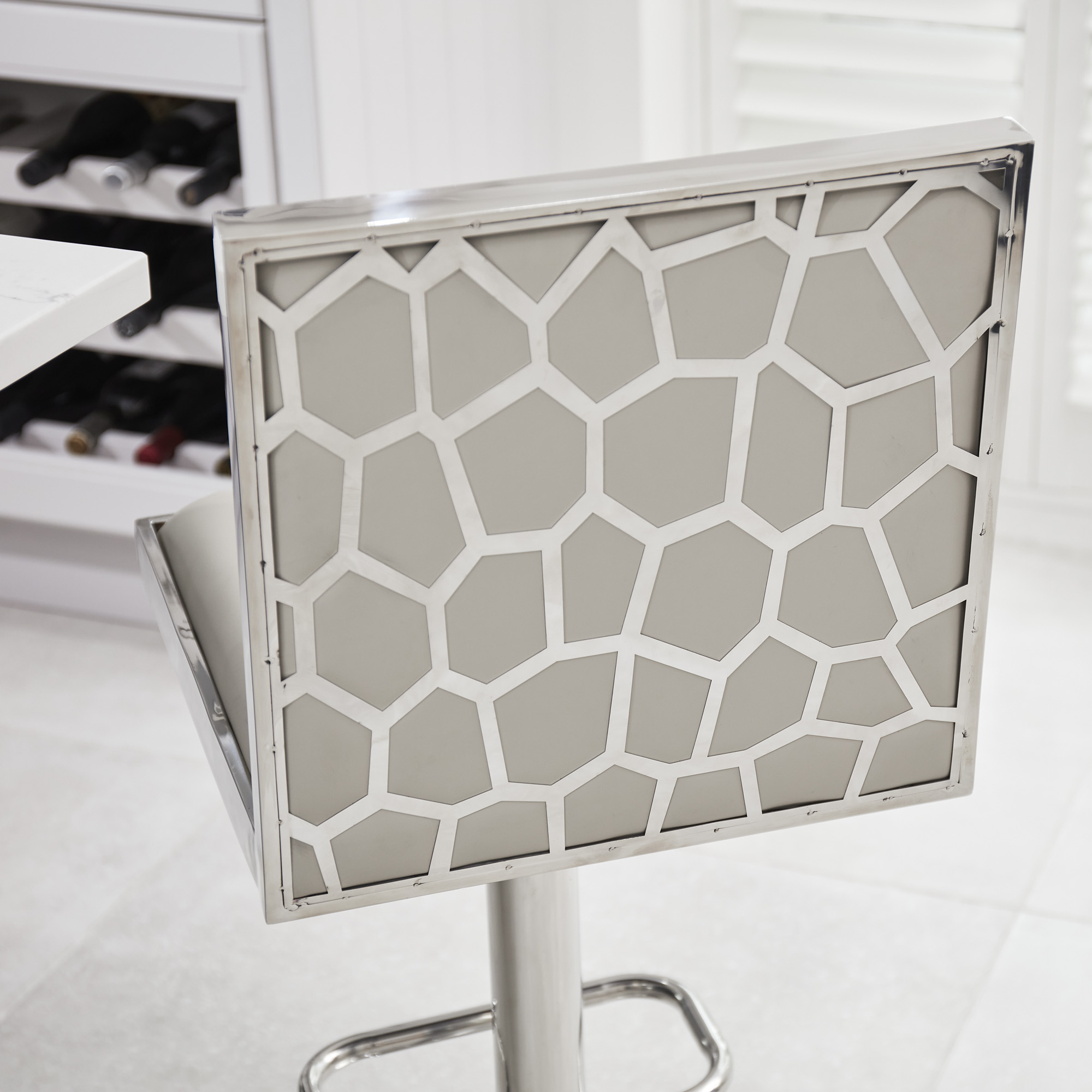 The Mia contemporary Bar/Kitchen stool is upholstered in faux Ivory leather fabric. This luxuriously padded seat has a supportive backrest to deliver premium comfort and great support. The rear of the stool has an interricate laser cut panel with a minimal contemporary design to it.