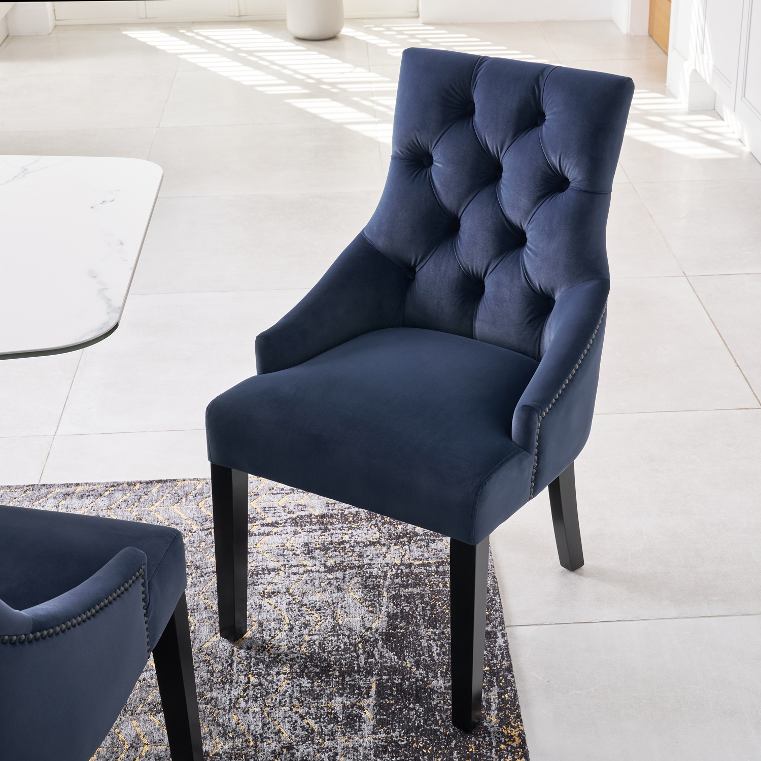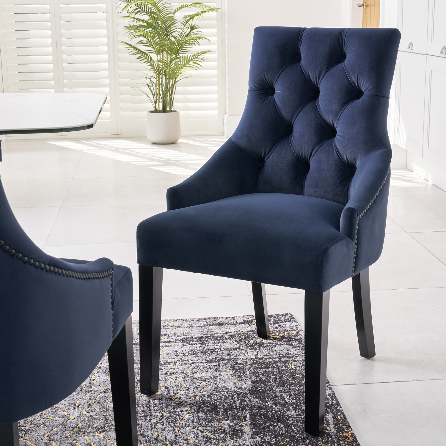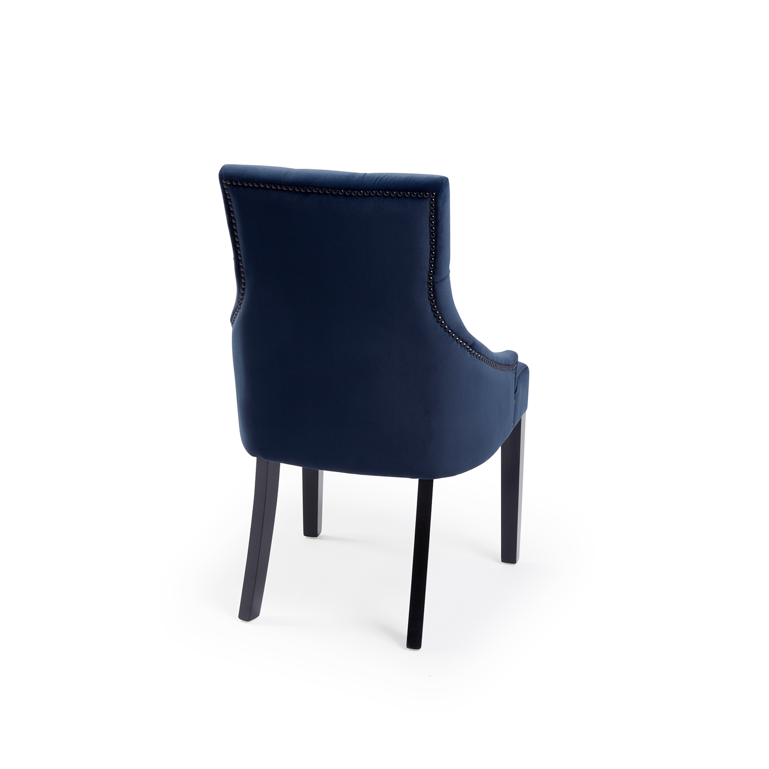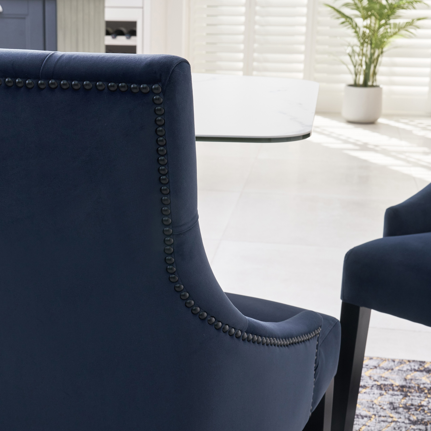 New Chelsea Dark Blue Brushed Velvet Scoop Back Dining Chair Black Studs