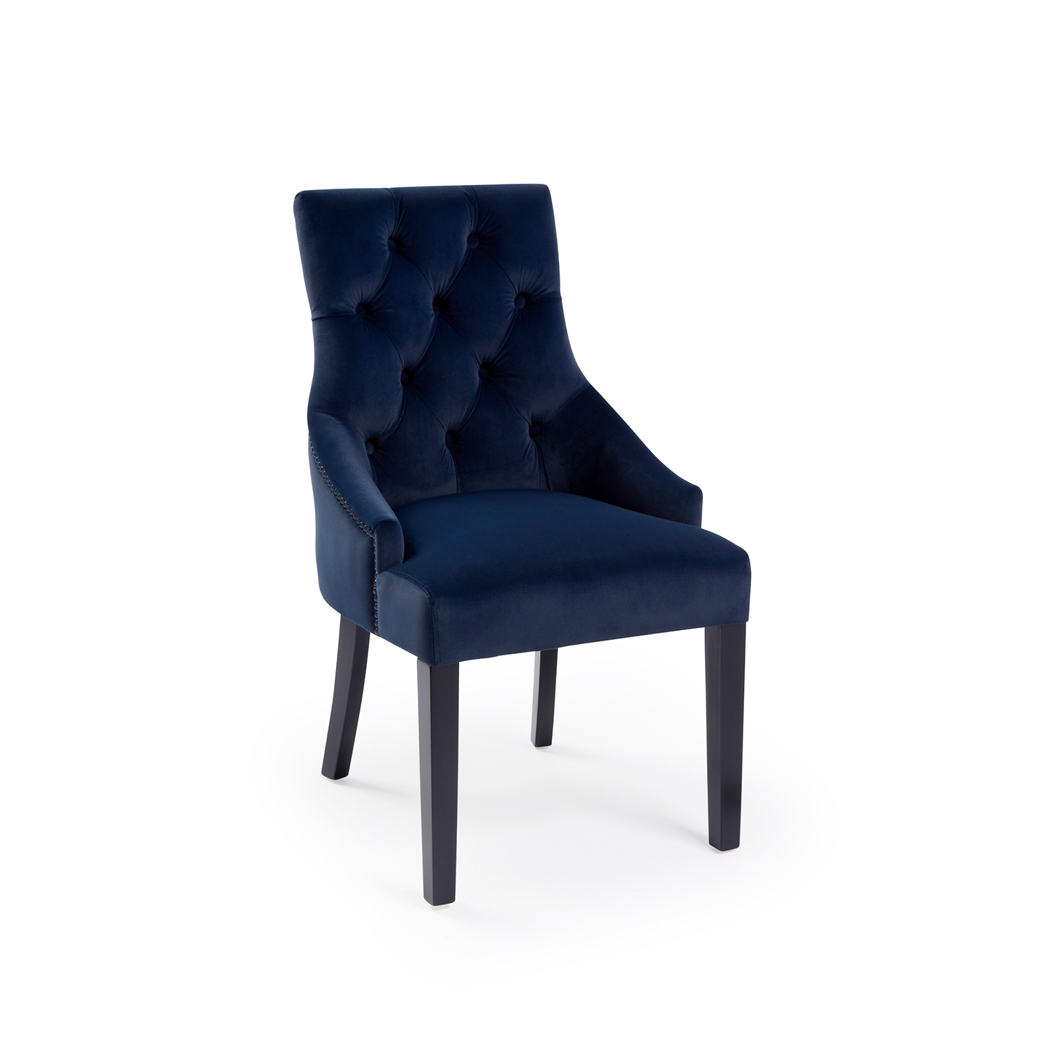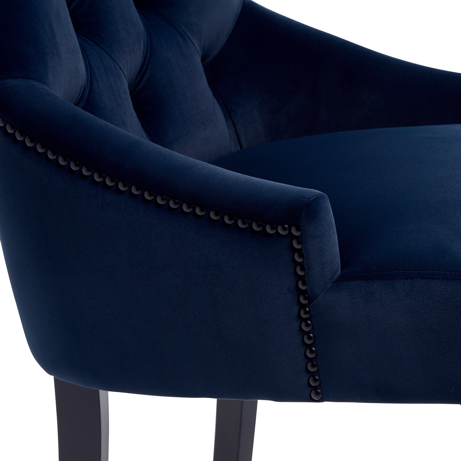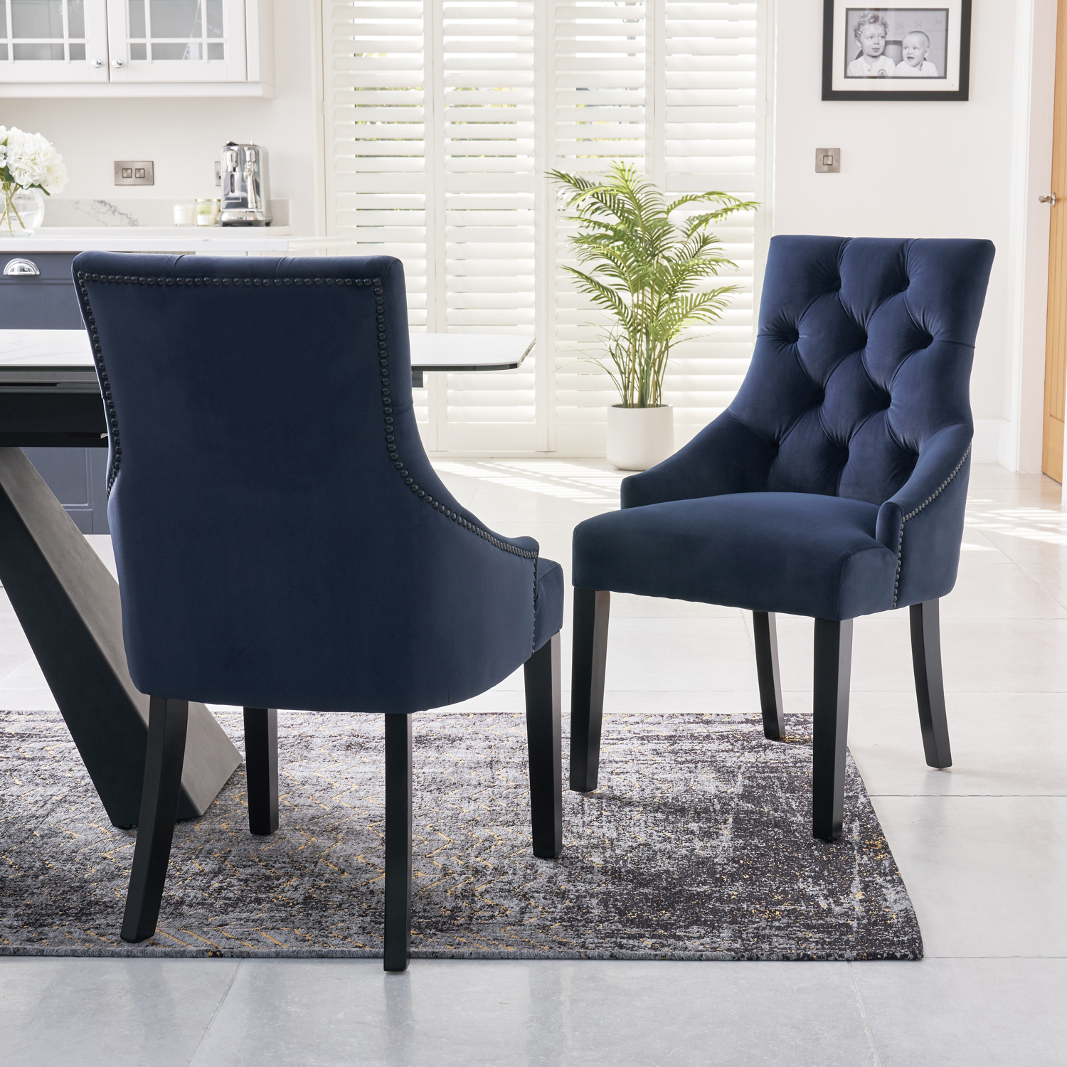 New Chelsea Dark Blue Brushed Velvet Scoop Back Dining Chair Black Studs