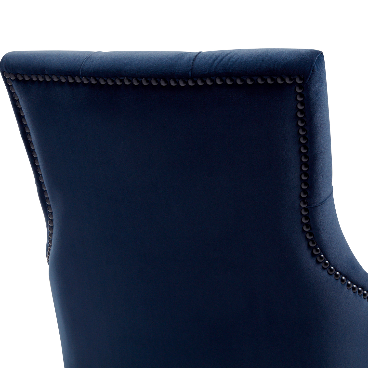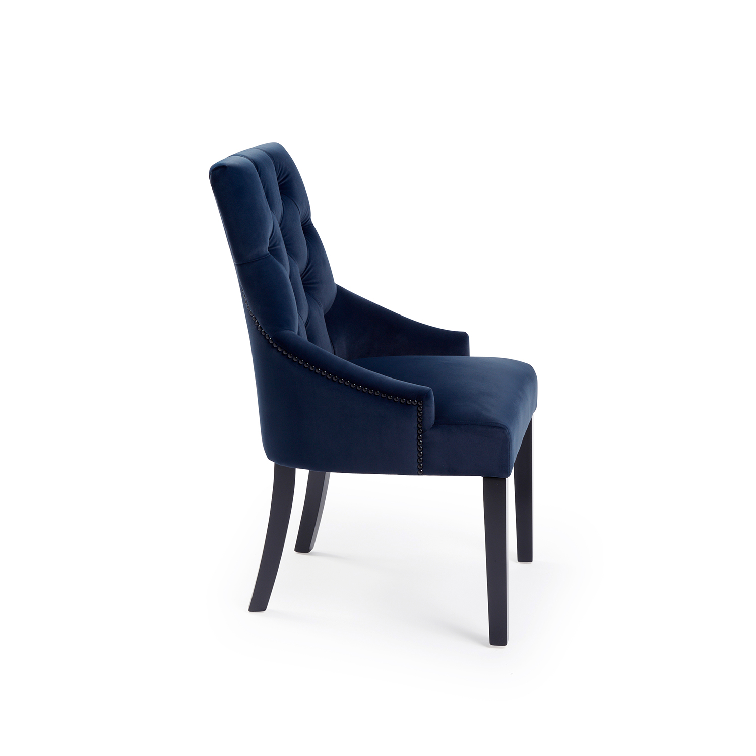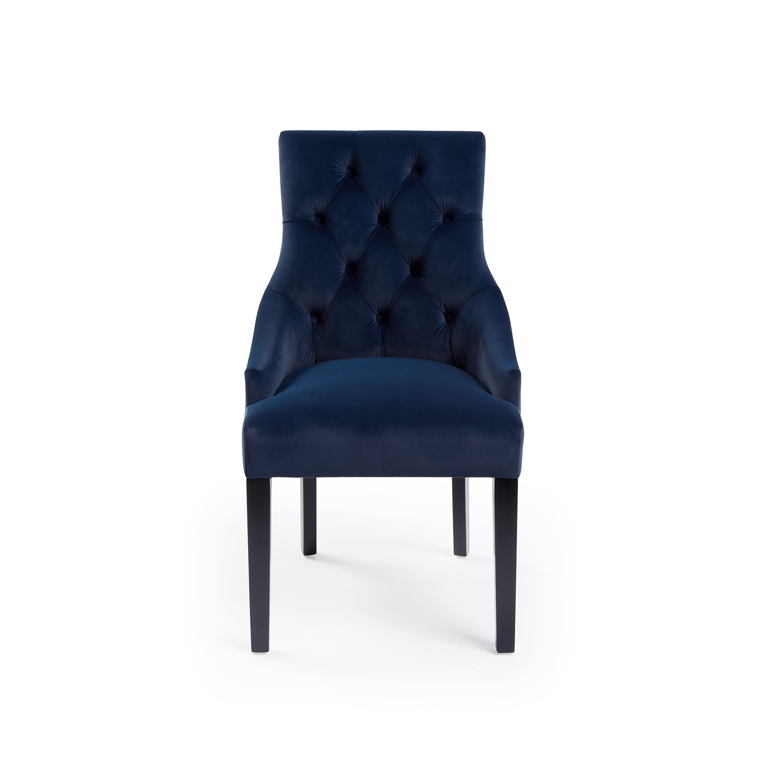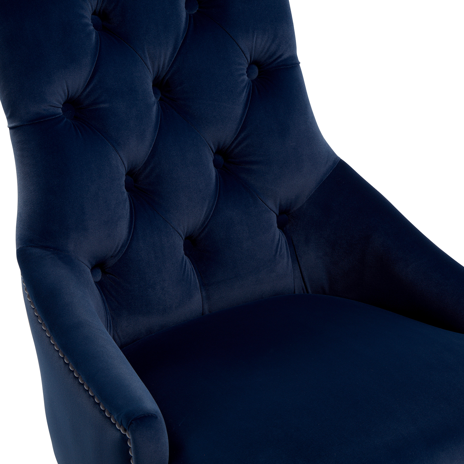 New Chelsea Dark Blue Brushed Velvet Scoop Back Dining Chair Black Studs