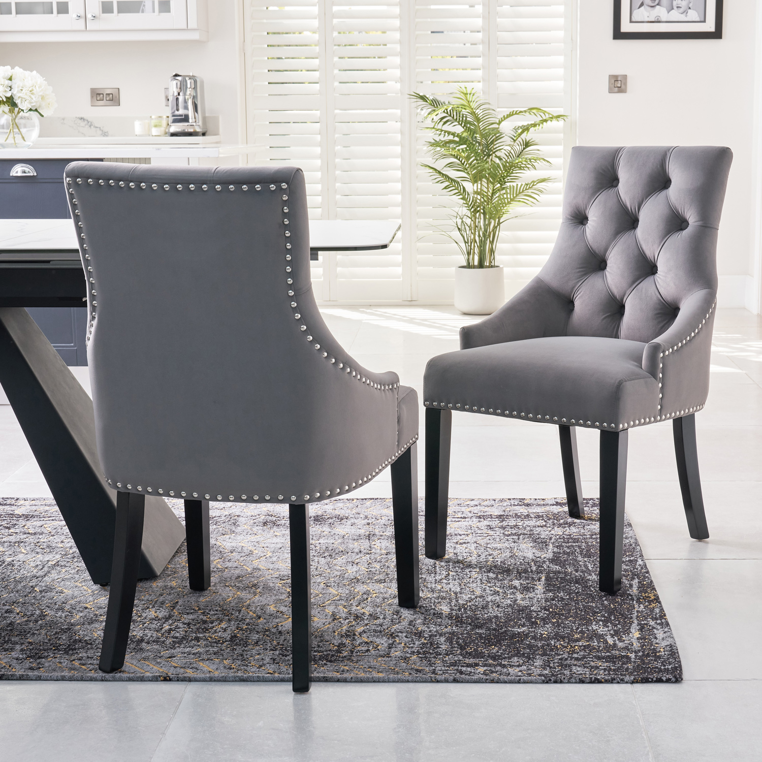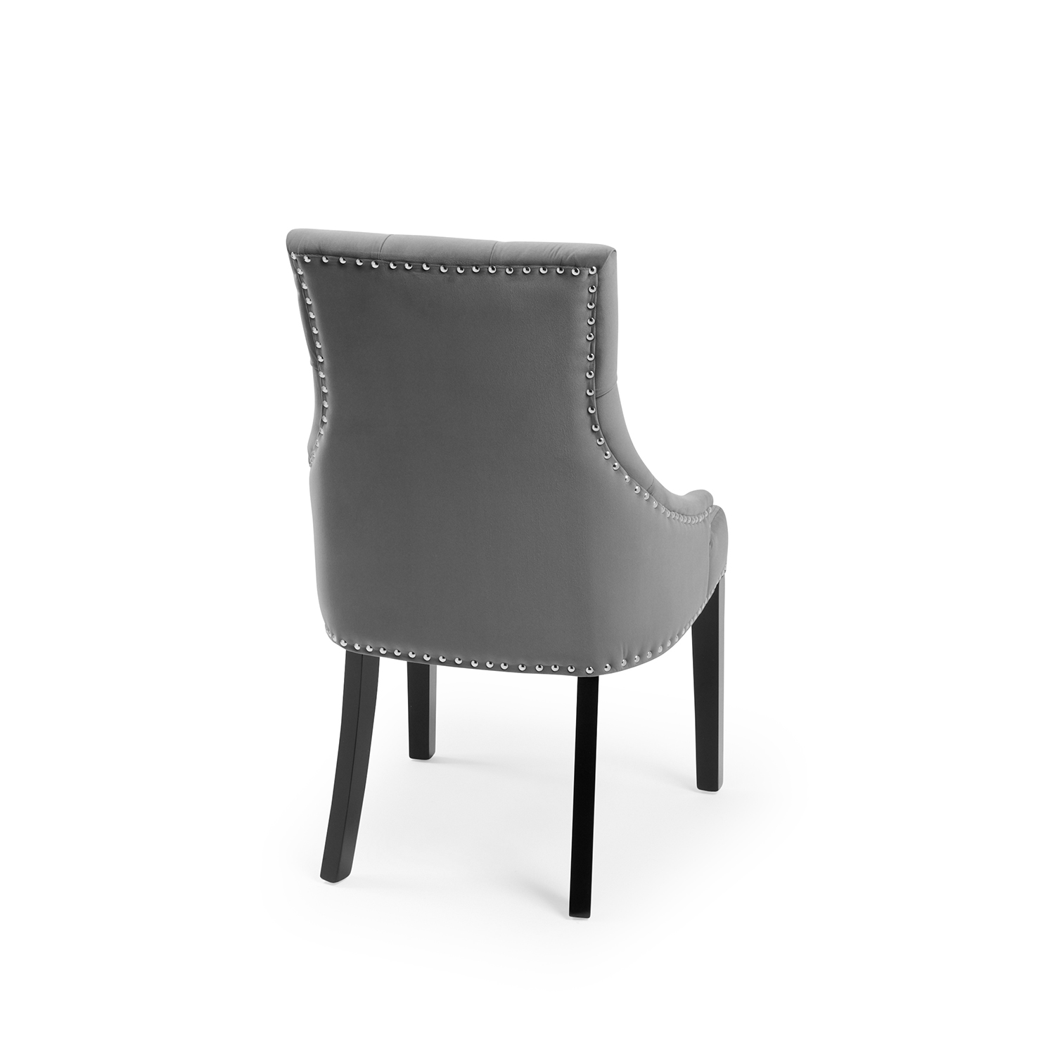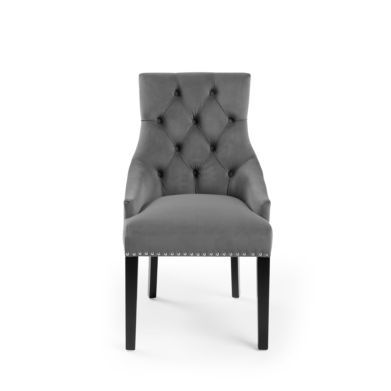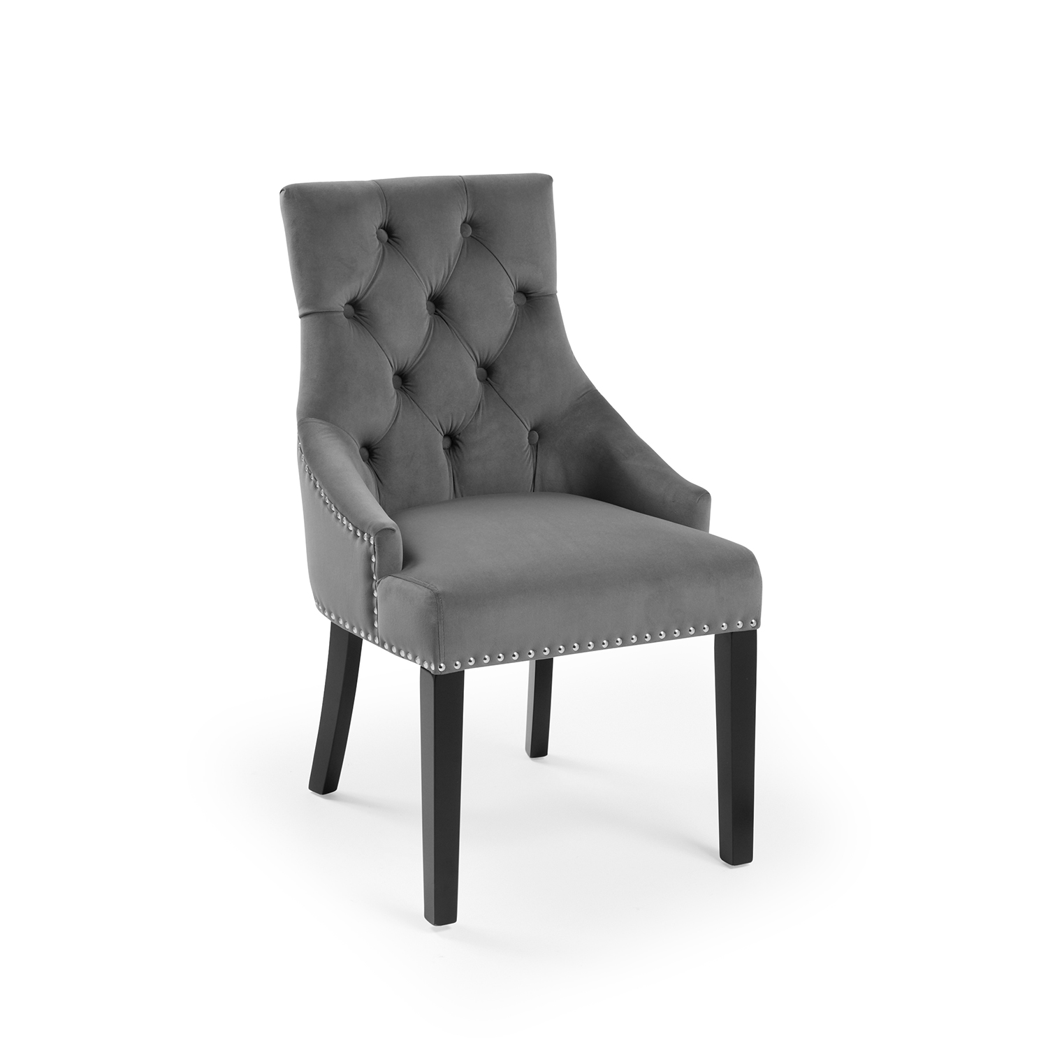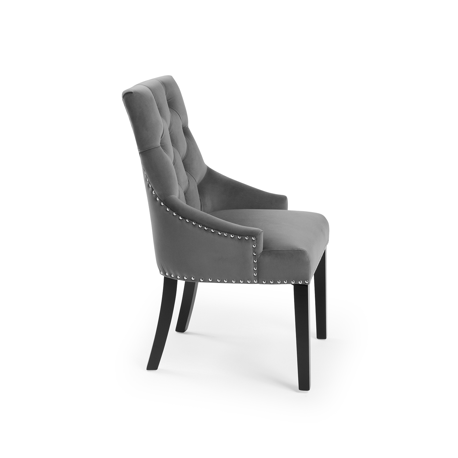 New Chelsea Grey Brushed Velvet Scoop Back Dining Chair Silver Studs
