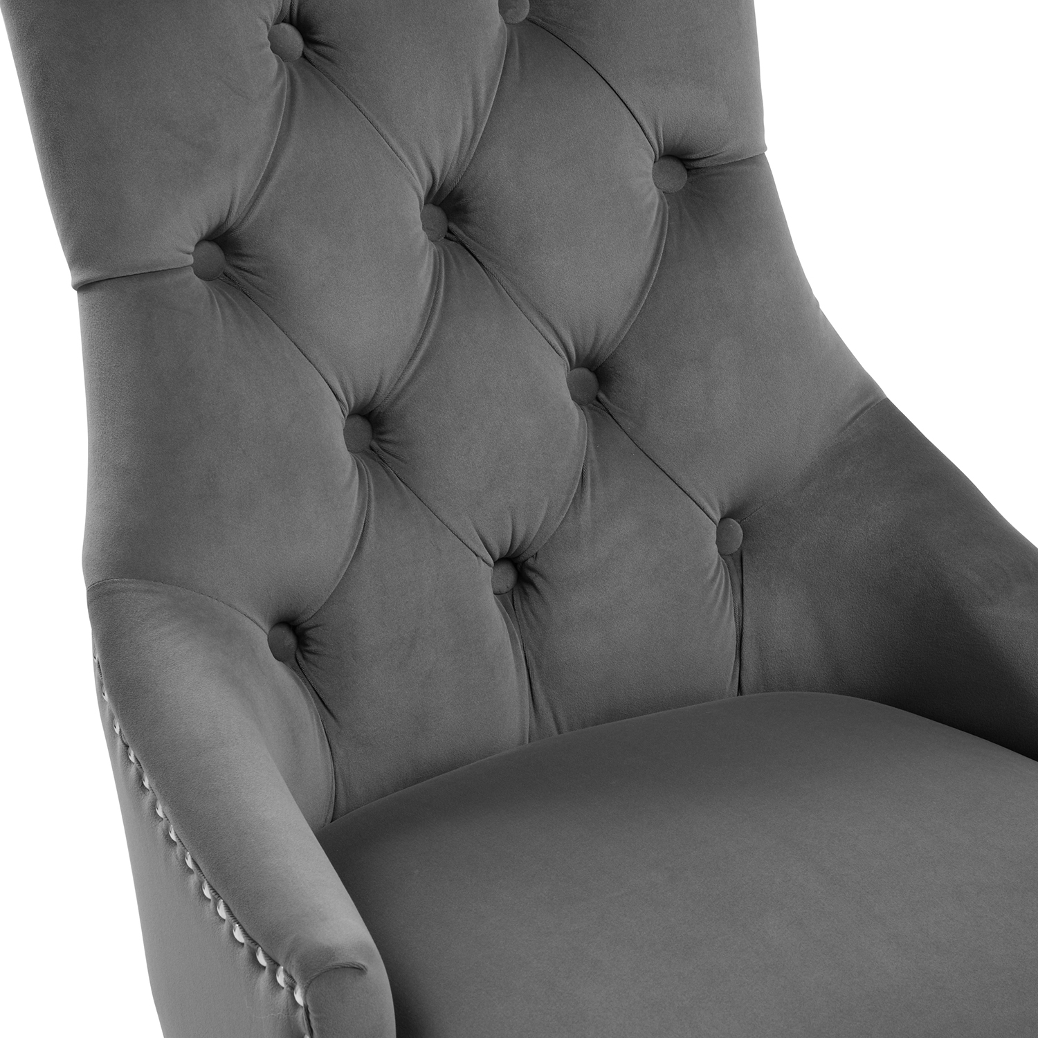 Add some contemporary sophistication to the dining table when you purchase this new redesigned Chelsea Upholstered dark grey velvet dining chair.