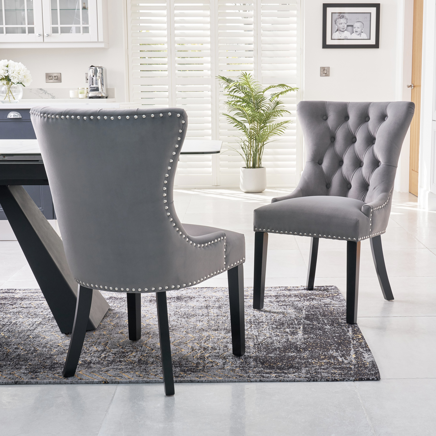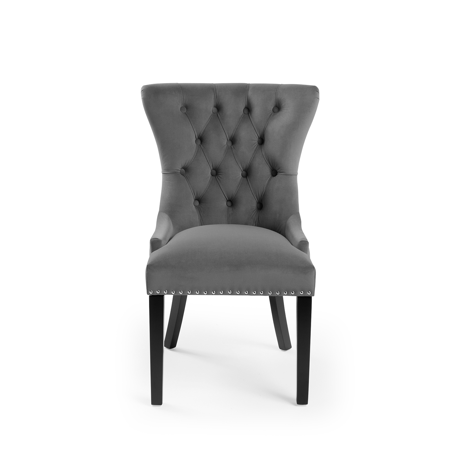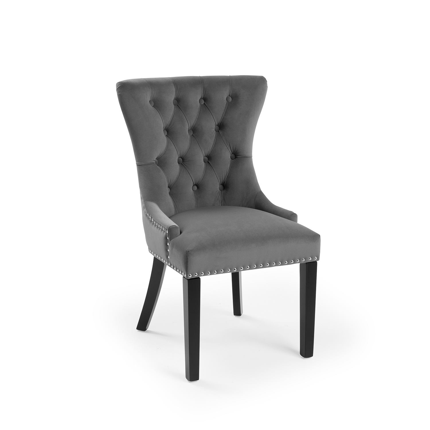 New Knightsbridge Grey Brushed Velvet Dining Chair – Silver Studs