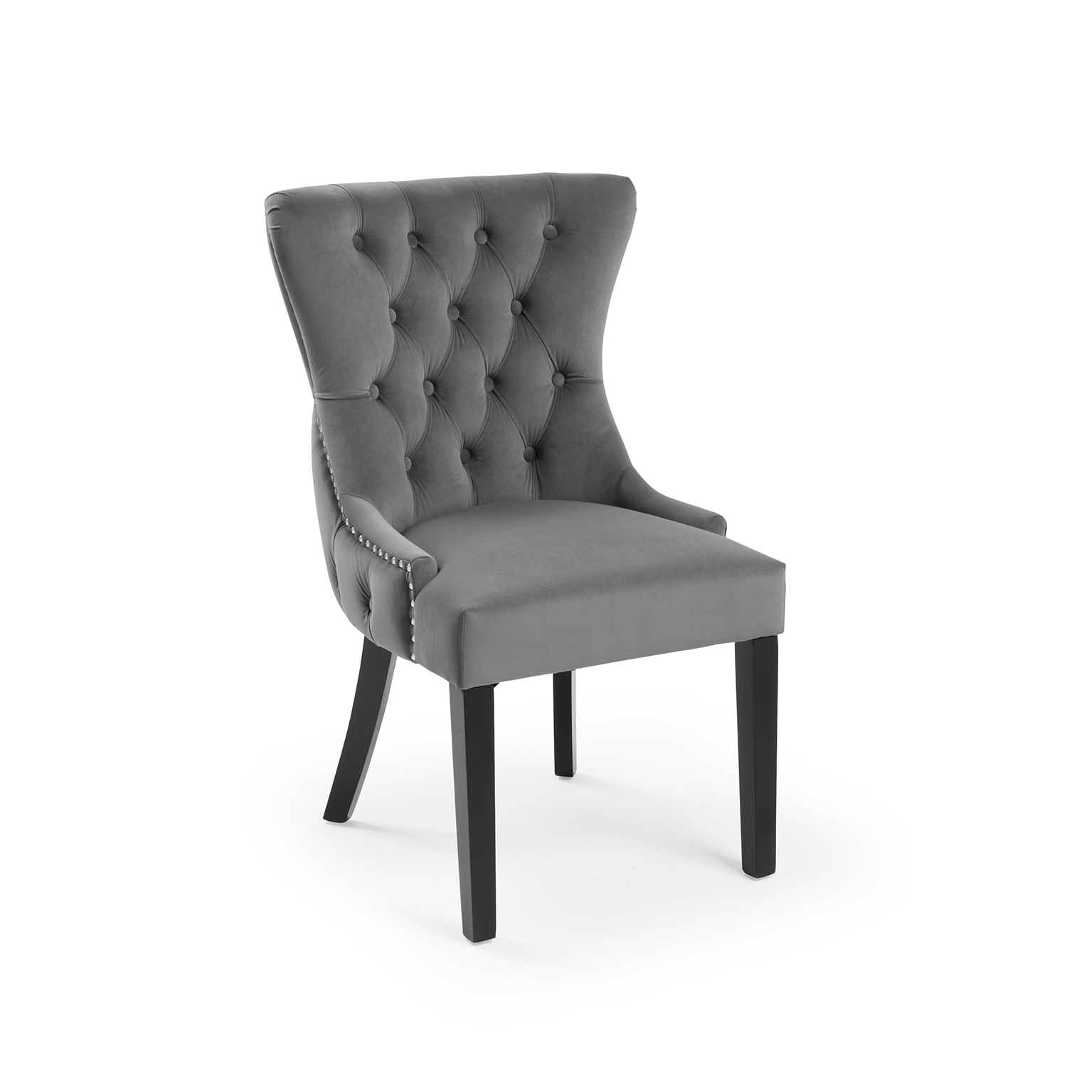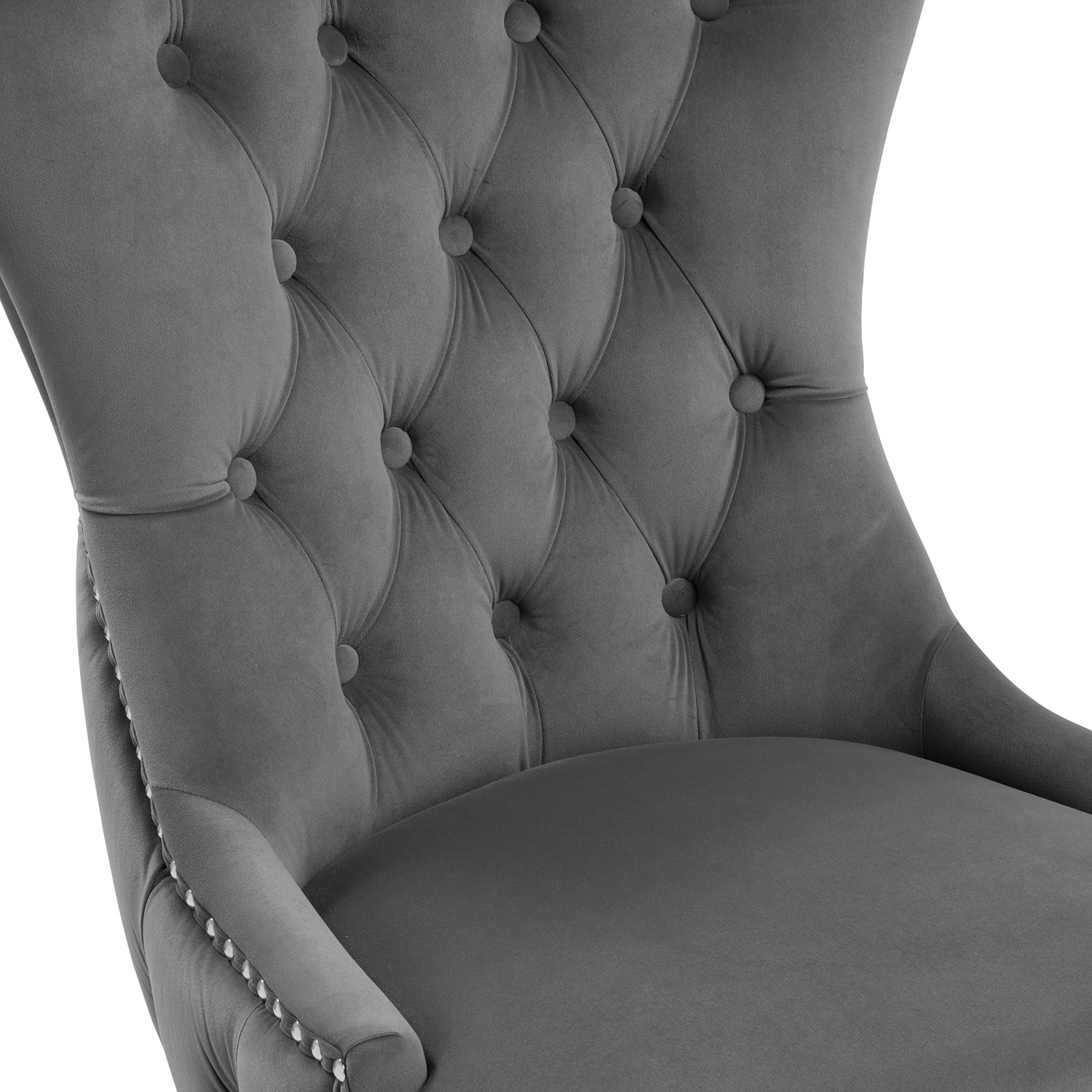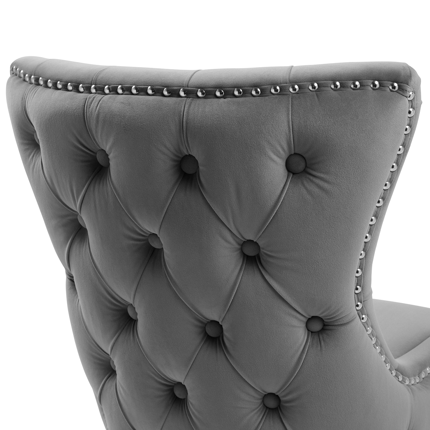 New Knightsbridge Grey Velvet Upholstered Chair With Button Tufted Detailing – Silver Studs