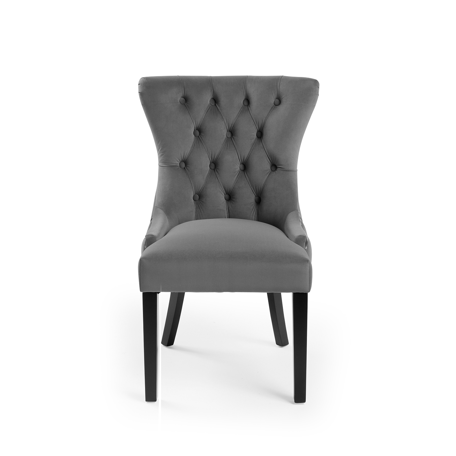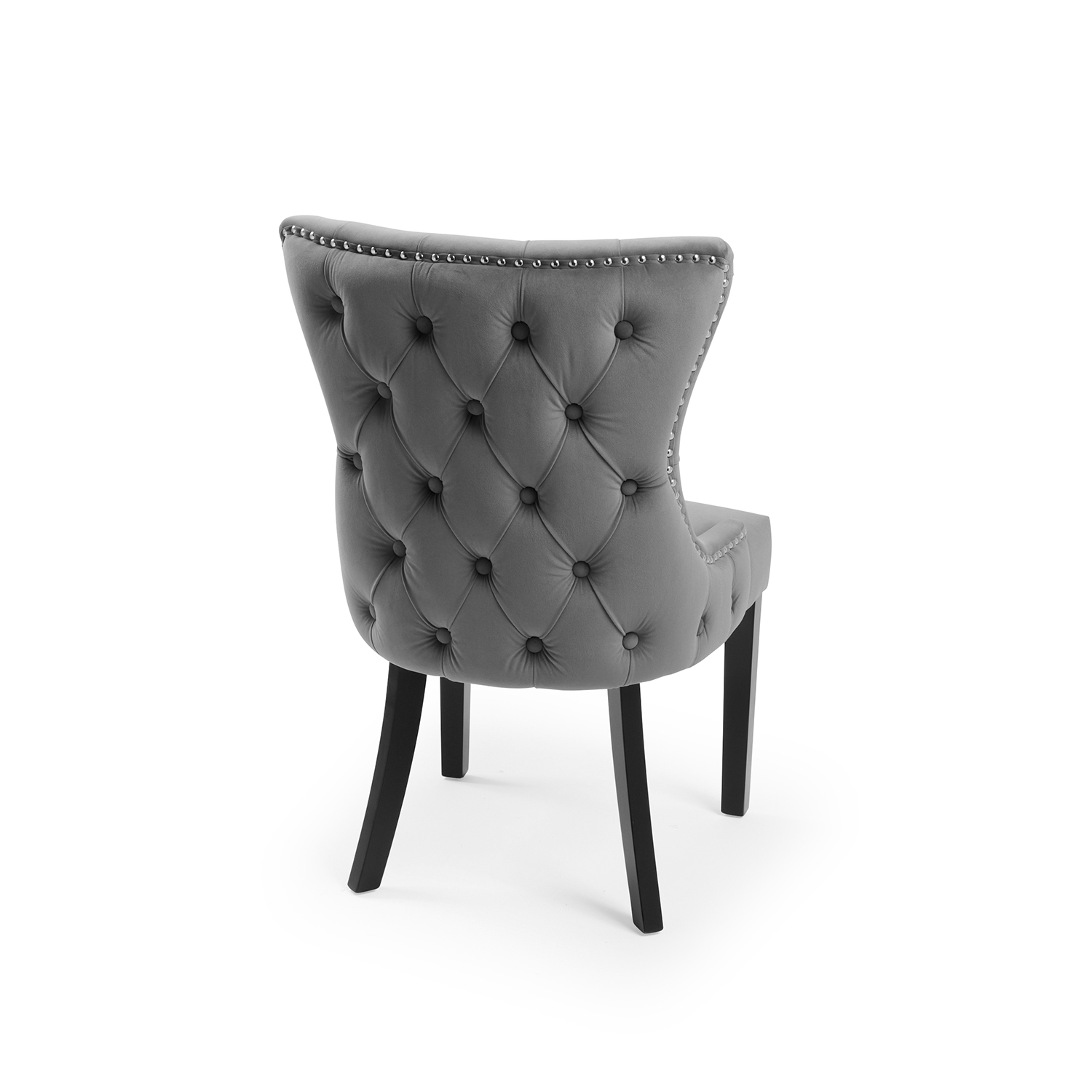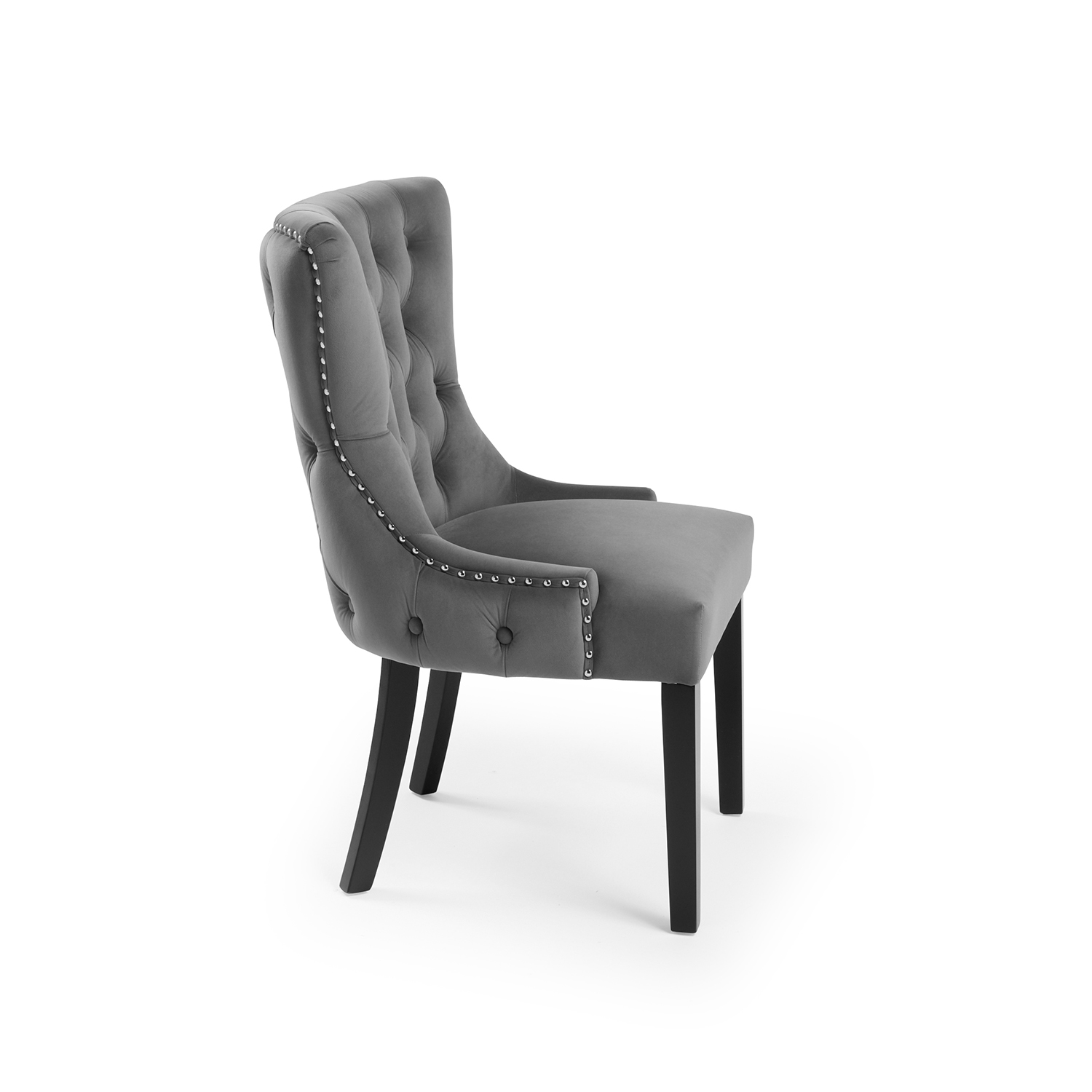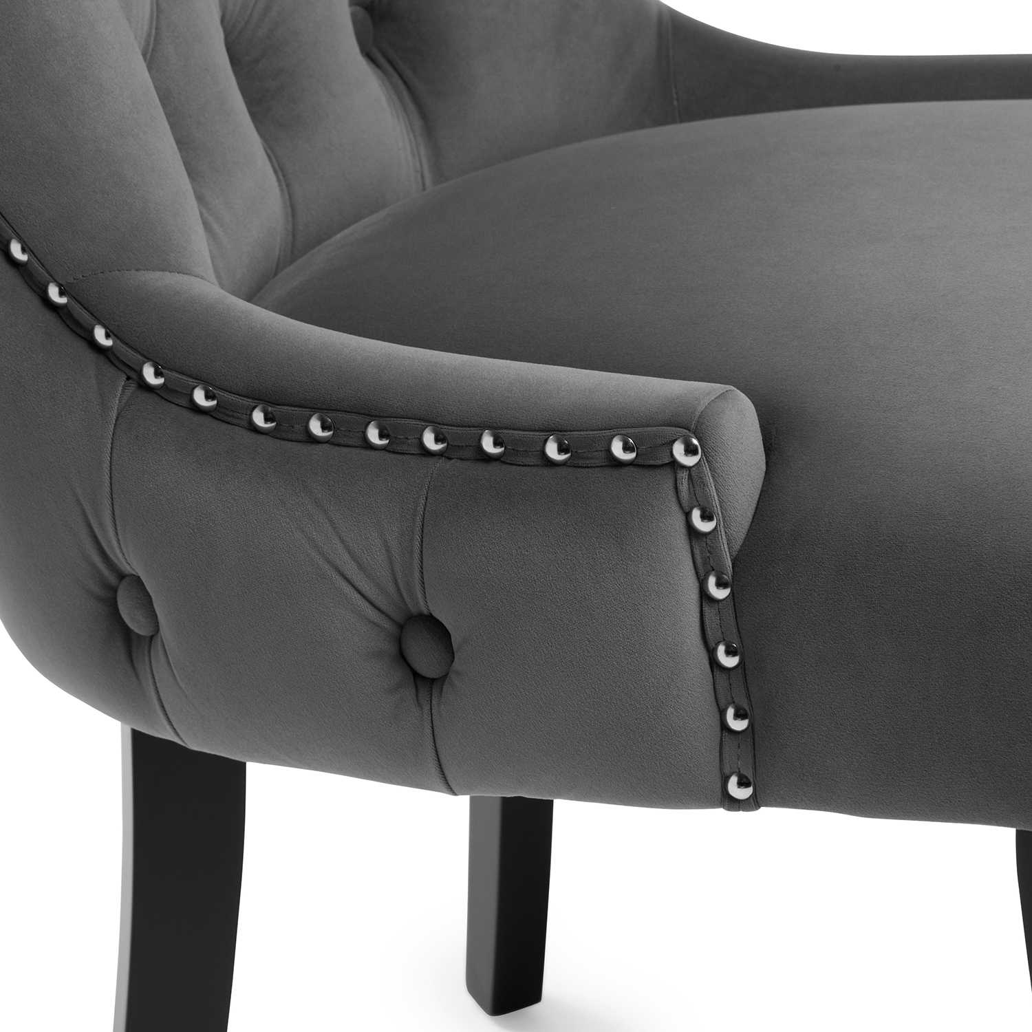 New Knightsbridge Grey Velvet Upholstered Chair With Button Tufted Detailing – Silver Studs