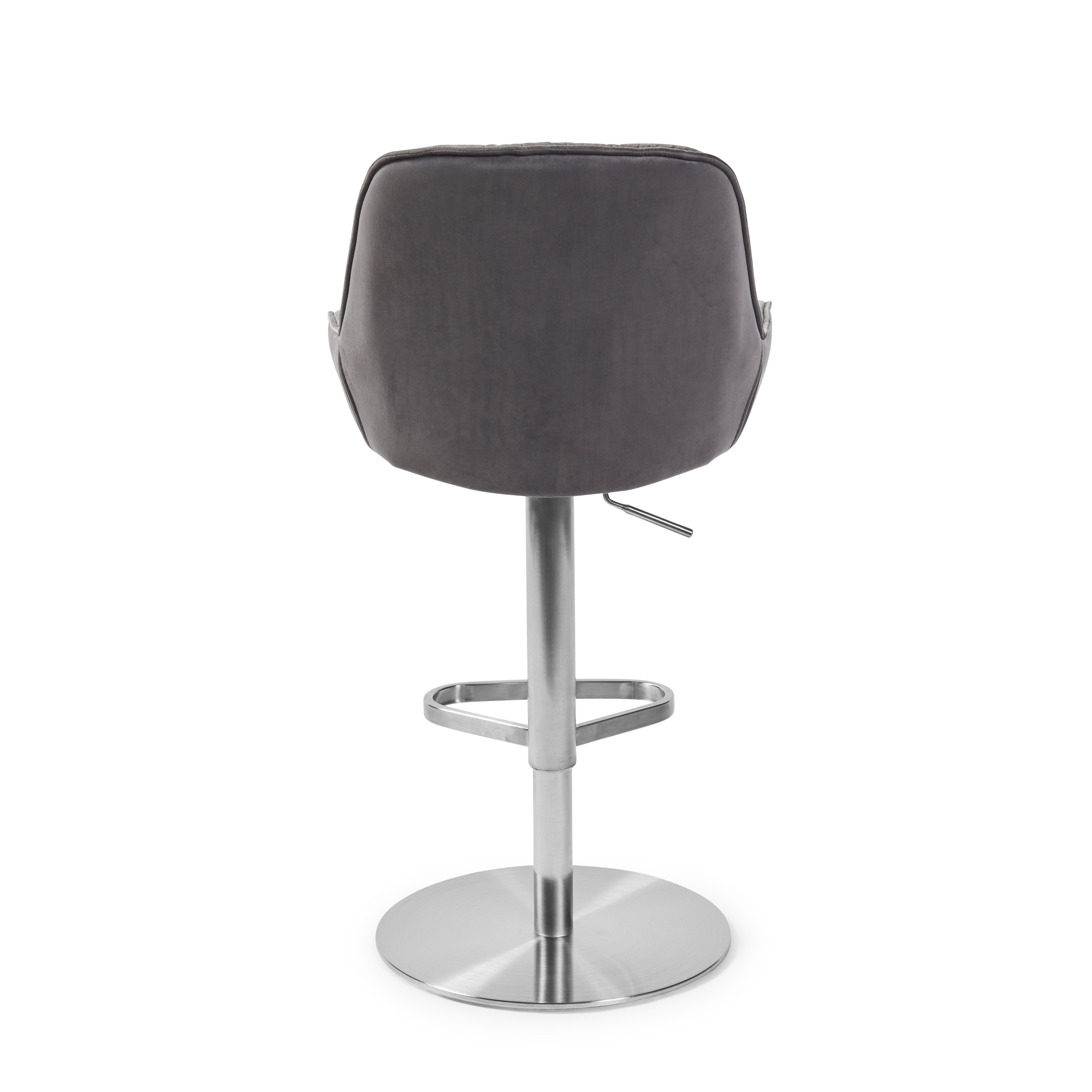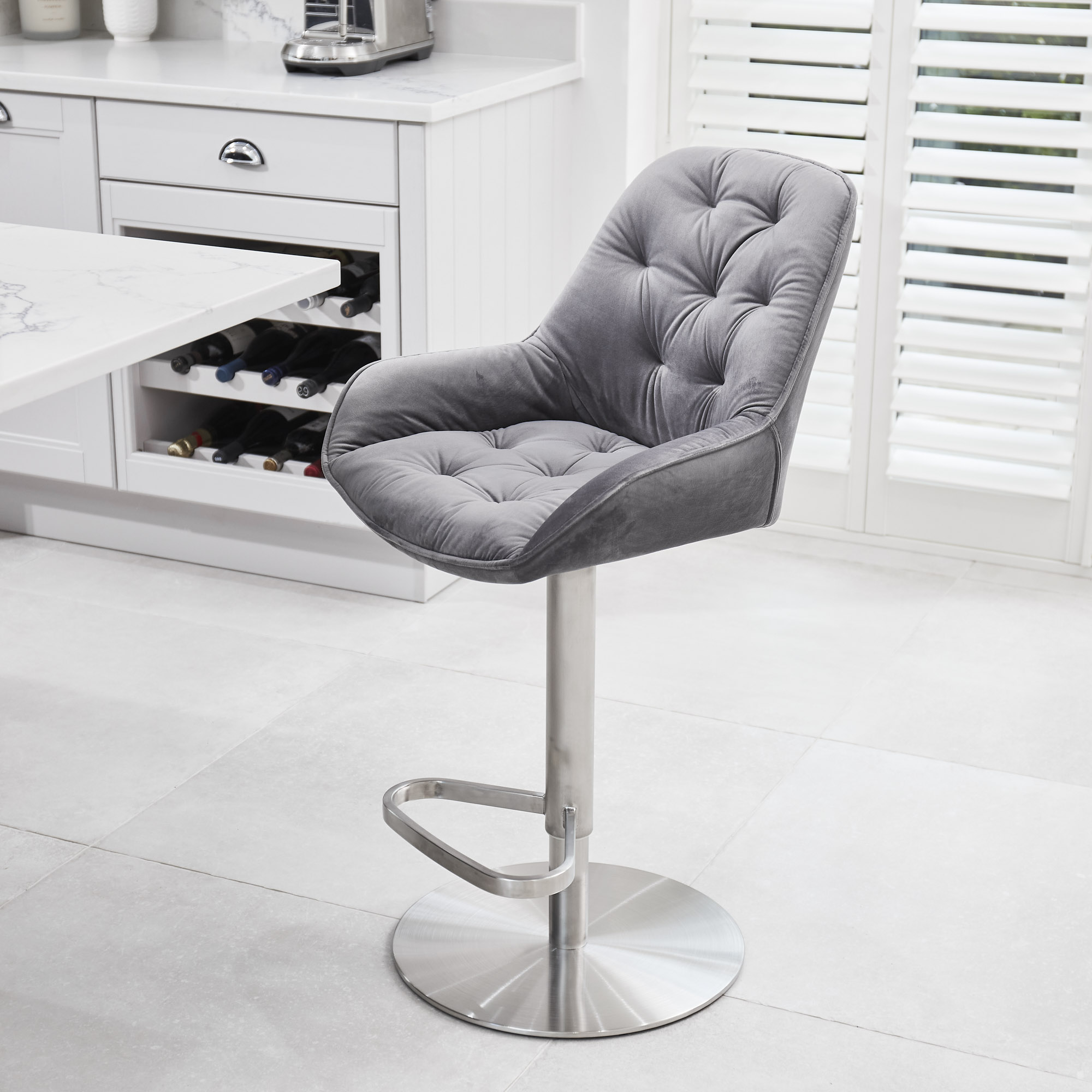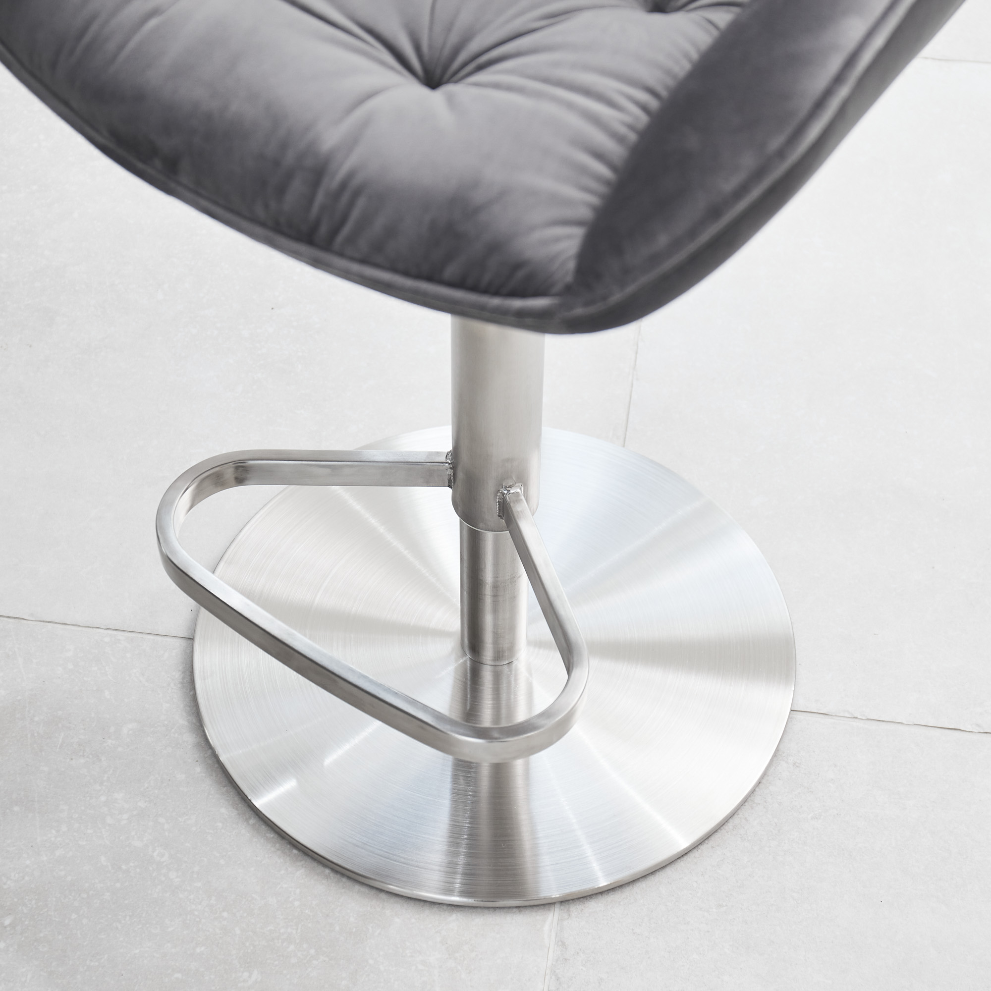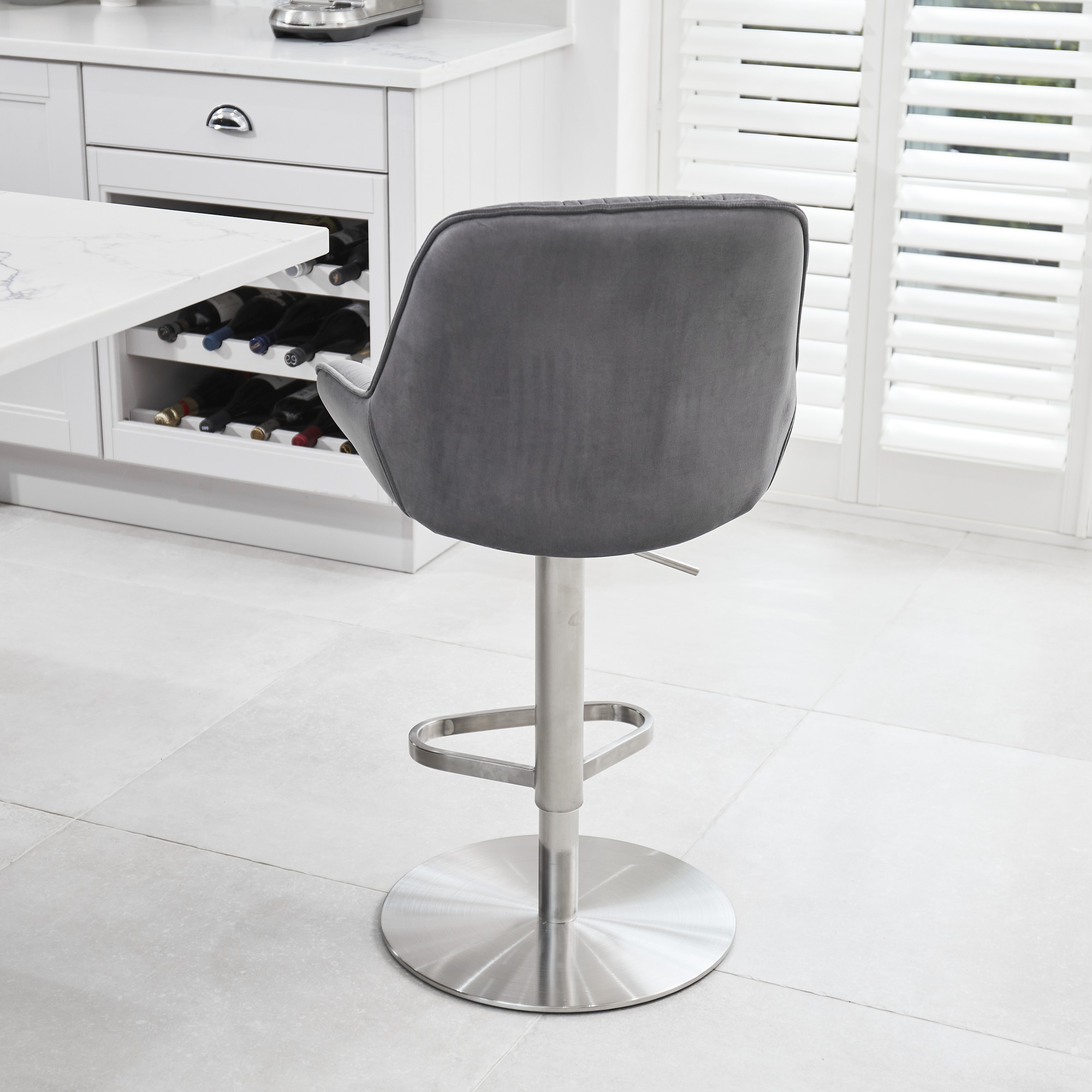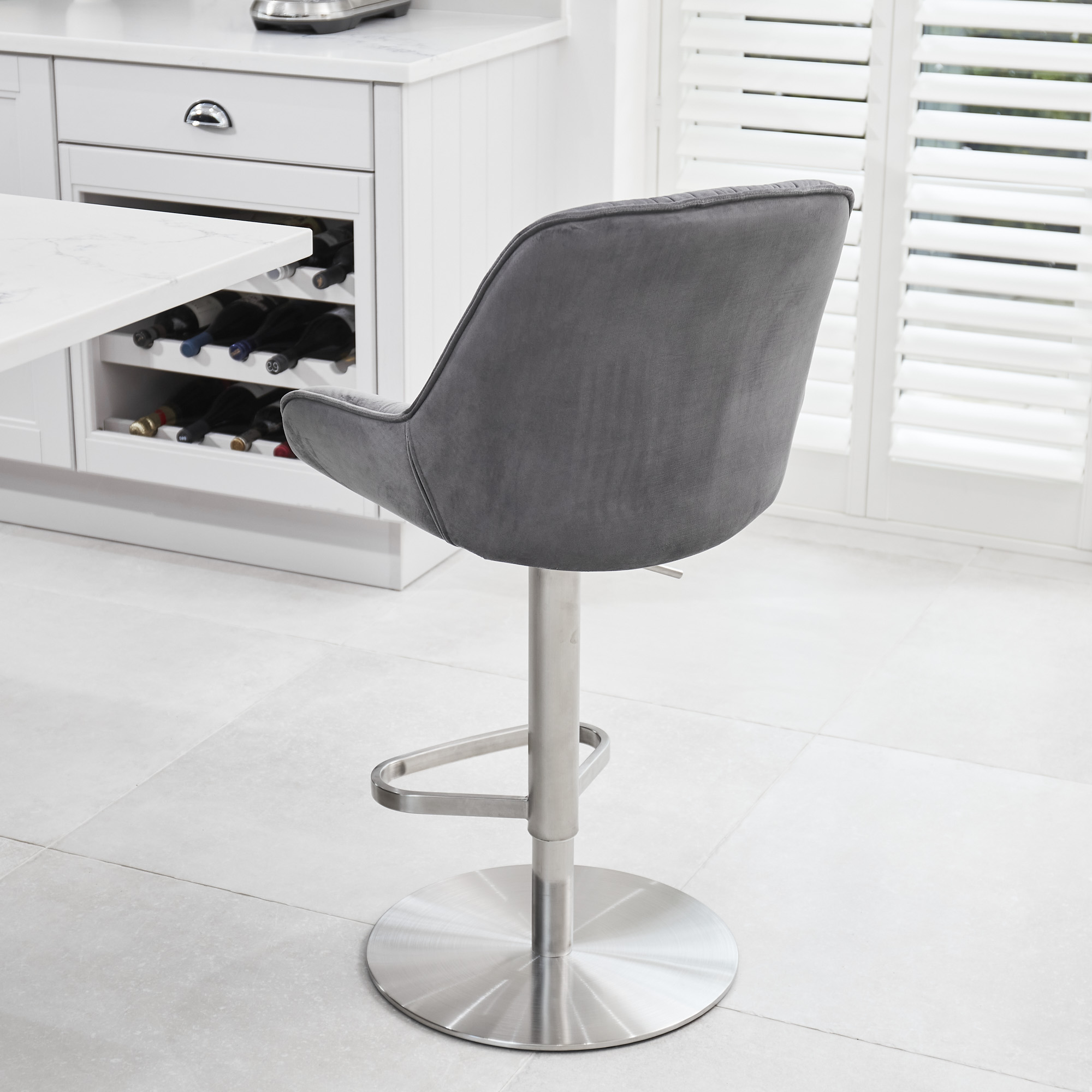 With its luxurious velvet padded seat, swivel brushed steel base and neat piping detail, the Seattle swivel bar stool is so much more than just somewhere to sit. This modern stool will make your space look great and you feel the comfort when sat in. It has a smooth gas lift mechanism with a brushed steel finish to the base and pedestal.