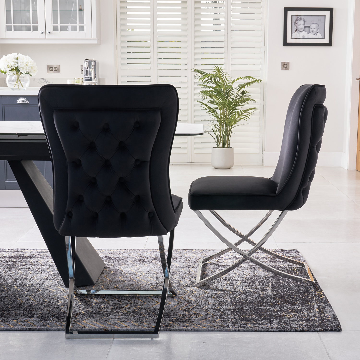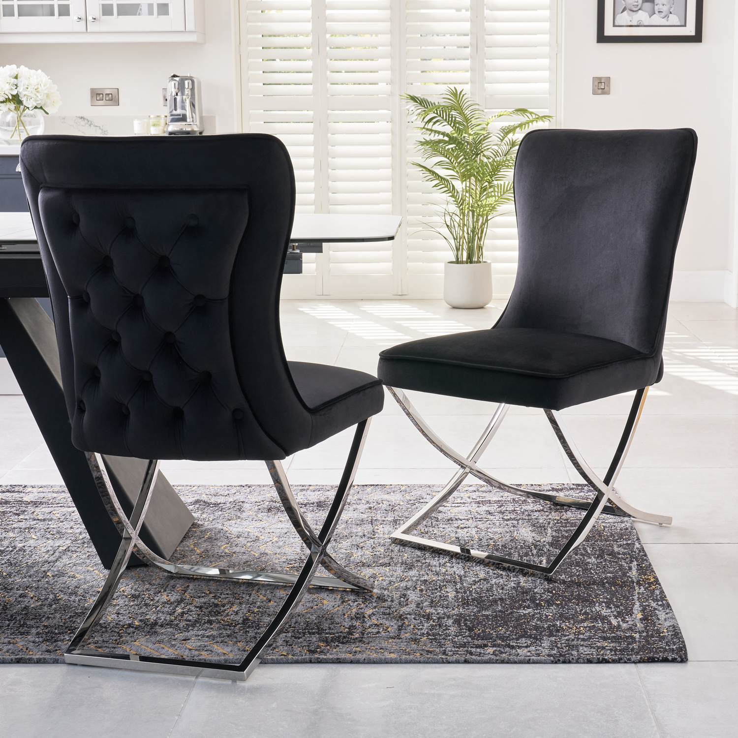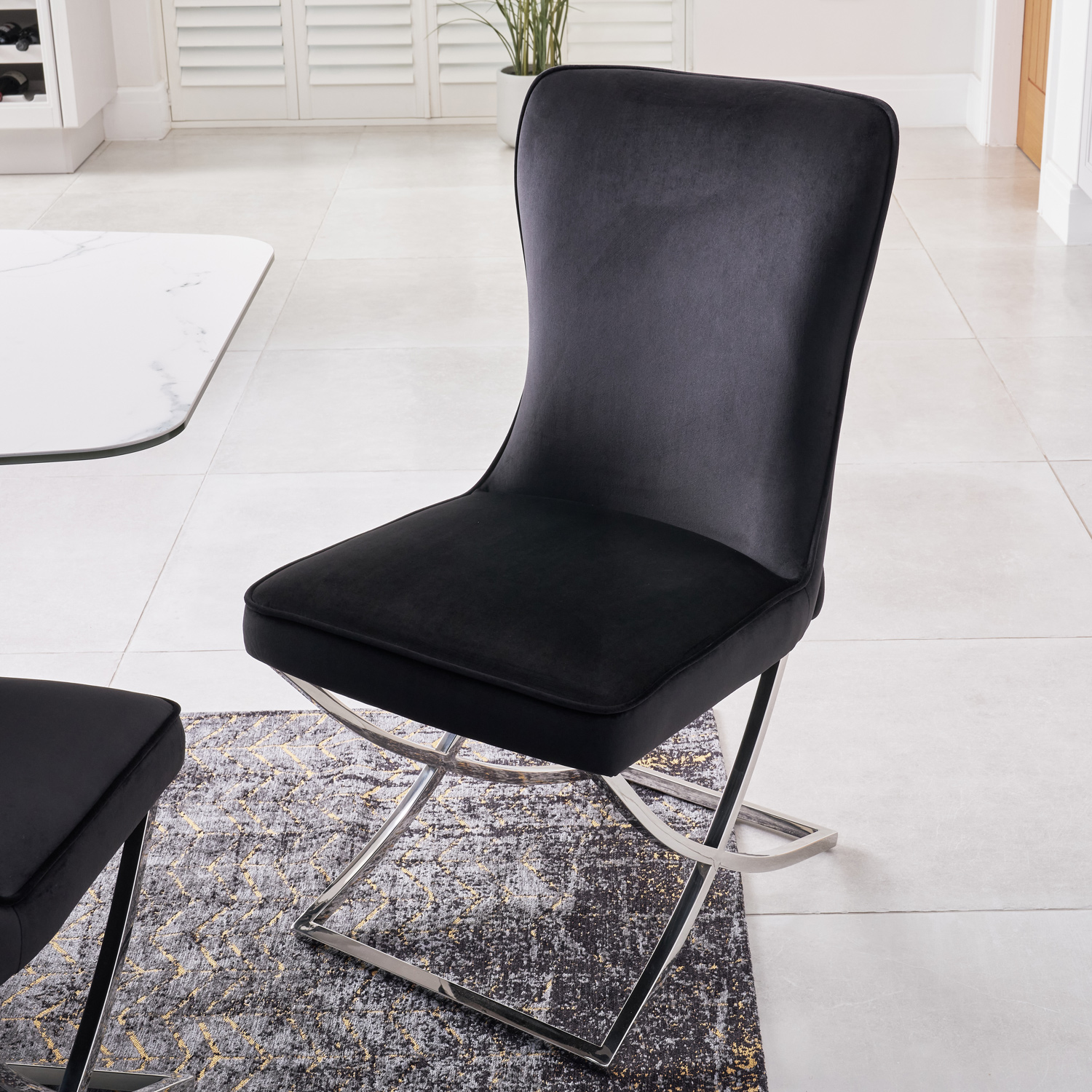 (Set of 2) Cheshire Black Brushed Velvet Dining Chair with a Stainless Steel Cross Leg