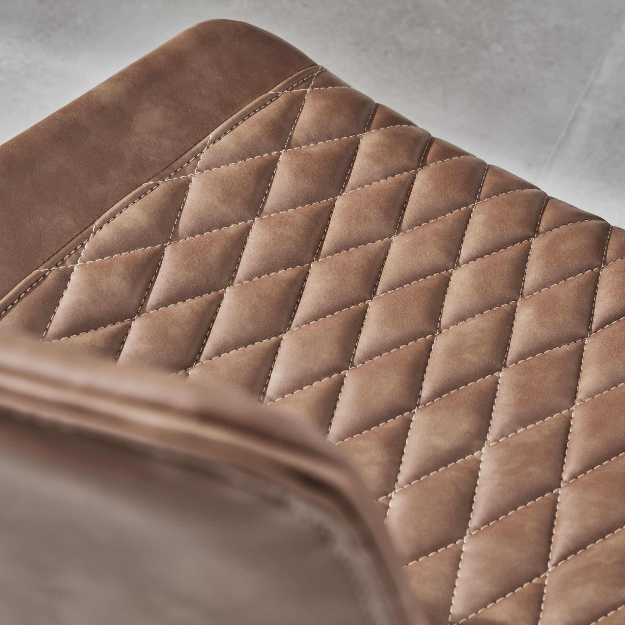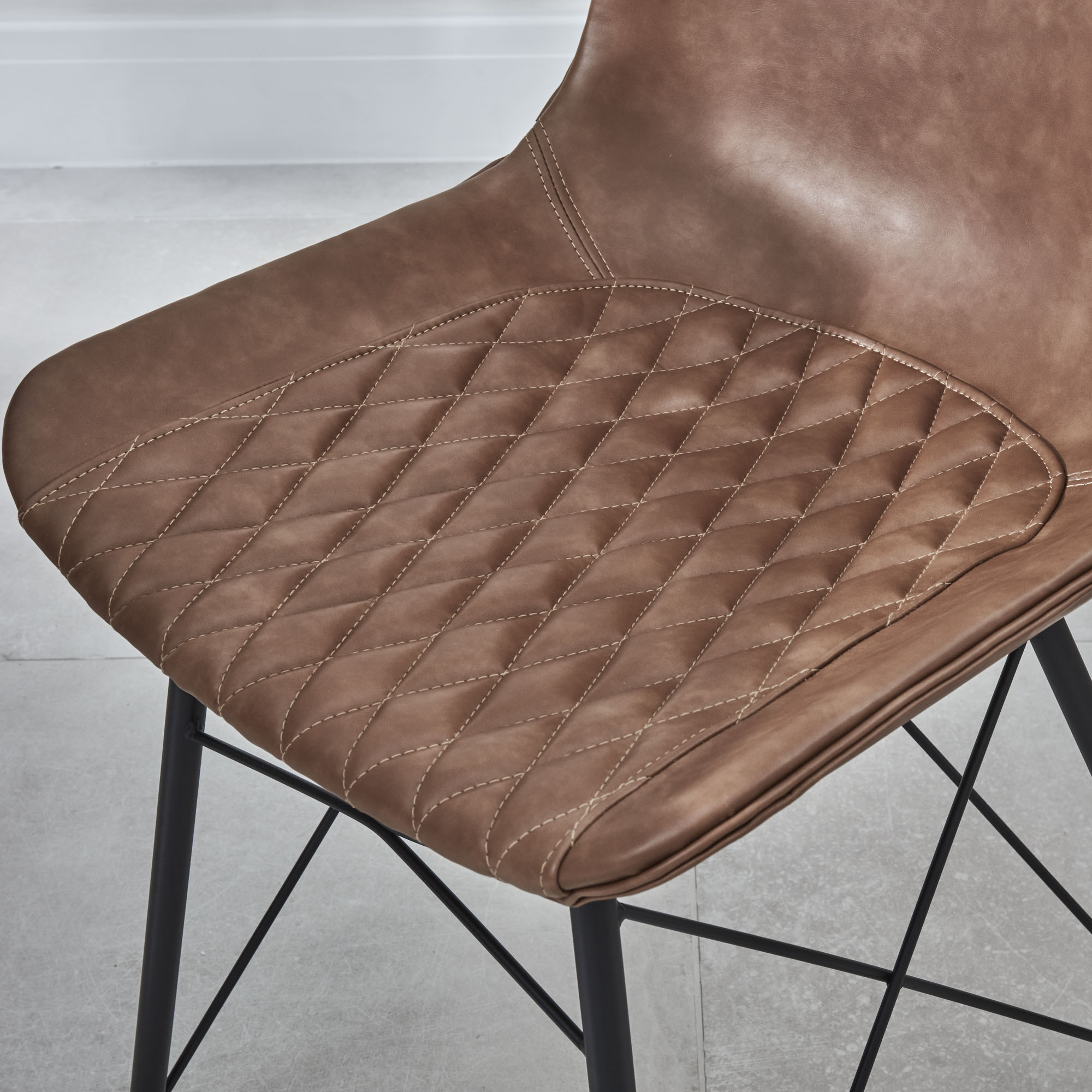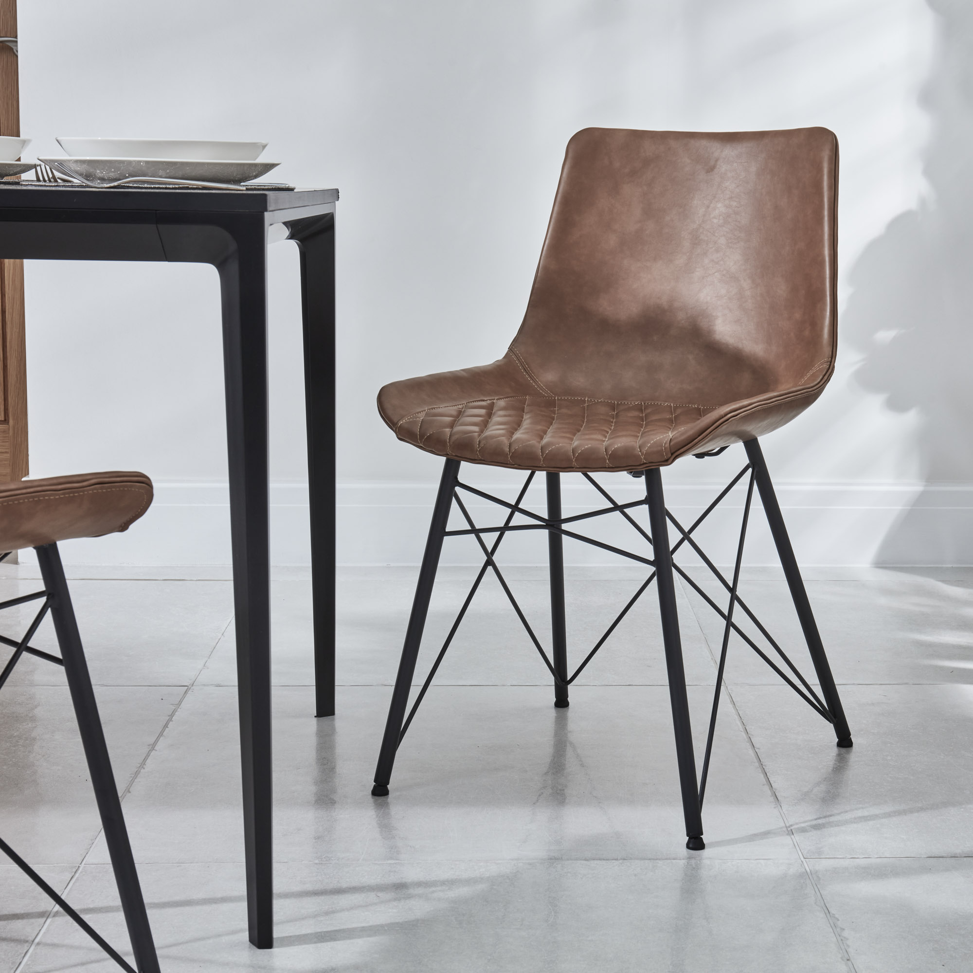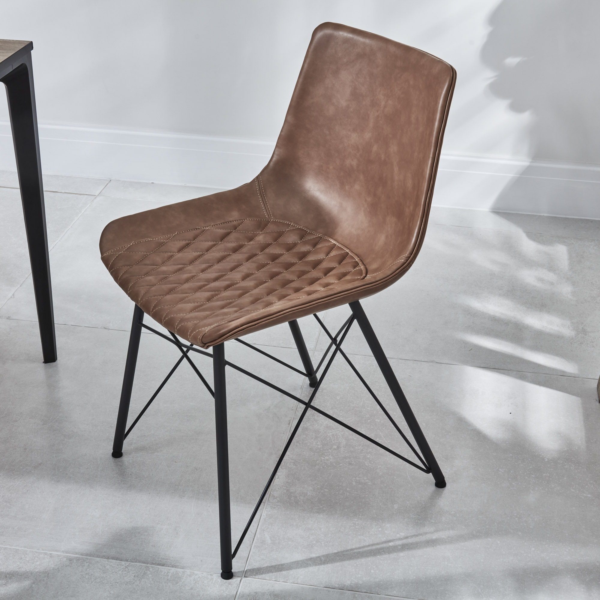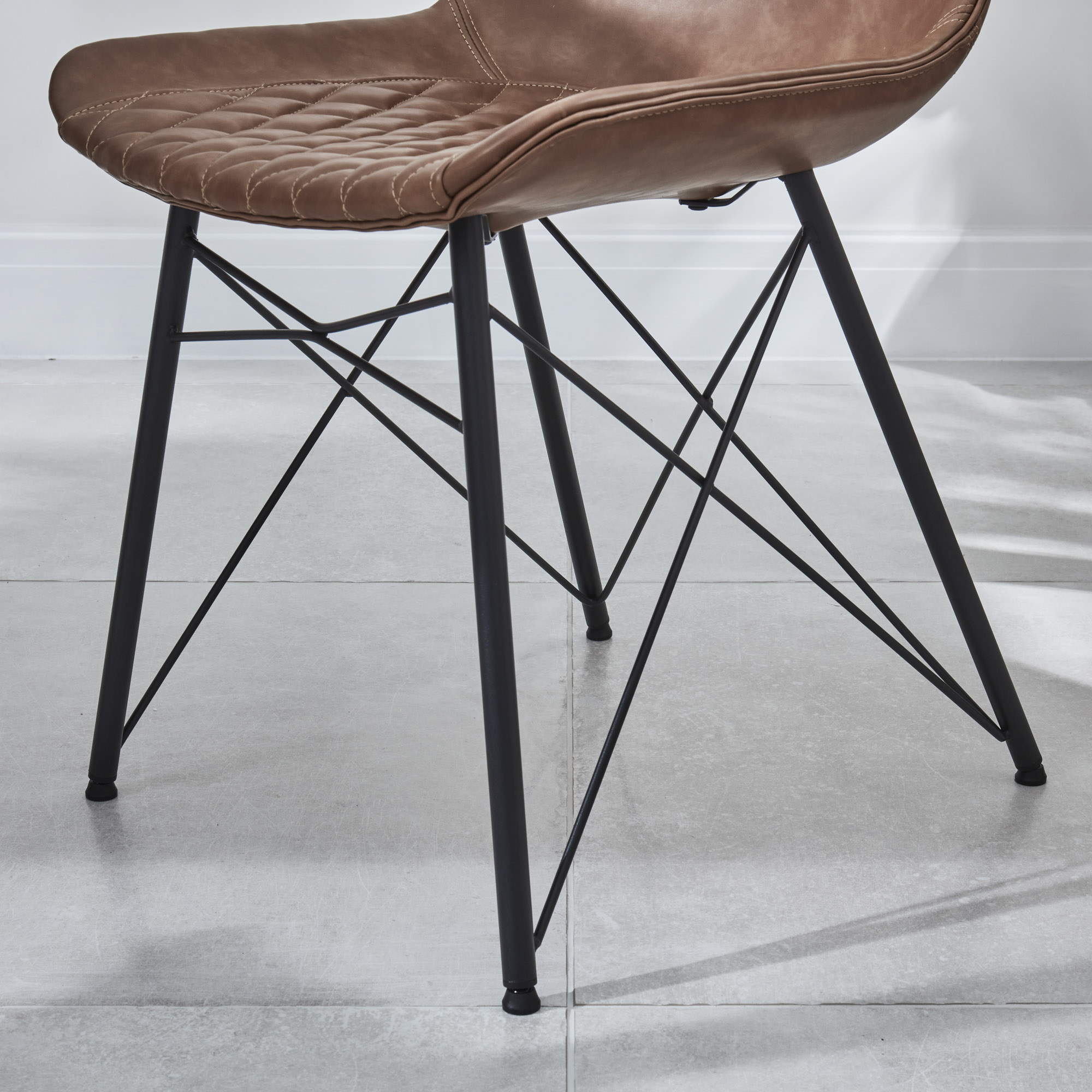 With its luxurious quilted faux tan leather padded seat, and neat stitching detail, the Leo dining chair is so much more than just somewhere to sit. This modern chair will make your space look great and you feel the comfort when sat in. The four powder coated legs have a stylish look to the base structure.